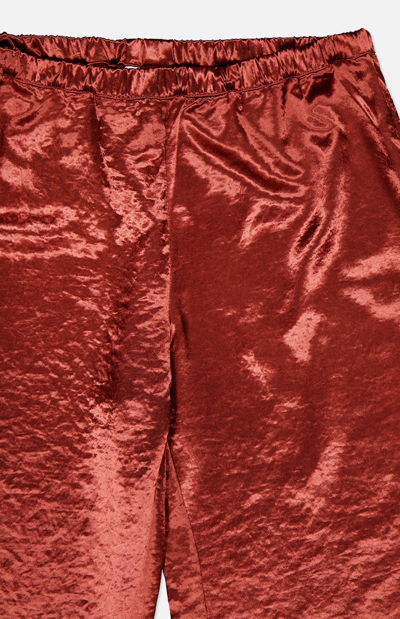 Walk through life with sensuality and strength. Crafted from a hammered, silk-like material, these wide-leg pants are luxe but easy. You get sophistication and high shine from the copper hue that’s great for autumnal styling. Finish the look with blouses at the office or a black bodysuit on the weekends. Enjoy this style during city outings, dinner parties and first dates at the local rooftop bar.