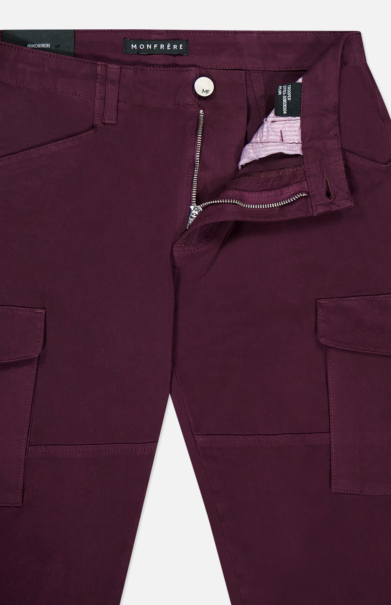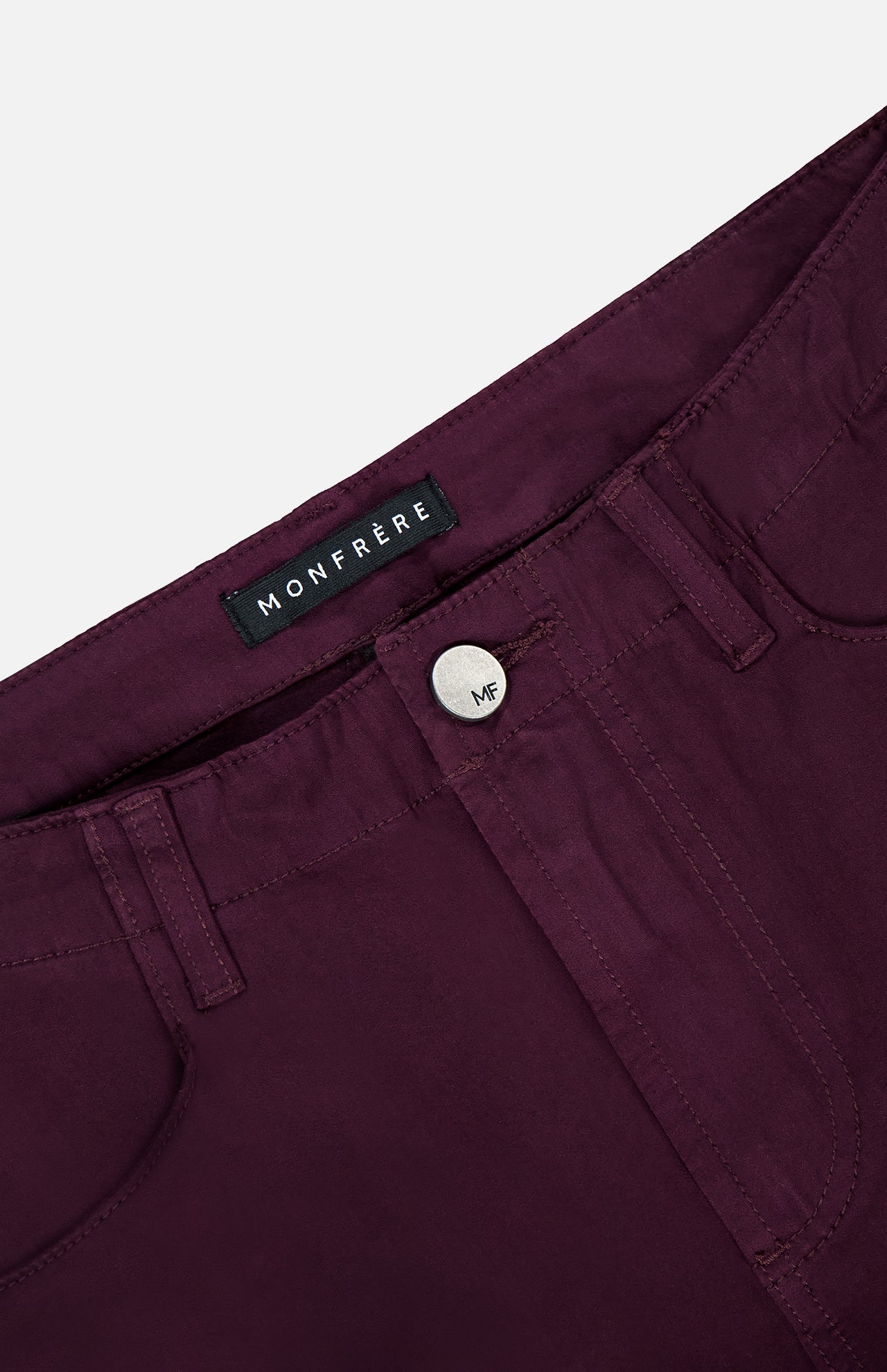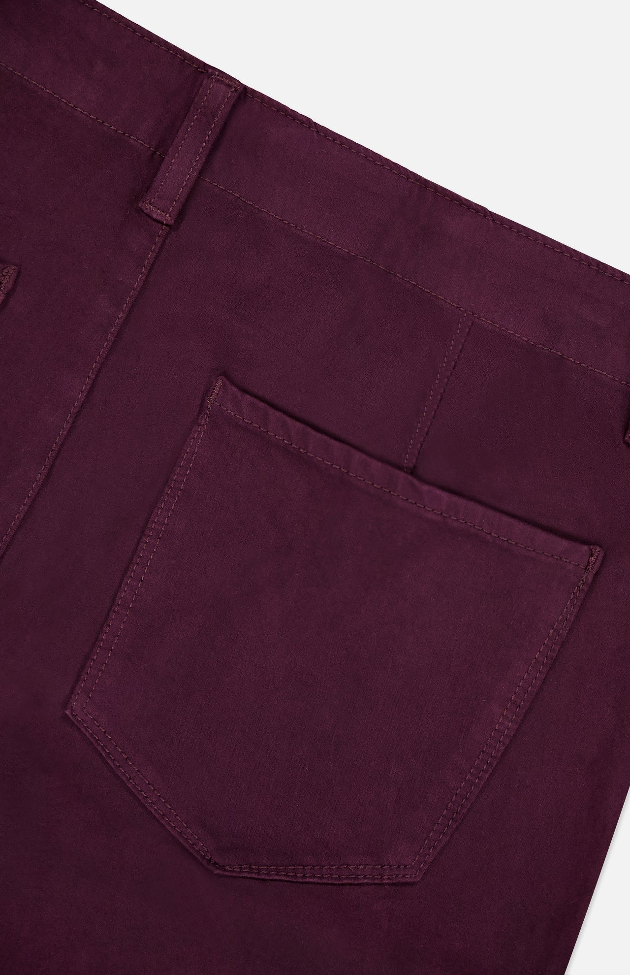 Add a beat of color to your wardrobe with these plum pants. Designed as an everyday, cargo trouser, this style features a mid-rise silhouette and is detailed with flap pockets in a stretch fabric. This is an intelligent mix of utilitarian style that’s refined and ready for sweaters, chore jackets and plaid shirts.