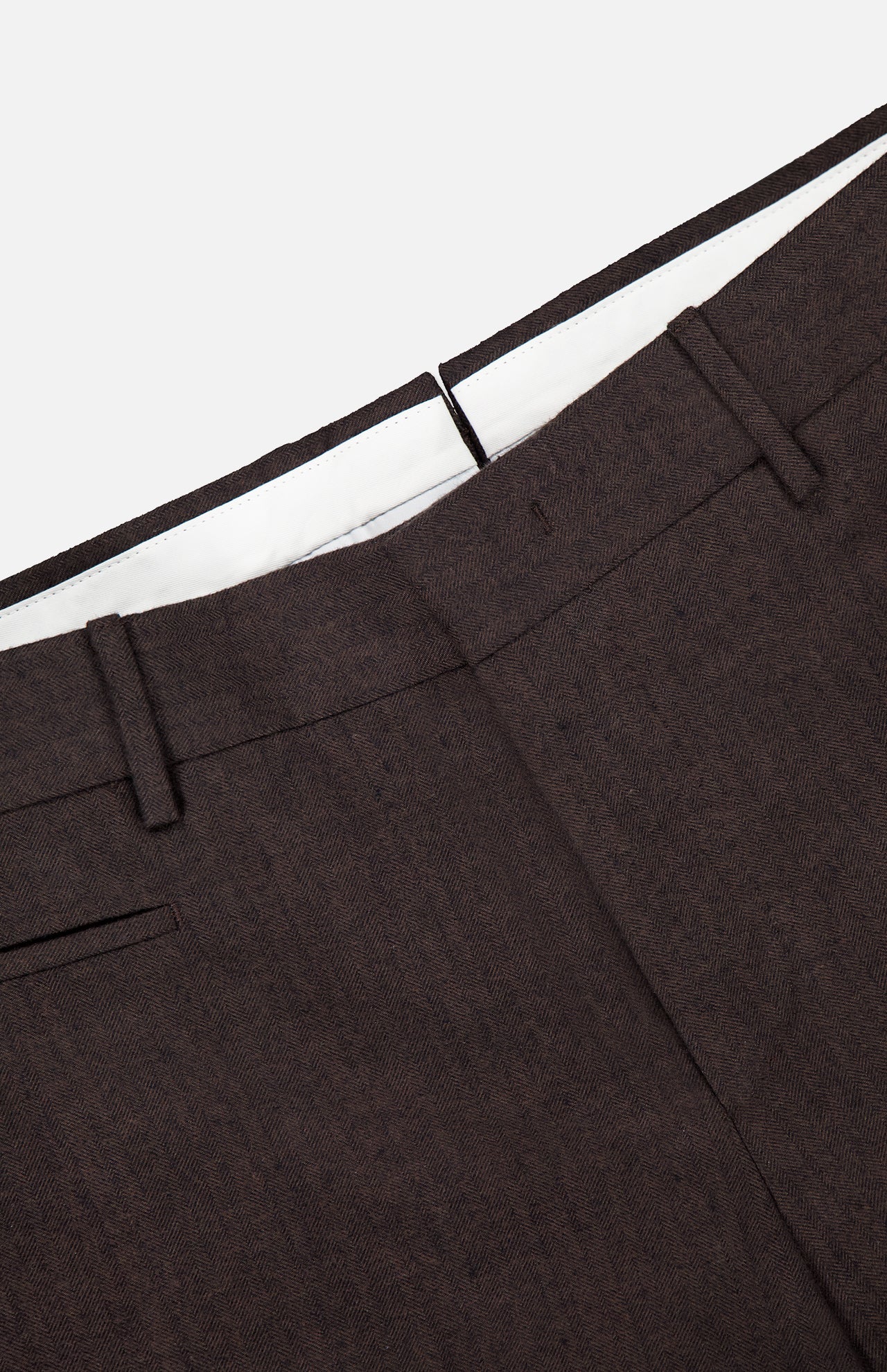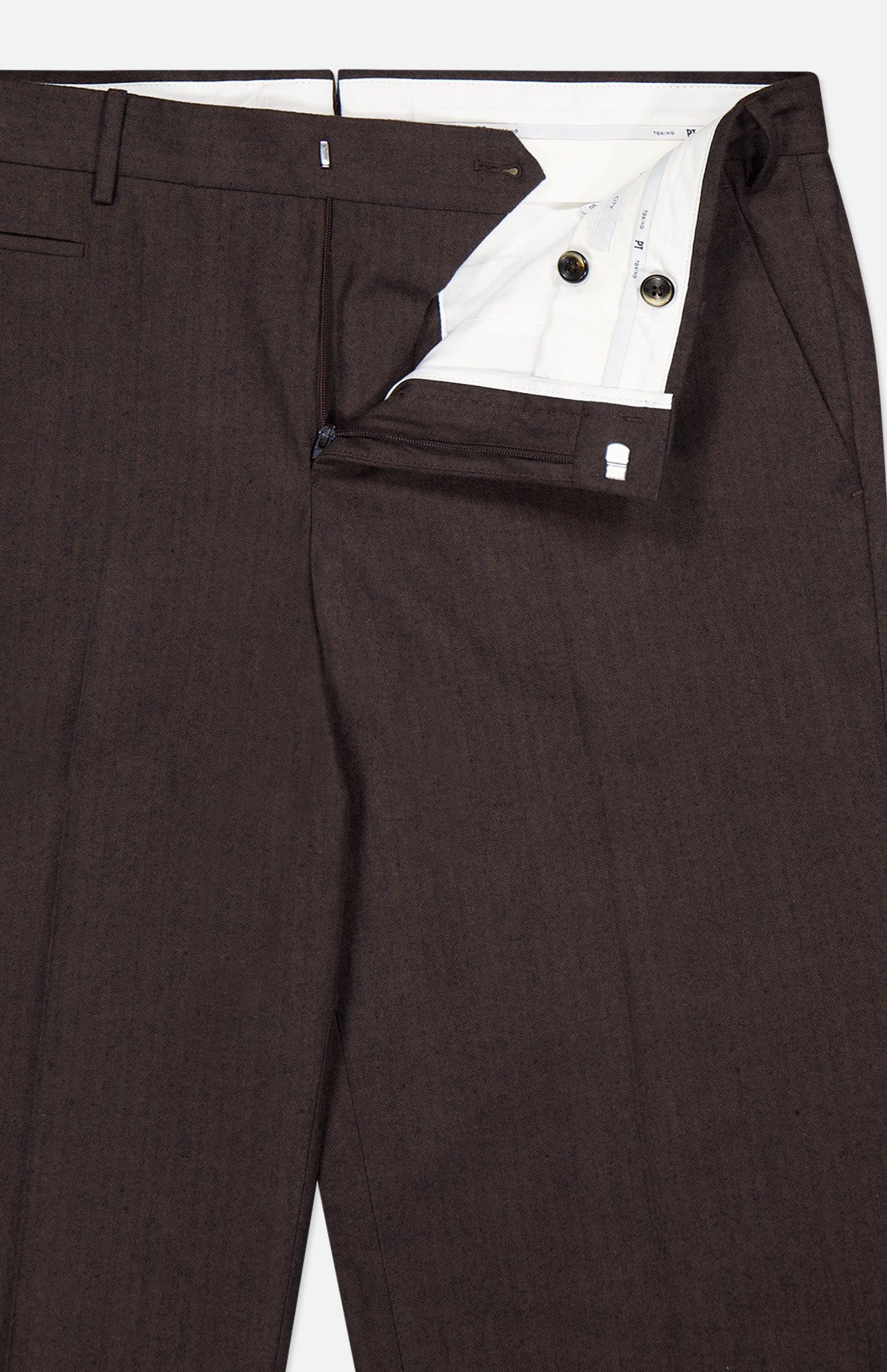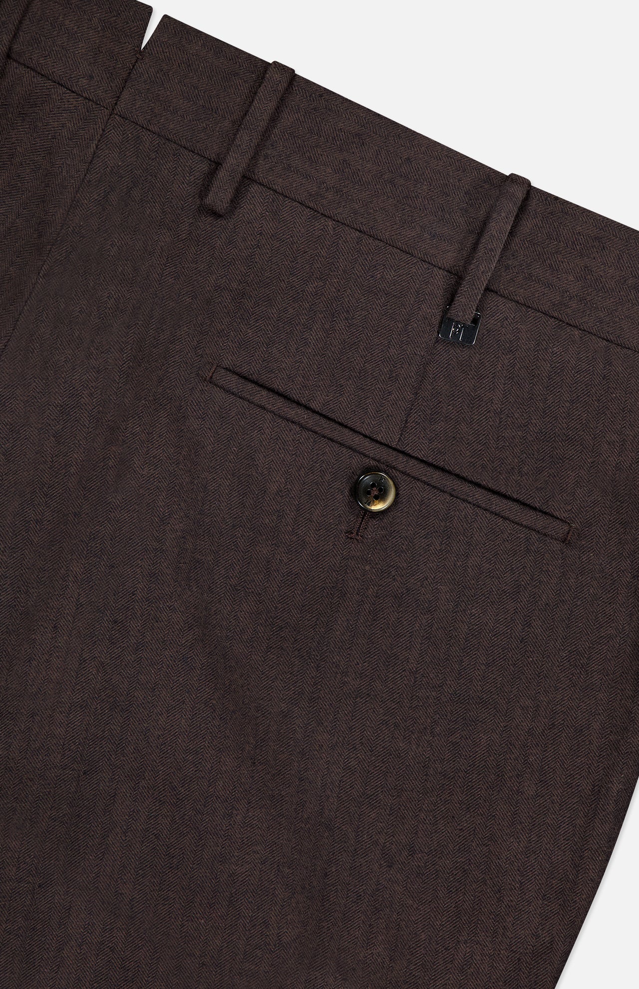 Be ready for every formal occasion with these dark brown dress pants. A closet staple, these flannel trousers stand out with a subtle, tonal herringbone pattern for timeless sophistication. Experience supreme comfort and elegance with this style that’s crafted from a cotton-blend with stretch properties that keep pace with your busy lifestyle.