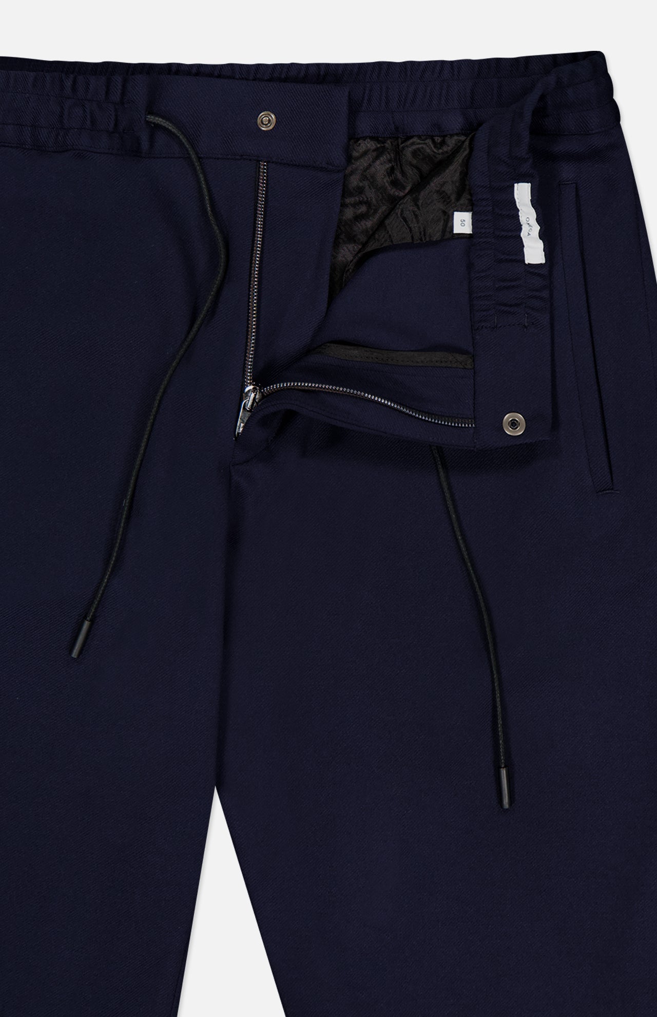 Comfort, no matter the cost. Self-care through the right clothing and materials, these navy trouser pants provide all-day comfort and impeccable style. This closet staple is designed with a drawstring, elasticized waist for a custom fit. Ideal for travel, this option has built-in stretch properties that keep pace with your busy lifestyle.