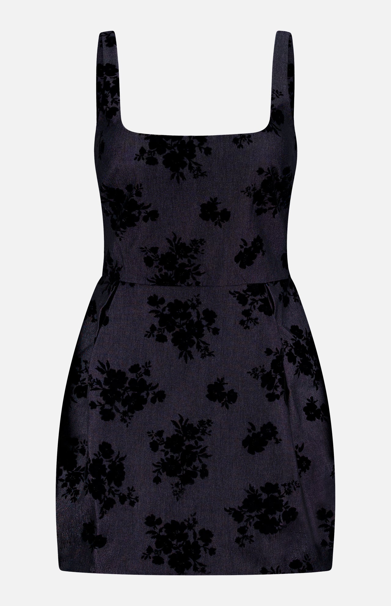 Walk through life with sensuality and strength. This ultra-dark blue denim mini dress features a square neckline, floral details and a bell-shaped skirt. This option strikes the perfect balance between elegance and edge and easily pairs with black heels and modern, cropped blazers. Save this style for first dates, cocktail parties and nights out with friends.