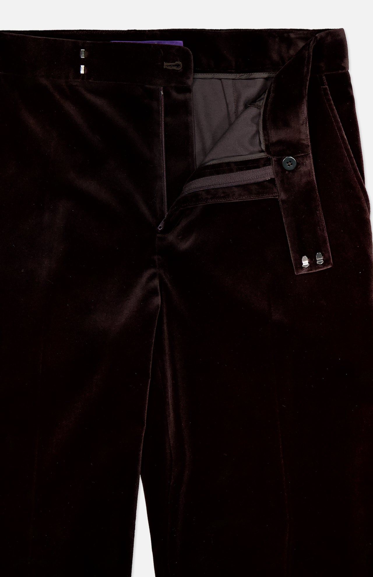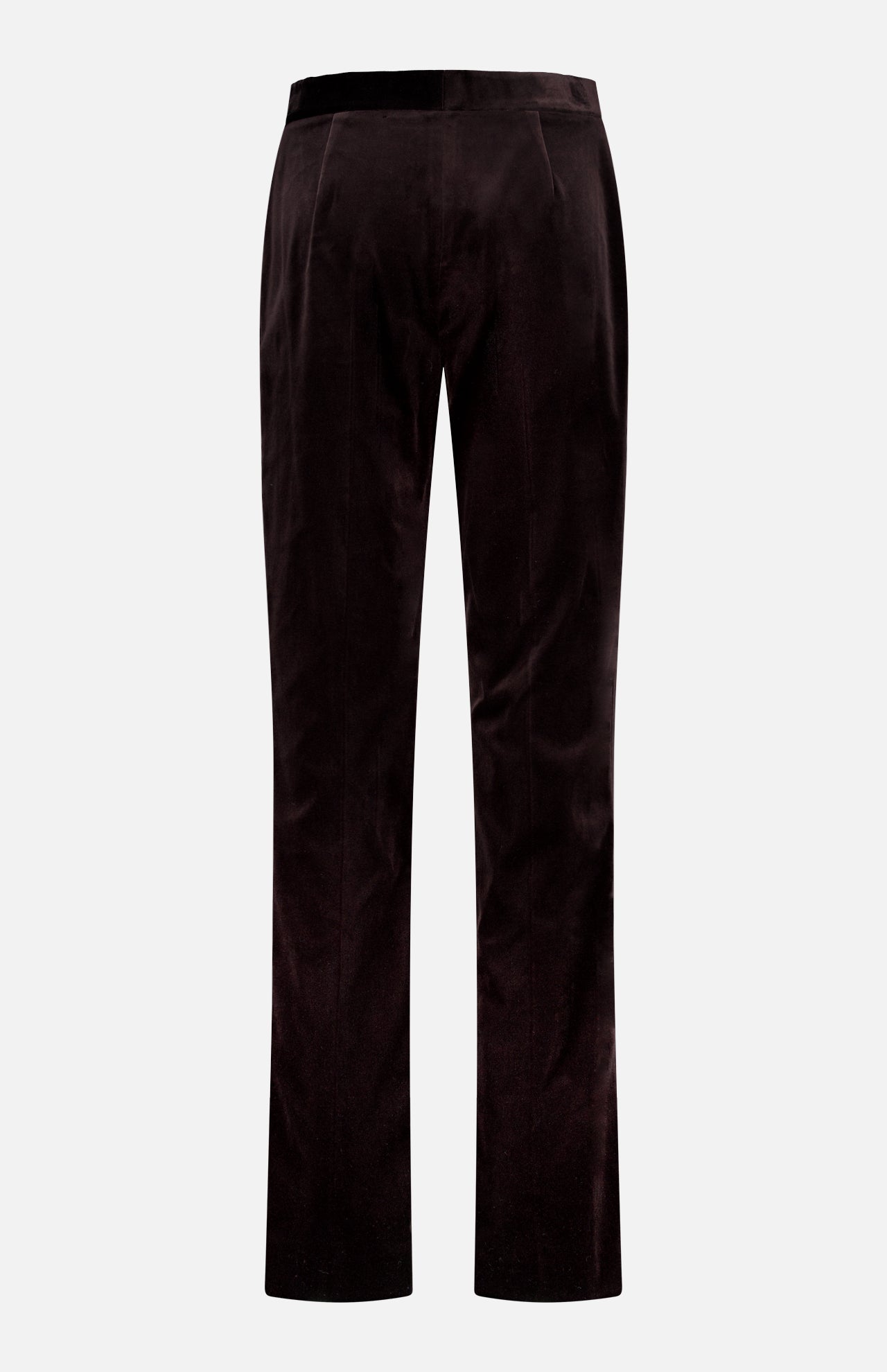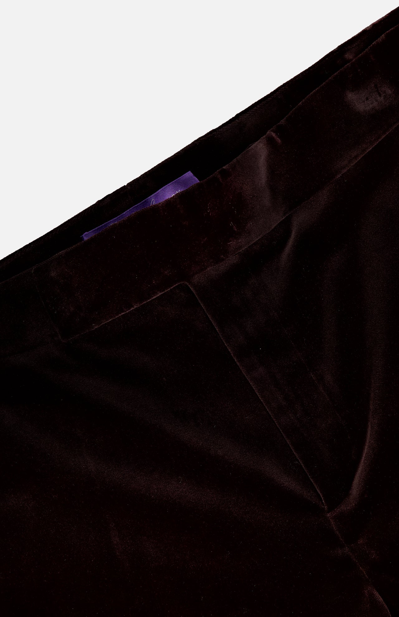 Informed by classic menswear trousers, this Italian-made pant in black combines timeless tailoring elements—including an extended waist tab and back waist darts—with lightweight stretch velvet for a remarkable drape. Highlights include a flat front, mid-rise fit and straight-leg silhouette. This is the perfect style when you need to feel elegant but want to opt out of skirts and dresses.