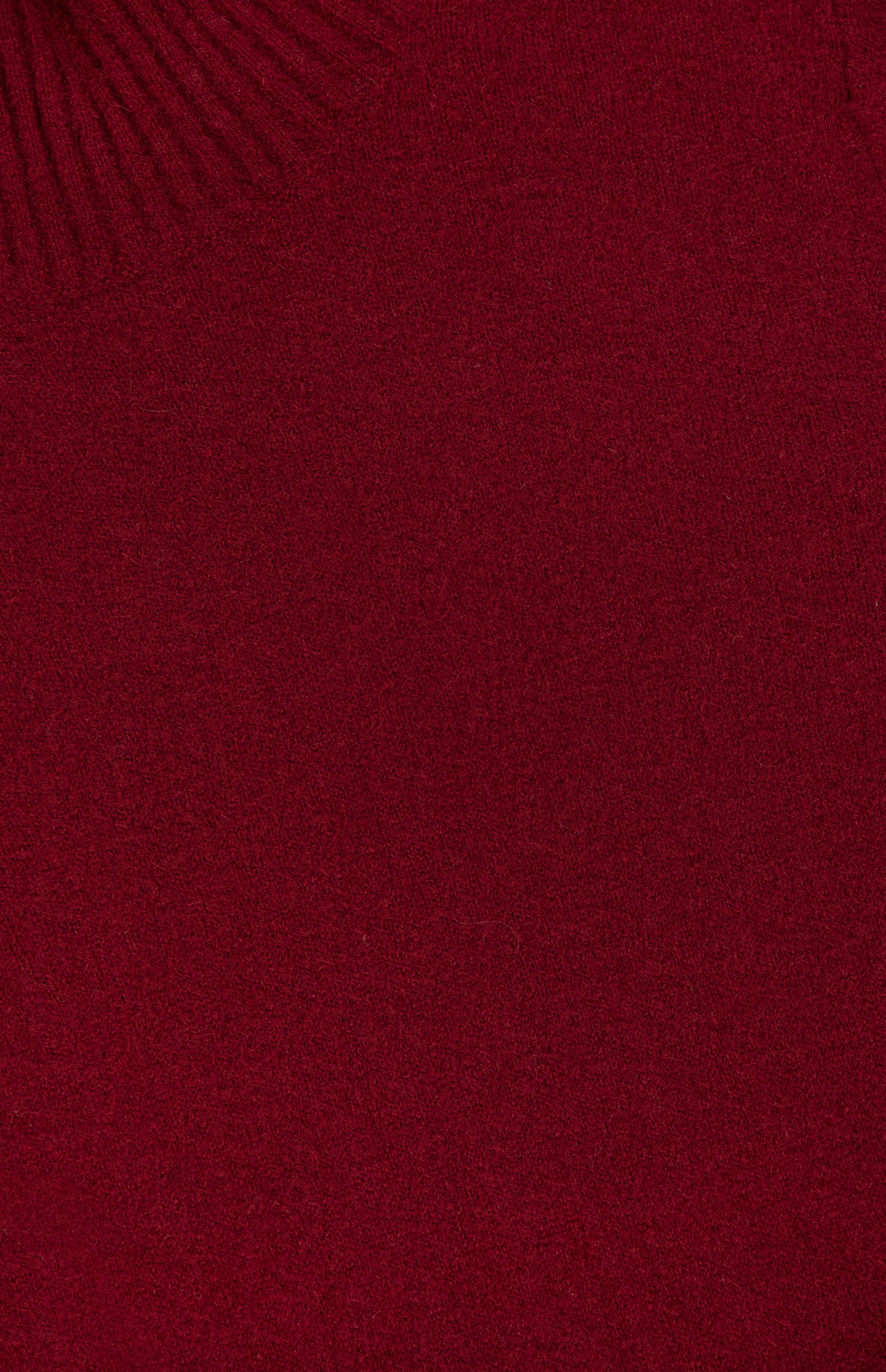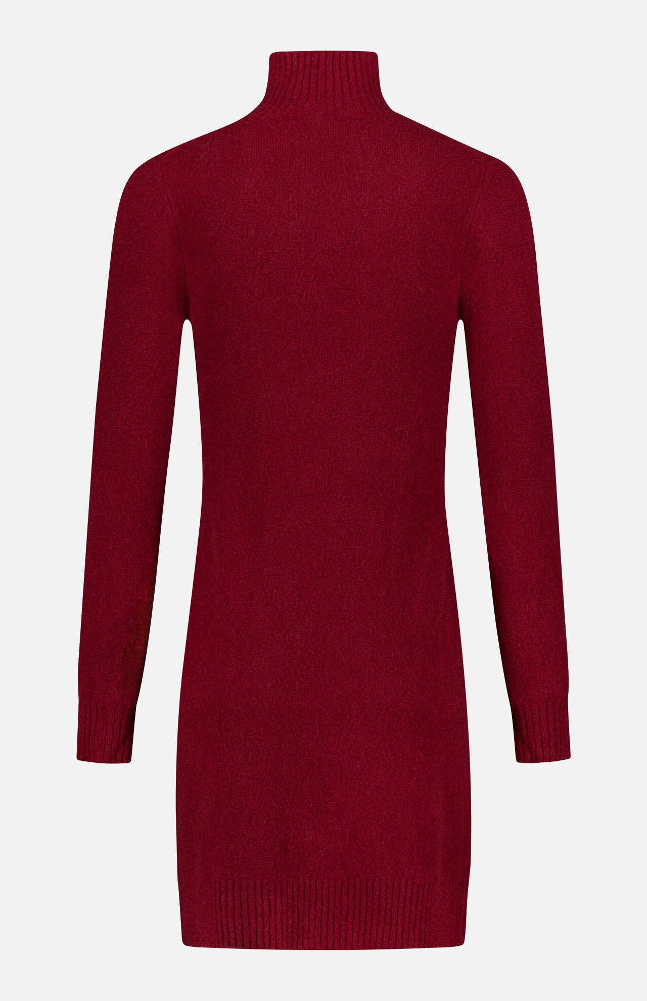 Get a daily dose of elegance and comfort when you wear this raspberry colored sweater dress. This mini dress is knit from a brushed cashmere-blend for added softness in a turtleneck silhouette with long sleeves. Style with tall leather boots and a suede hobo bag for simplistic sophistication.