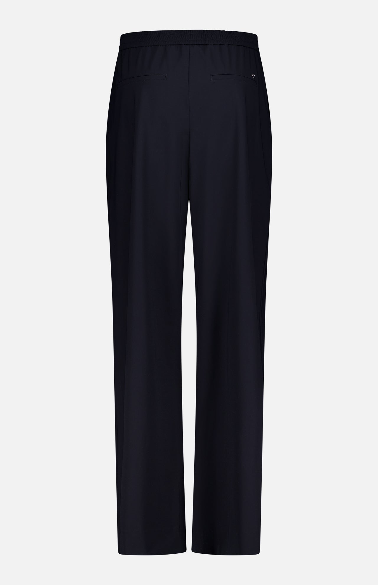 Create a number of athletic-inspired looks with this wide-leg trouser in black. Designed with a high-rise cut, 30" inseam and full-length fit, these trousers deliver a flattering silhouette that effortlessly transitions from day to night. The lightweight fabric and hybrid, dress-sport feel adds a touch of sophistication.