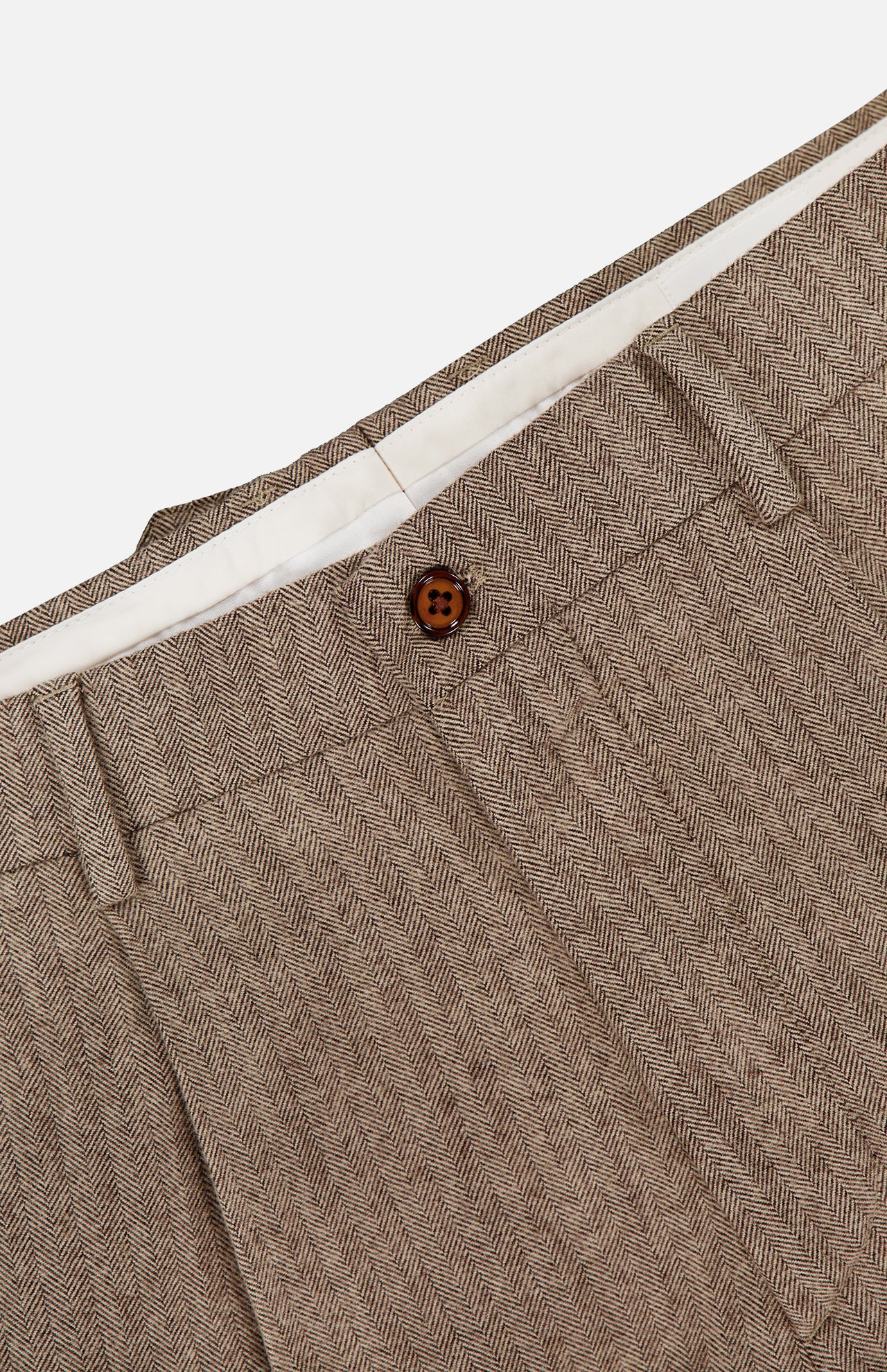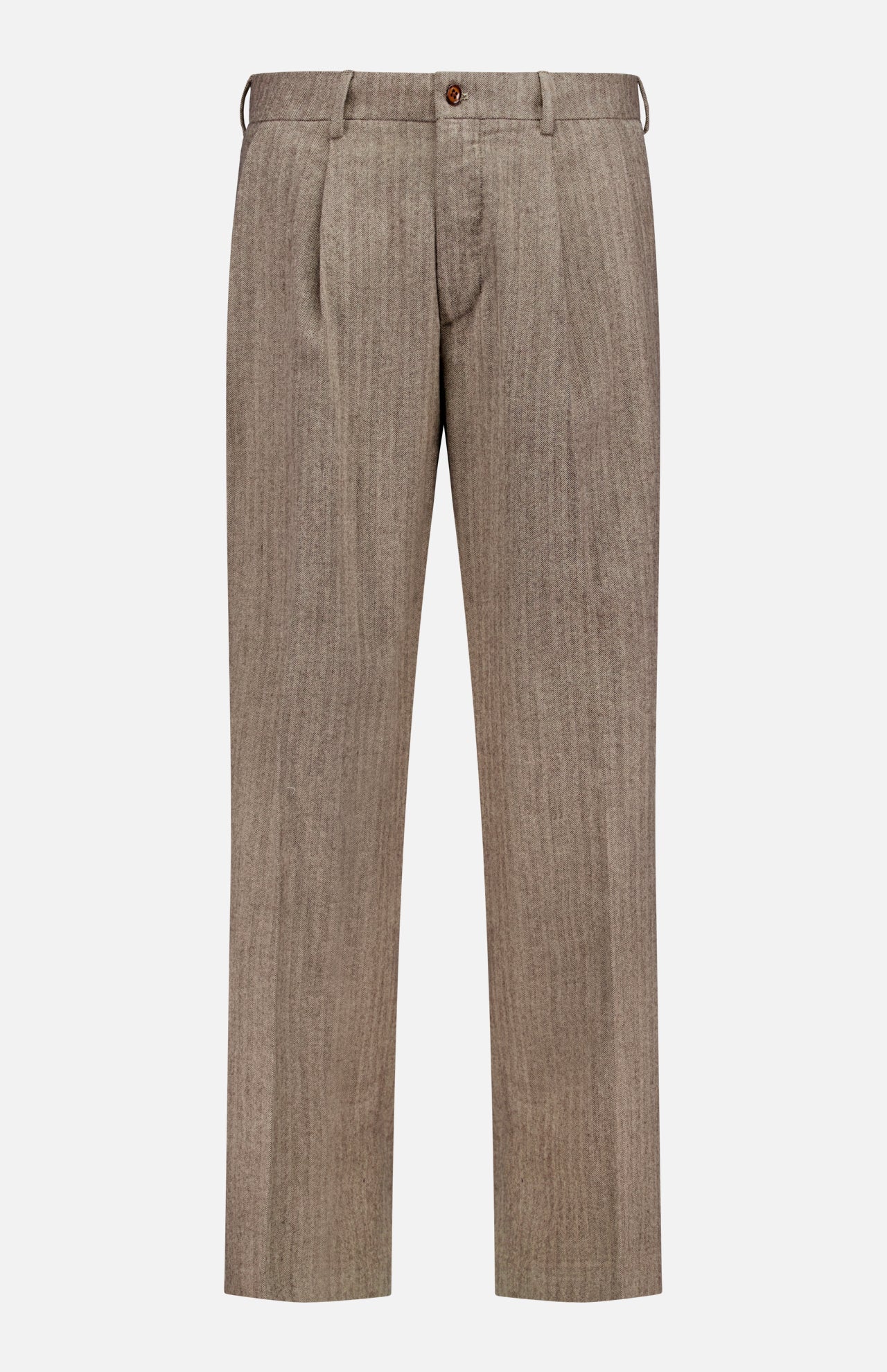 Redefining the modern-casual wardrobe, this brand believes in personalities, not nationalities and creates clothing that celebrates diversity, dedication and community. These light brown trouser pants are designed with a relaxed fit and a wide leg. You’ll love the warm and comfortable material in a stylish and timeless herringbone weave with a brushed finish.
