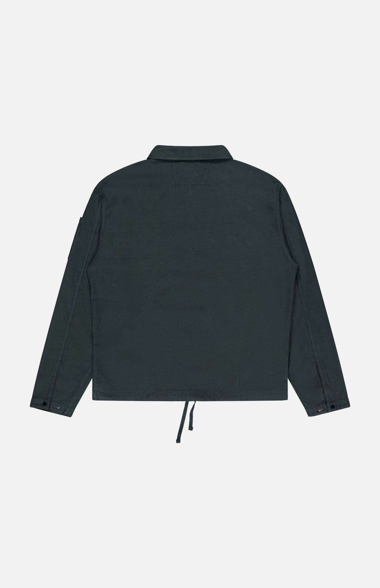 From the company founded by “the godfather of sportswear” comes this everyday overshirt. A casual option, this utilitarian design comes in an ultra-dark teal hue that’s crafted in a micro corduroy fabric. Highlights include a full snap-front fastening, chest flap pockets and a drawstring at the hem to cinch and add structure to the look. This piece is dyed for a vintage appearance.