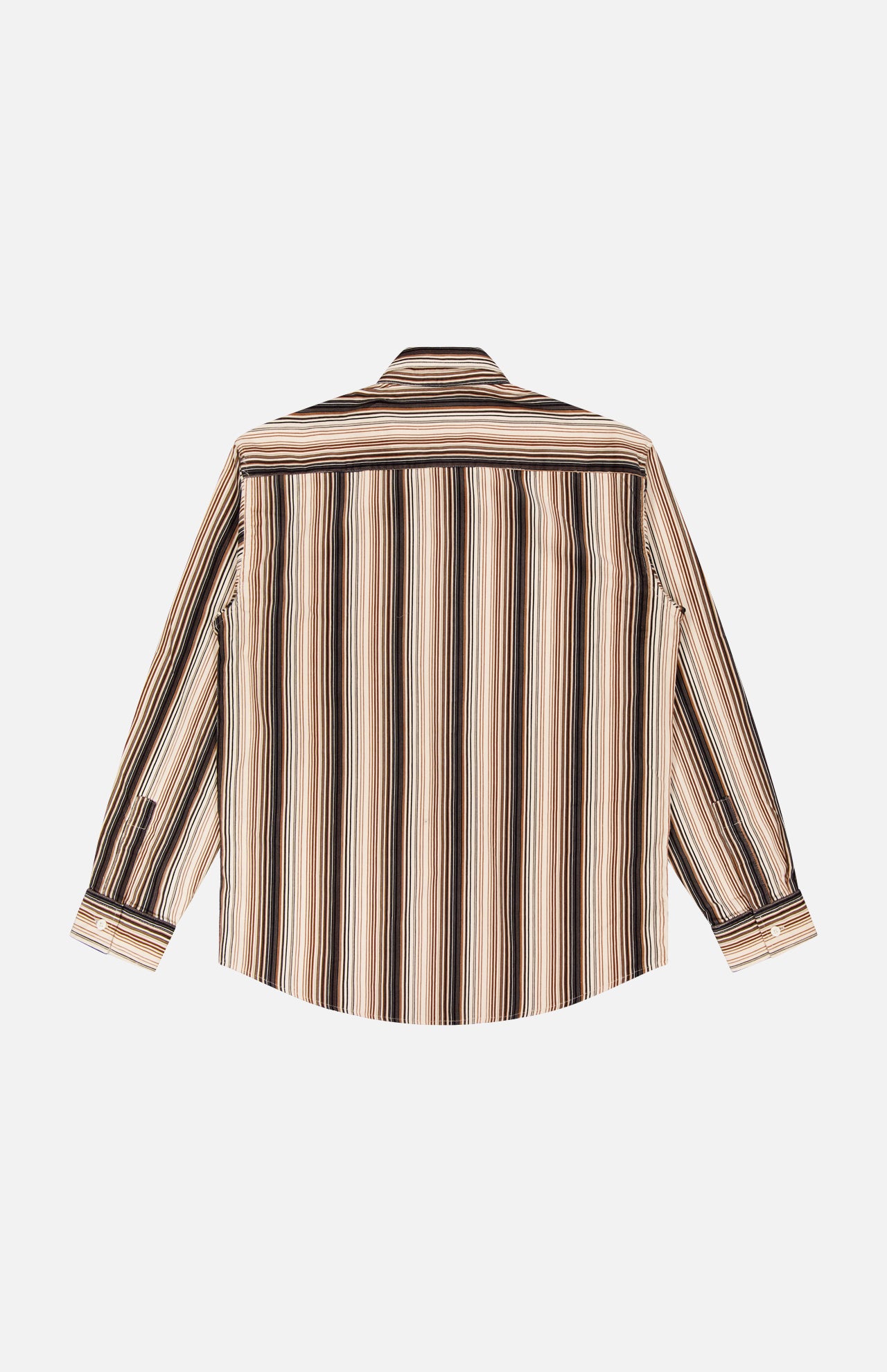 Redefining the modern-casual wardrobe, this brand believes in personalities, not nationalities and creates clothing that celebrates diversity, dedication and community. Hop on the stripes train when you wear this brown shirt crafted from soft, yarn-dyed organic cotton in a corduroy weave. This design features a single patch pocket, curved hemline and slightly dropped shoulders for a relaxed feel.