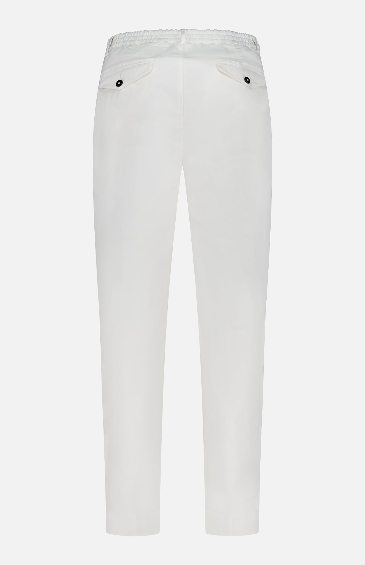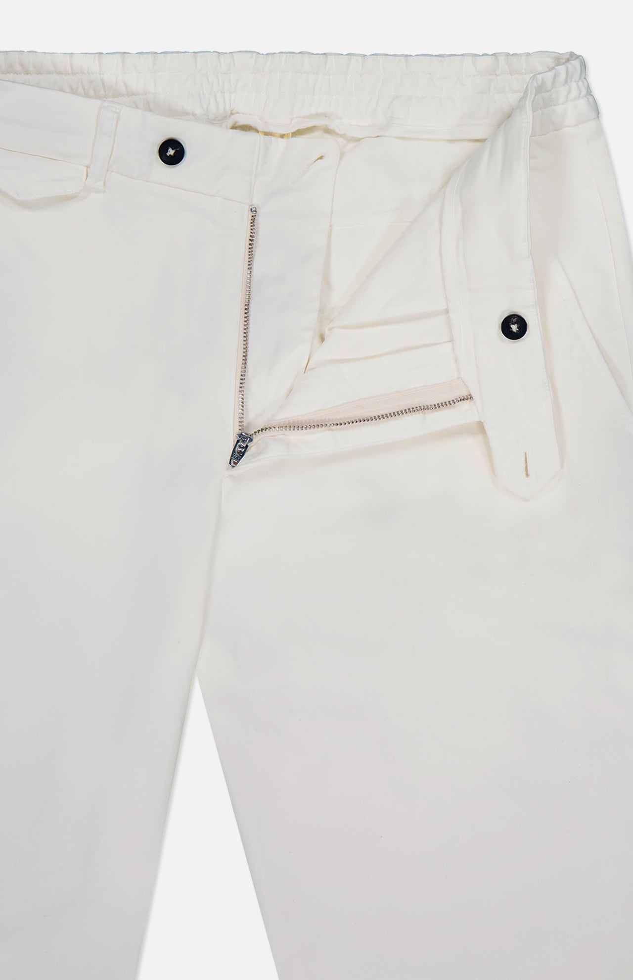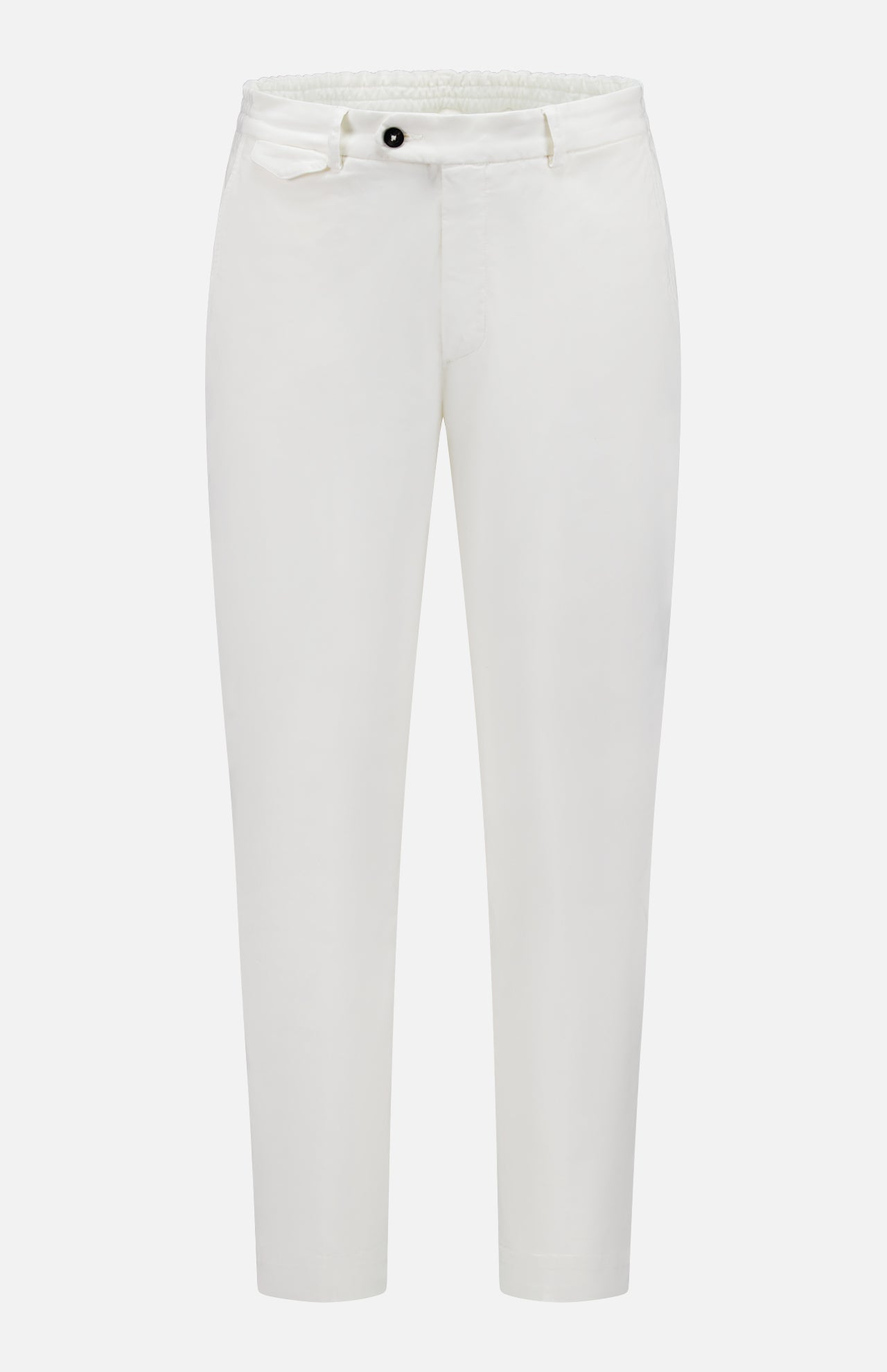 The idea behind these off-white pants is that they can be brought along on your travels without too much thinking (and stressing). These flex trousers are constructed with a handsome flat front while the back features an elasticized waistband for a comfortable fit. Easy to style, these pants are sure to help build a number of elegant-casual outfits.