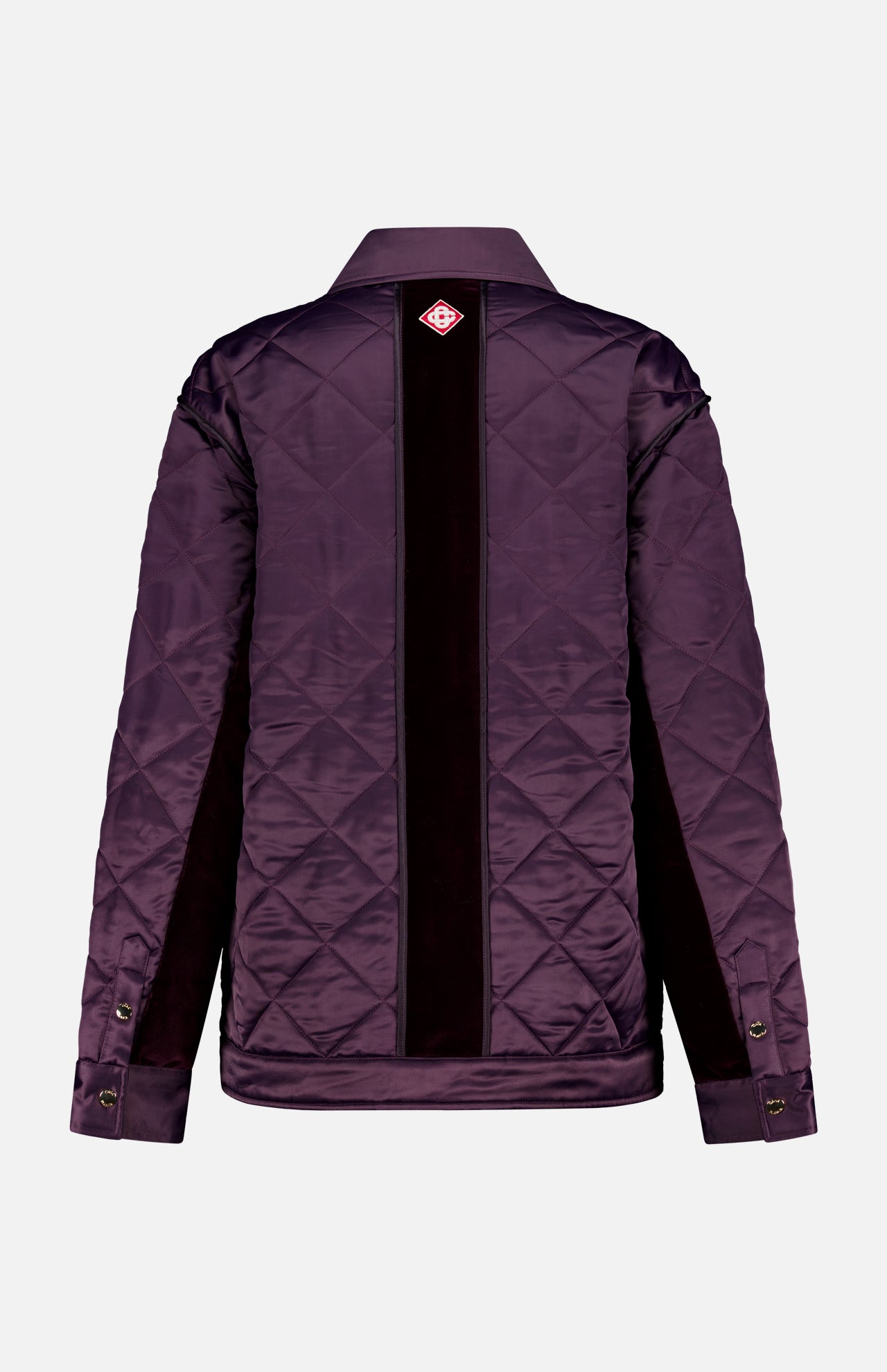 An exotic and cosmopolitan charm is built into the Casablanca brand. The founder’s French and Moroccan roots weave a worldly wonder throughout every piece including this dark aubergine jacket. This quilted jacket has a relaxed fit and is crafted from satin fabric with a cotton velvet contrast. It’s completed with snap buttons, patch pockets and a back panel featuring the house's signature diamond logo.