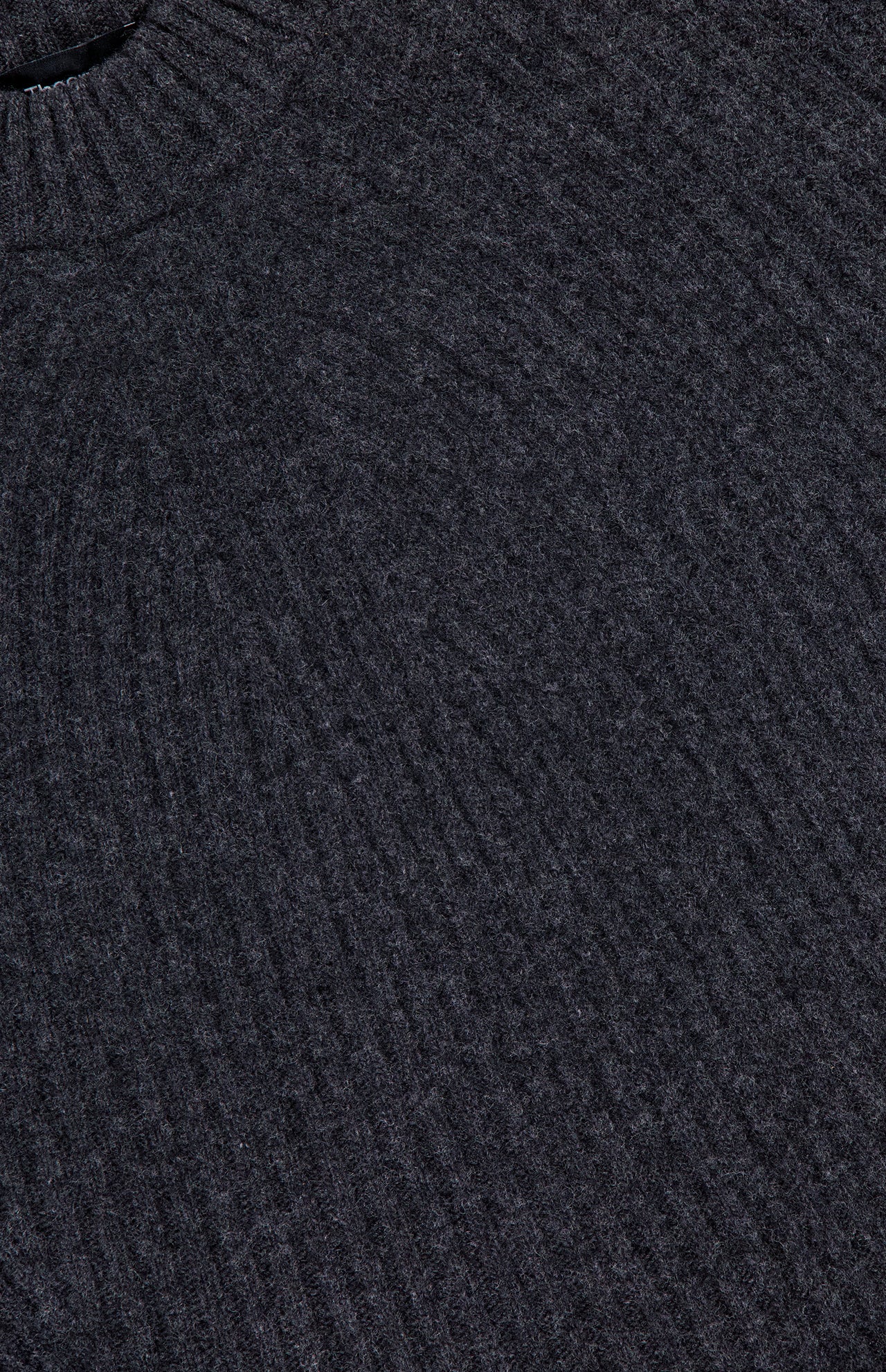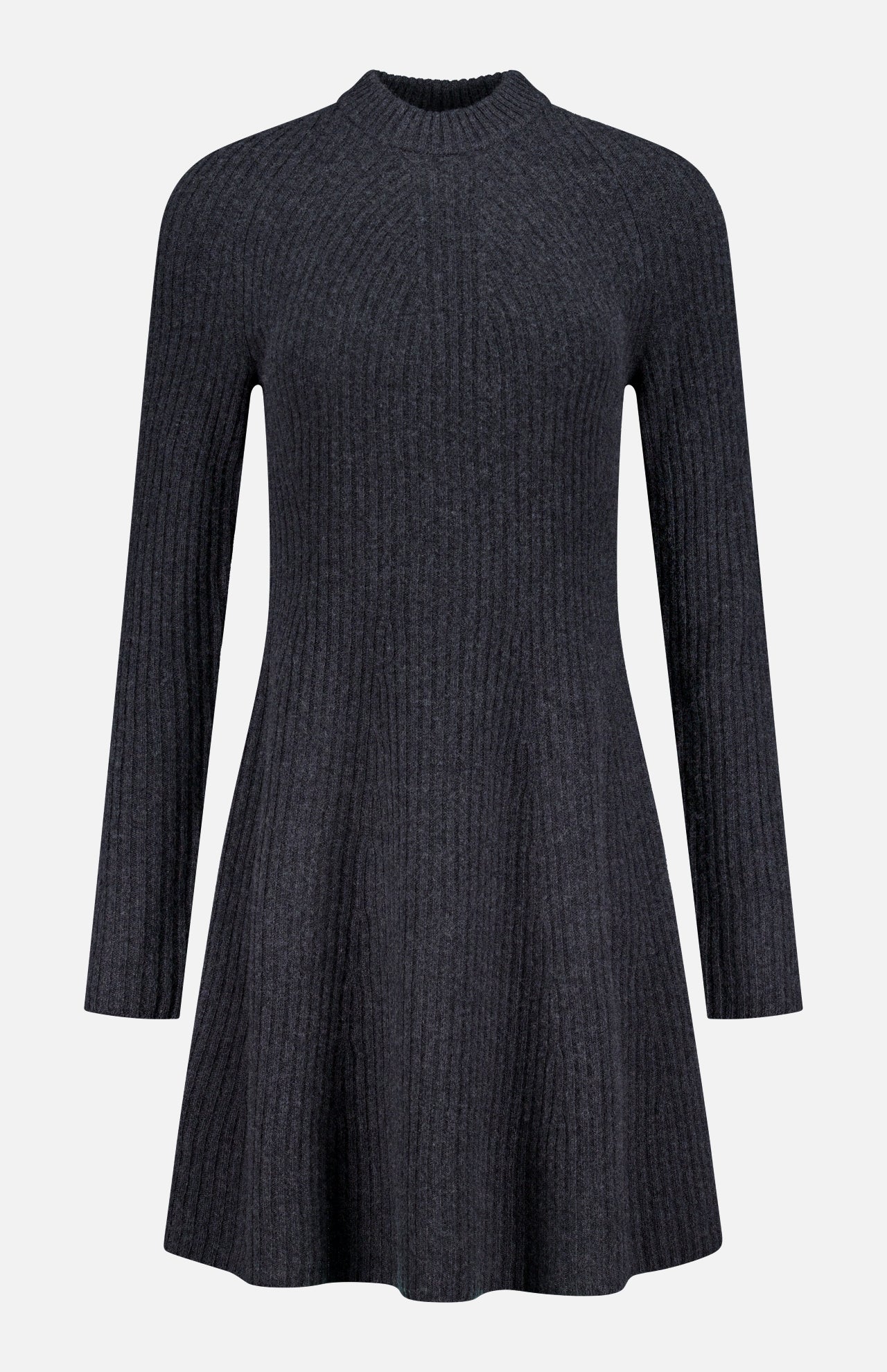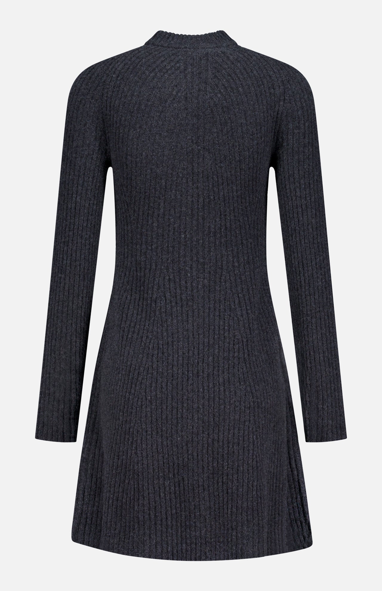 Instant comfort and a relaxed attitude come standard with this charcoal sweater dress. Crafted to hug the body, this slim-fitting style is detailed with a mock neckline and slim, long sleeves. It’s knit in a wool and cashmere-blend from a leading Italian mill with a felted rib texture that has a luxurious look and an incredibly soft feel. It’s extremely versatile to wear and easy to love.