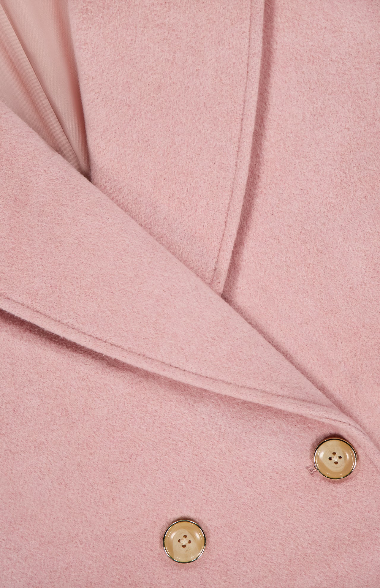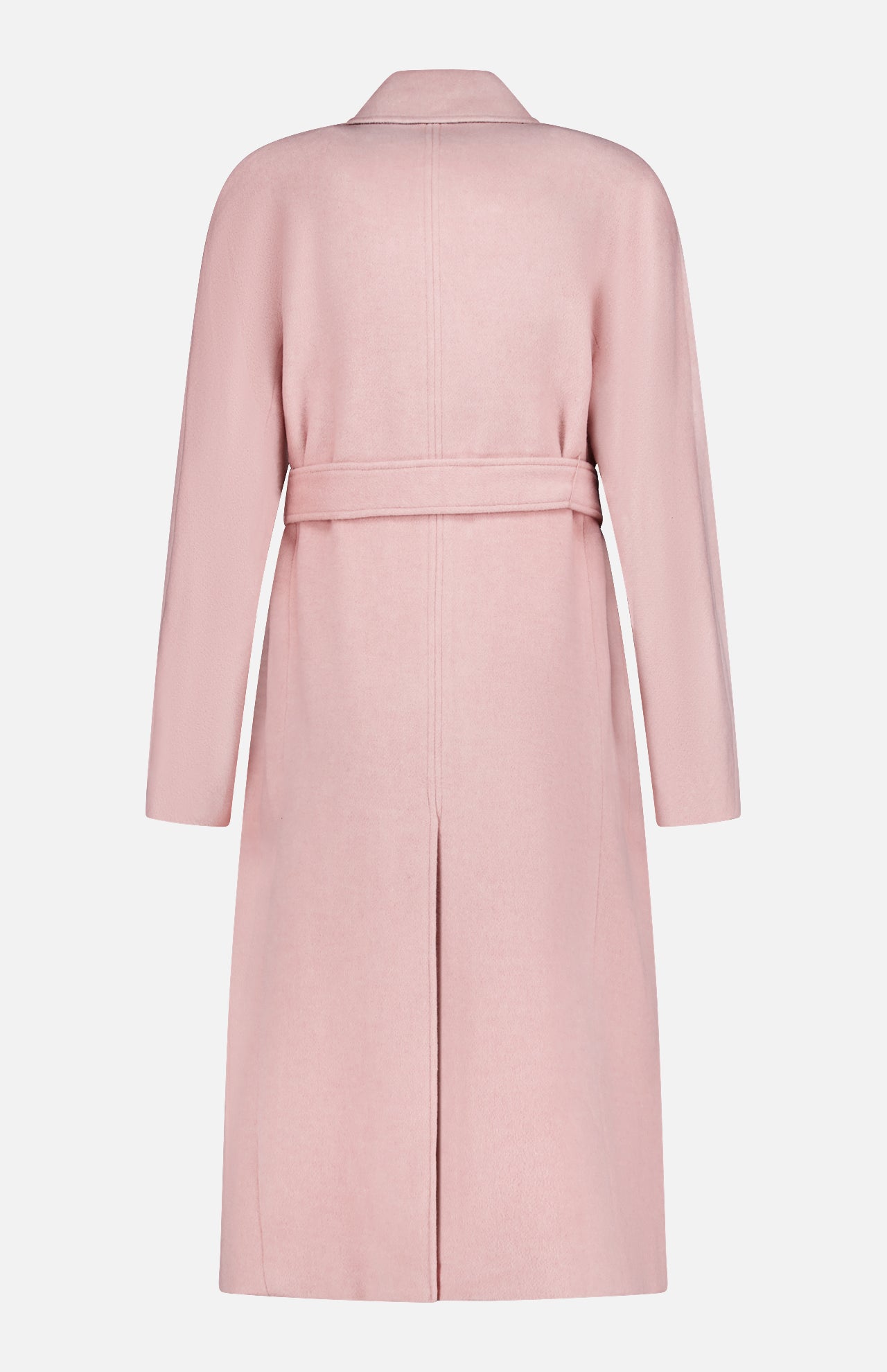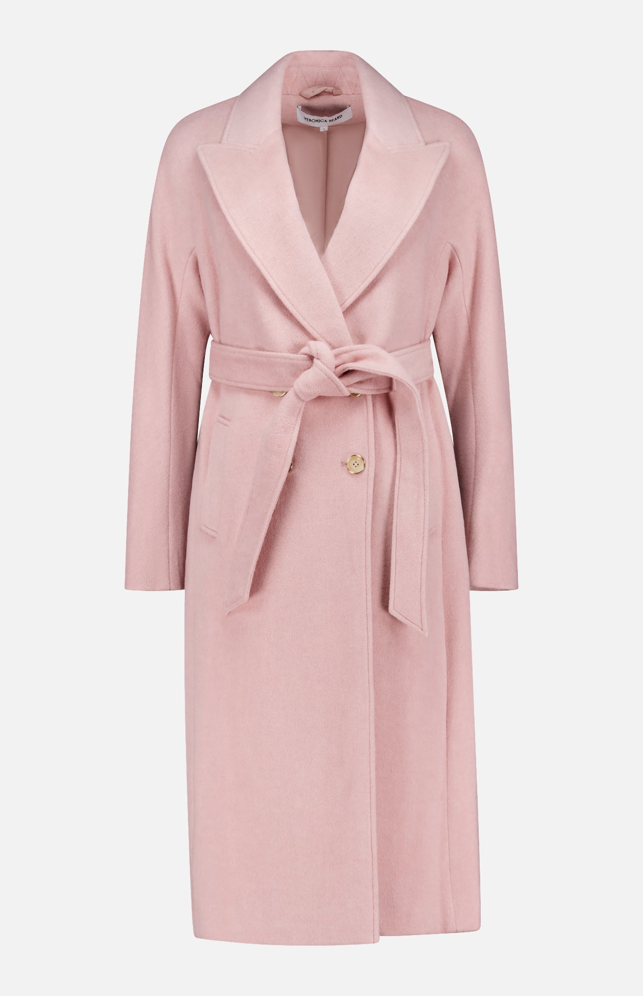 Ditch your usual coat for something colorful. Designed with a subtle color pop, this double-breasted coat in pale pink is tailored to perfection with peaked lapels, a self-tie belt, side pockets and a back vent. This particular option keeps the chill away and is an expert at layering thanks to dickey compatibility.