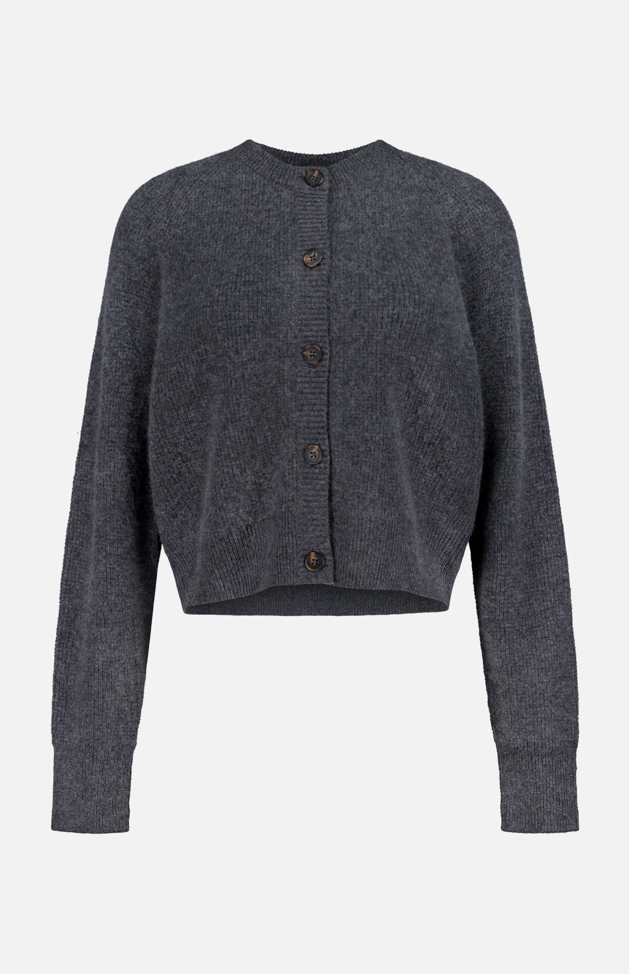 Whatever your stage of life, this cardigan is a classic look that does desk to dinner dates with ease. This grey sweater is knit from 100% cashmere in a waffle stitch for subtle dimension and softness. It’s designed with raglan sleeves and a shorter silhouette. Trust us when we say it’s a layer you'll reach for again and again.