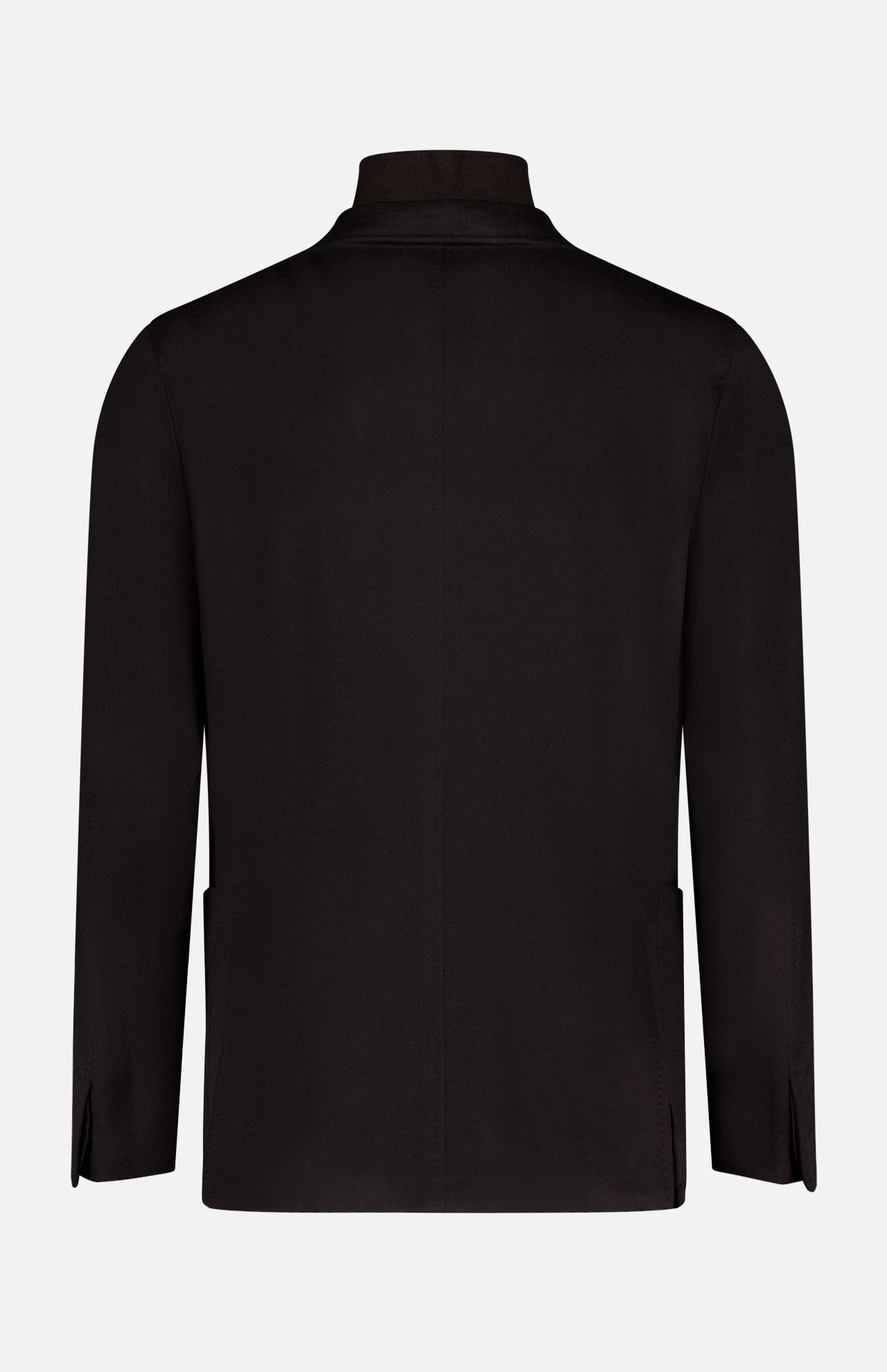 Luxury fuels your day. This dark brown blazer jacket is the definition of quiet luxury and refined elegance. Both effortless and functional, this garment is made from the brand's exclusive Oasi cashmere. It’s styled with classic notch lapels, roomy patch pockets and a detachable knit bib for a layered look. Show up to every meeting, coffee date and networking event with this piece and make the best first impression.