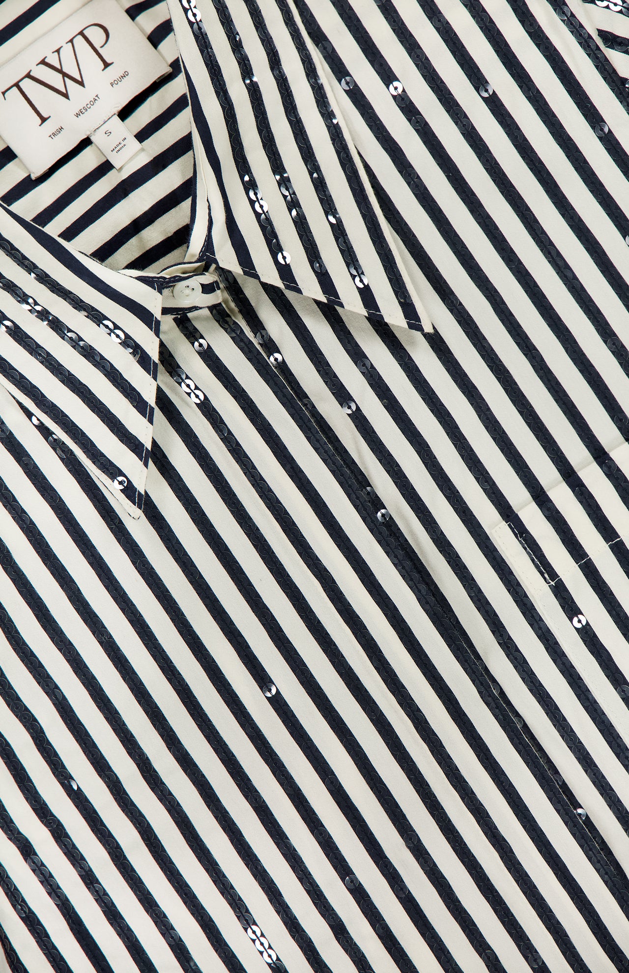 Made for the woman who’s always catching flights to tropical locales, this black clutch has an origami construction that results in a scalloped shell design. It’s topped with two crushed shell spheres that hide a magnetic closure for easy access. There’s an optional chain strap so you can be hands-free. The backstory is that this piece is handwoven by female artisans around the world using natural materials and sustainable processes.
