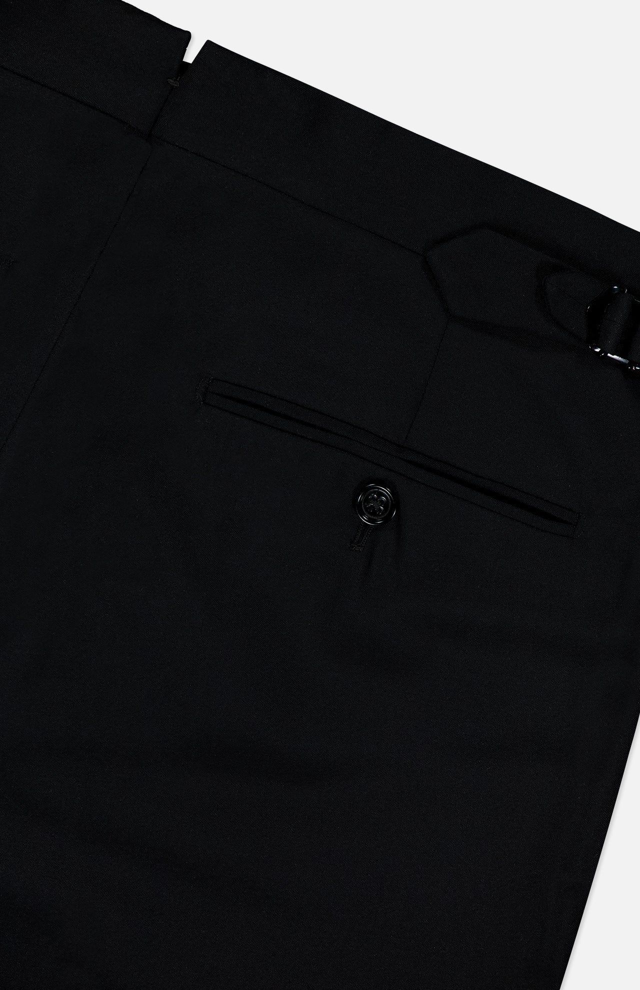 Masterfully hand-tailored in Italy, these black tuxedo trousers exemplify Purple Label's commitment to sartorial excellence through their use of bespoke wool barathea, custom-developed to meet exacting standards. The refined fabric and impeccable craftsmanship represent the pinnacle of formal elegance. When it’s time to dress up and feel special, these are the pieces that bring the look home.