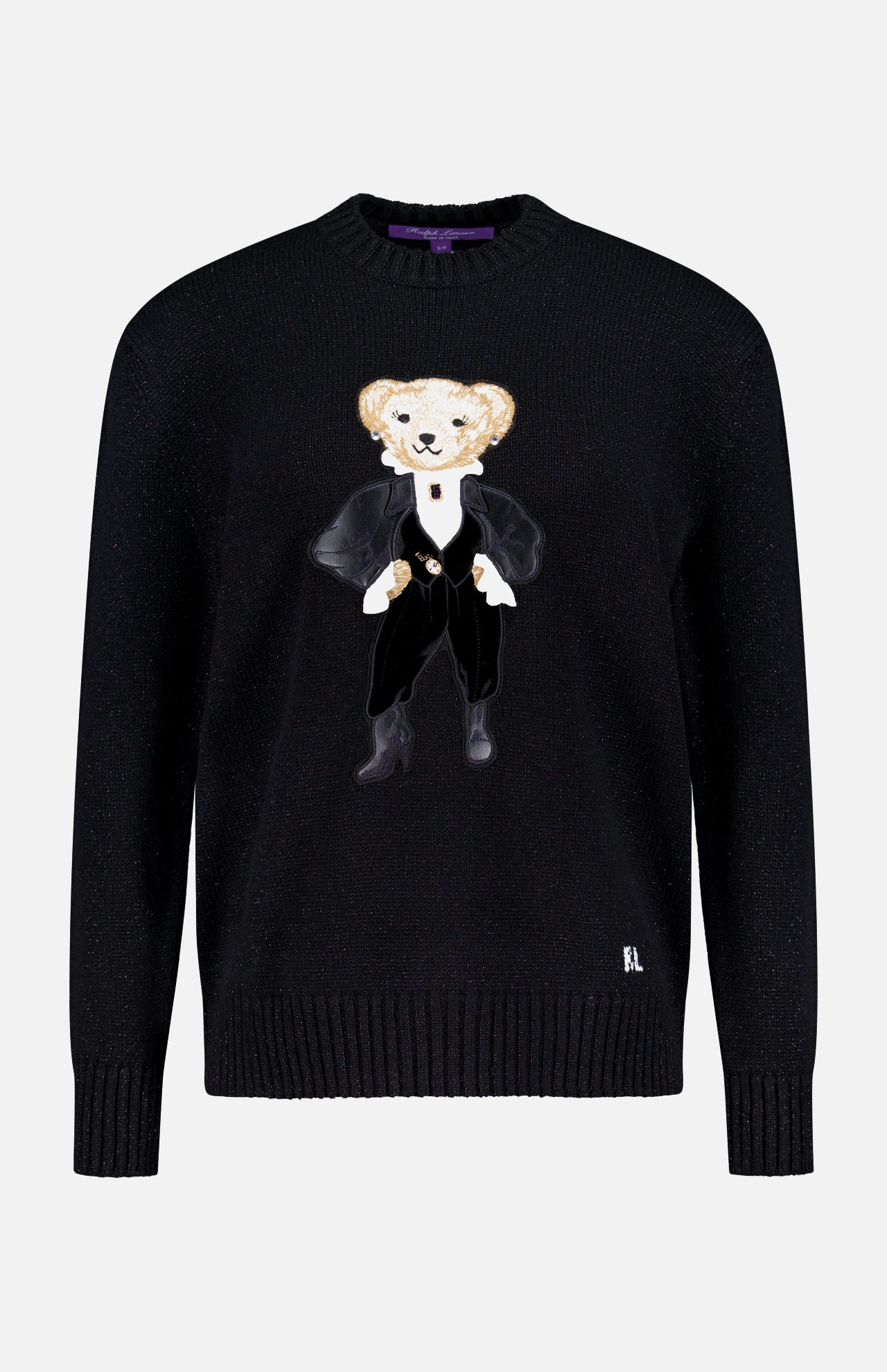 For Holiday 2025, Mr. Lauren was inspired by the intricate beauty of Victorian-era designs, which is evident in the season’s Holiday Polo Bear sweater in black. Spun with lofty cashmere and a hint of metallic yarn for a subtle sheen, four specialized technicians created the Polo Bear patch using a mix of embroidery techniques and a collection of highly considered materials, including lightweight velvet for the pants and vest, cotton broadcloth for the shirt and faux leather for the jacket and shoes. Additional details, including a three-dimensional shirt collar, an embroidered pocket watch and brooch and hot-fixed rhinestones for the diamond earrings, nod to the season’s focus on the finer things. This garment makes for a great gift for the woman that loves a playful sweater.