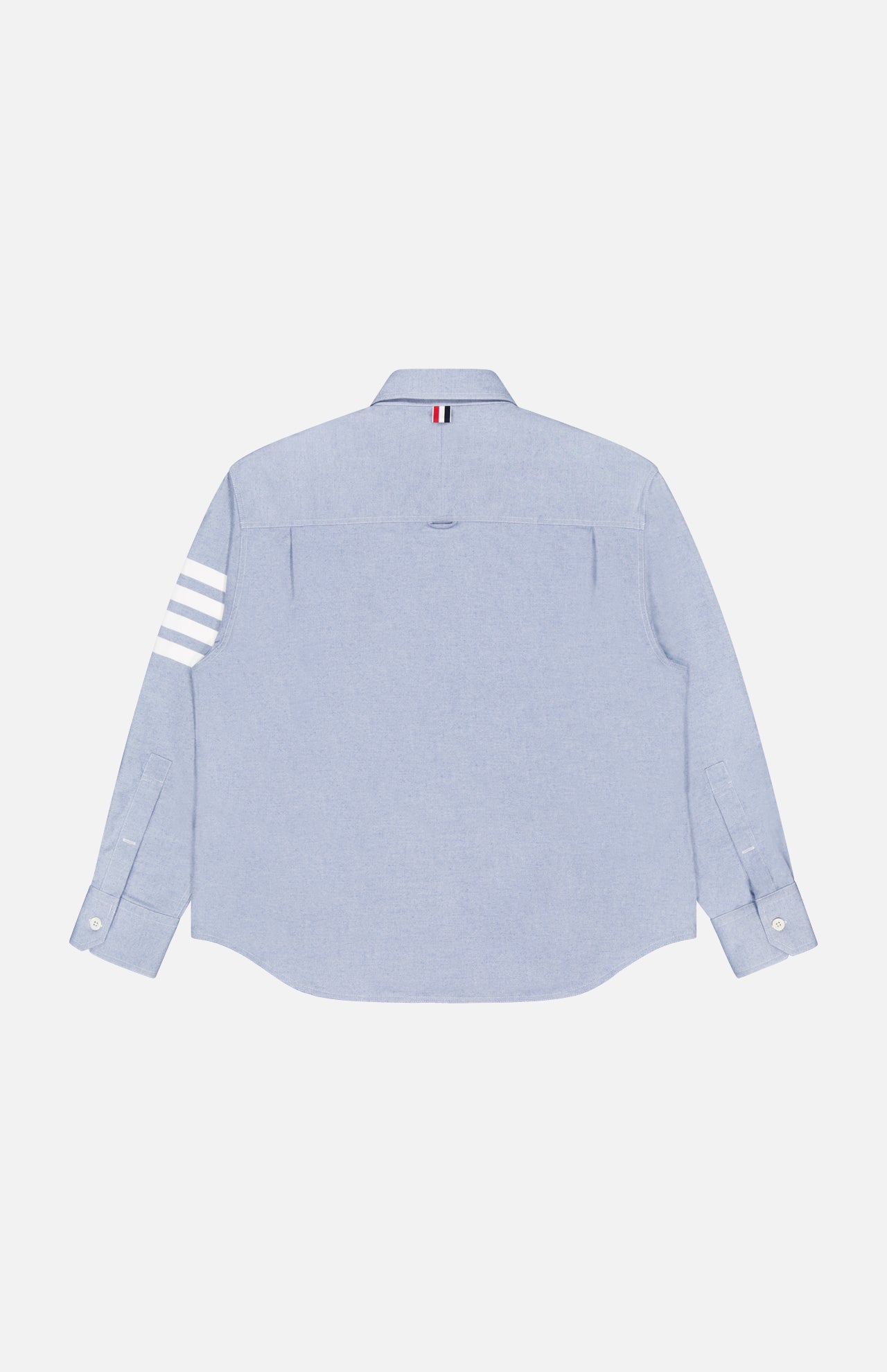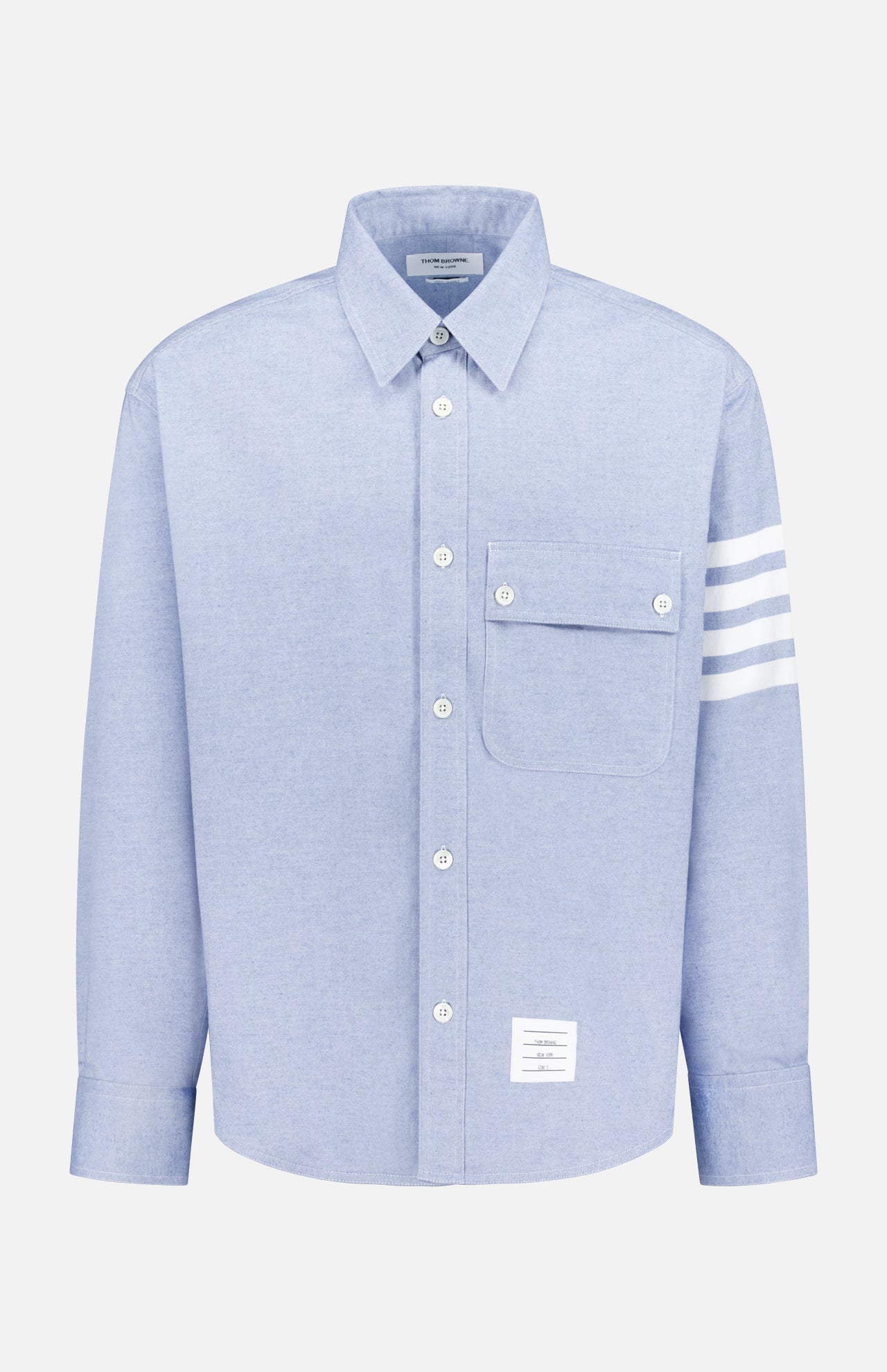 This blue flannel shirt boasts quality craftsmanship and a true American sensibility to create an everyday uniform for the modern man. Inspired by classic Americana, this oversized style has a roomy fit for all-day comfort. A functional chest pocket offers convenient storage while the signature 4-bar detailing and a name tag bring a touch of brand recognition. Layer it over a casual tee or wear it on its own.