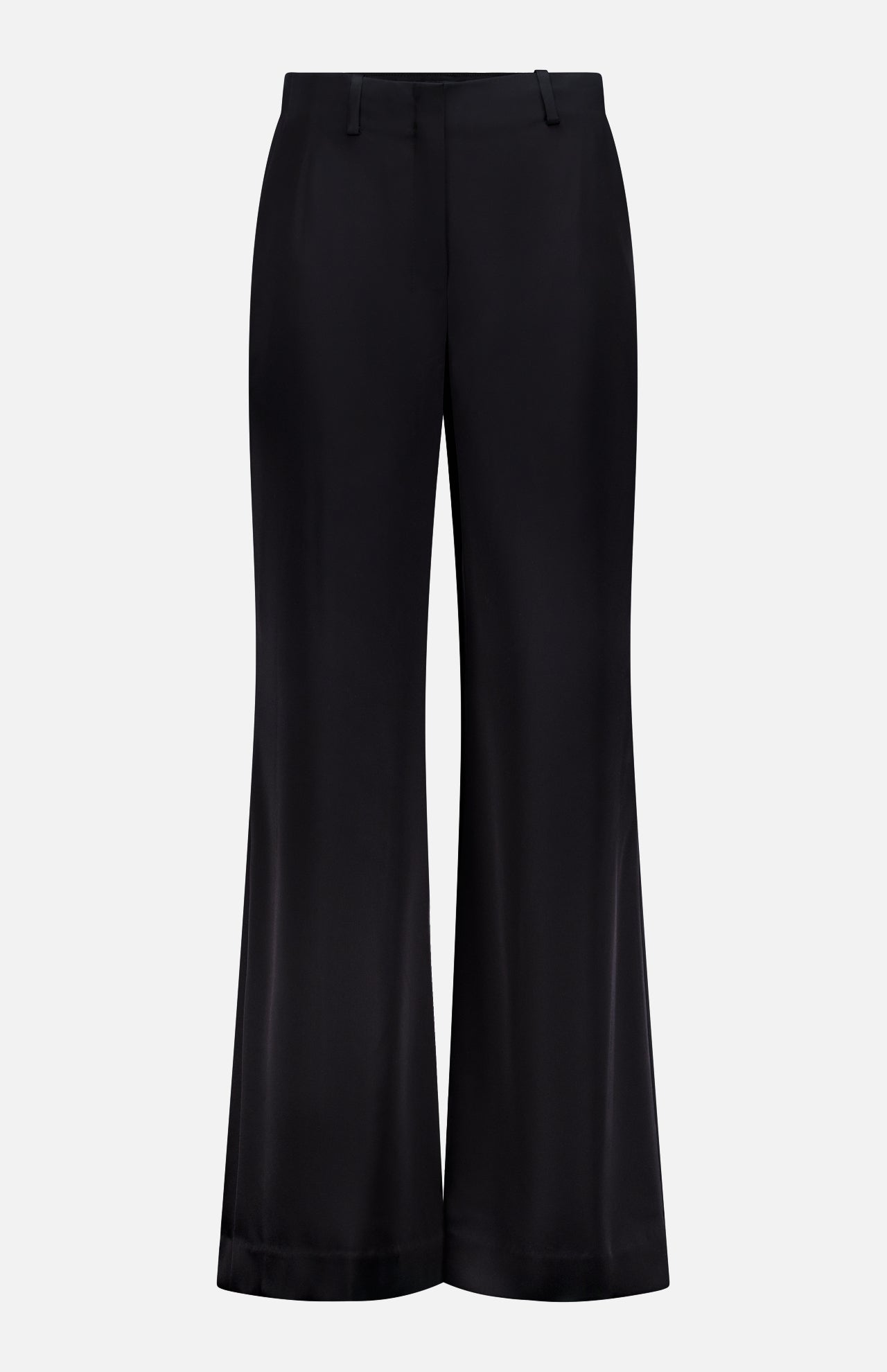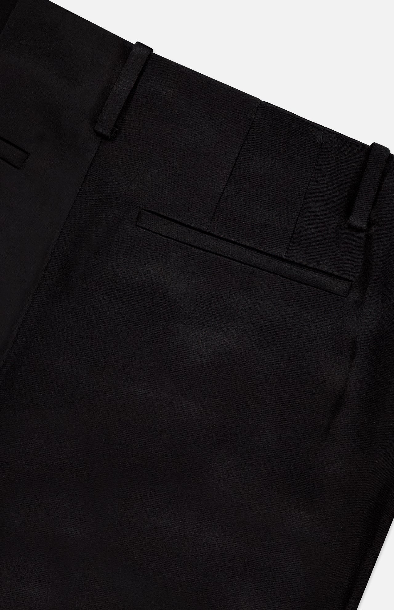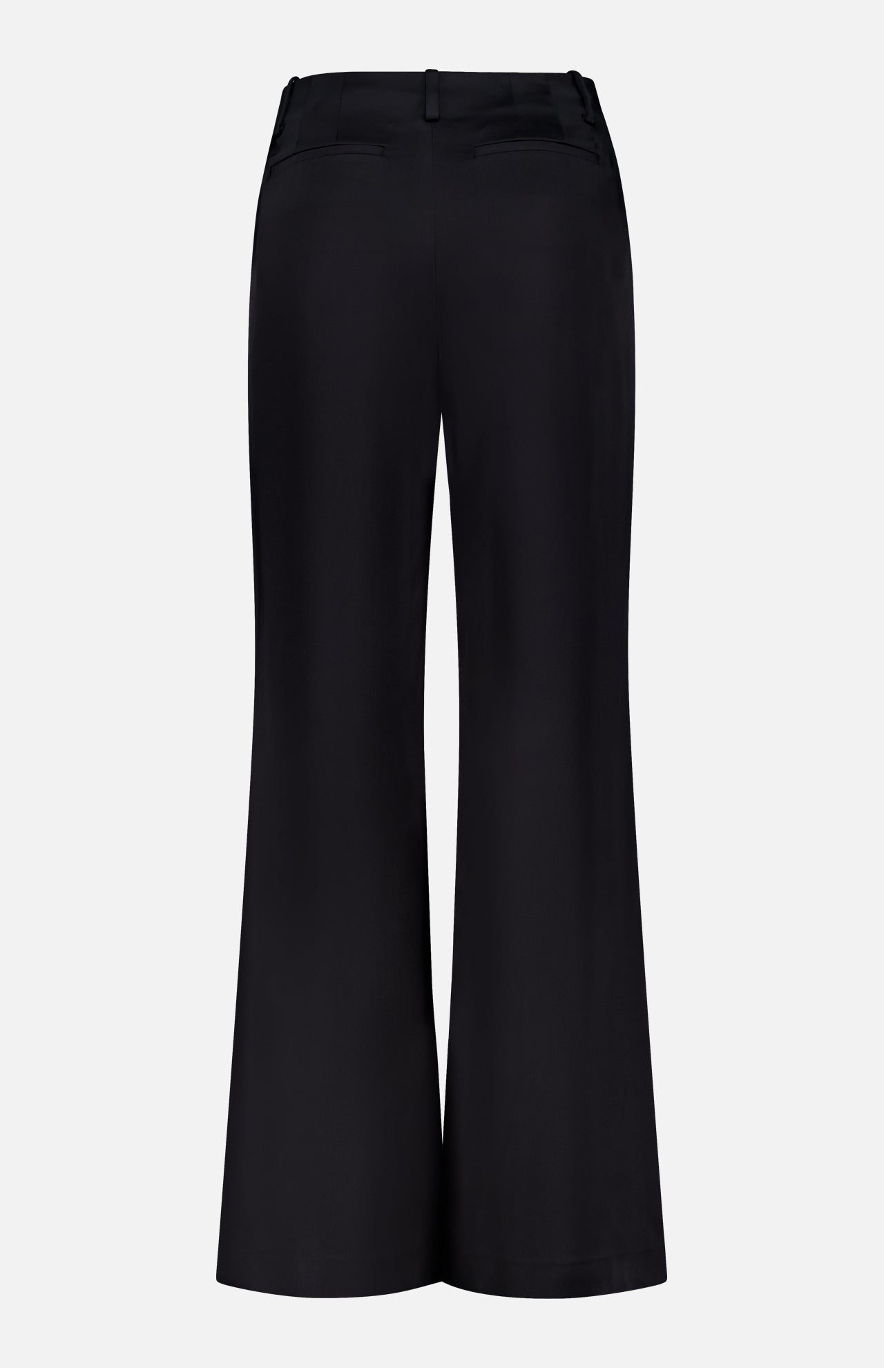 Easy sophistication is here with this flared black pant. Tailored with an elongated leg, this style has a fluid drape that makes it an easy pairing with shirting, blazers or knits. It’s crafted in a drapey Japanese fabric for a style that can go from work to weekend in a snap (swap out your top and shoes for a completely different feel).