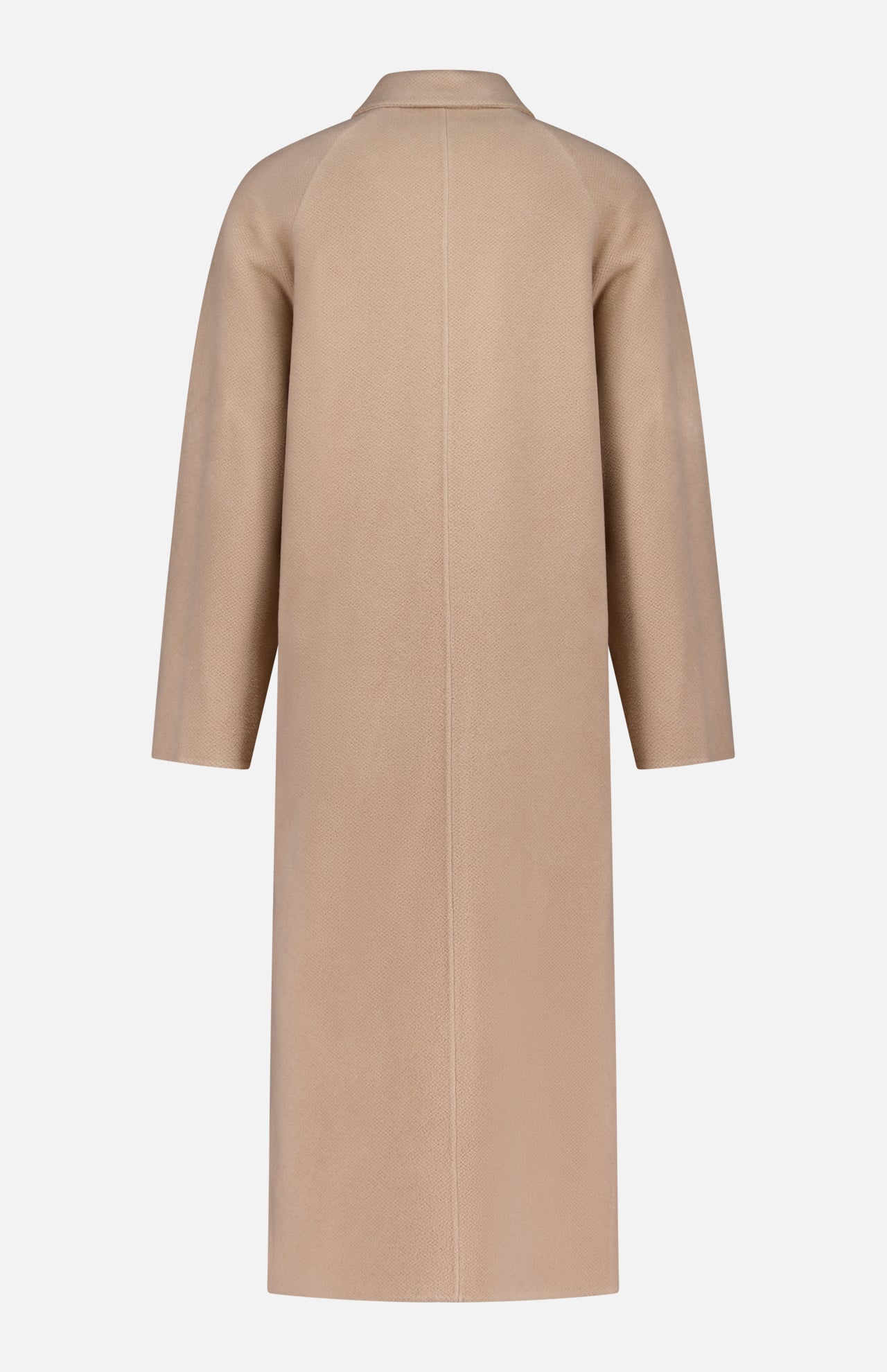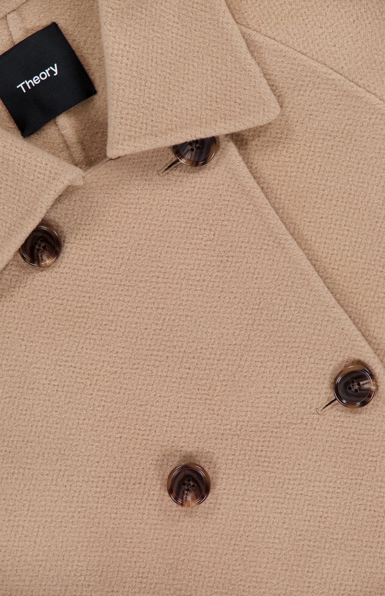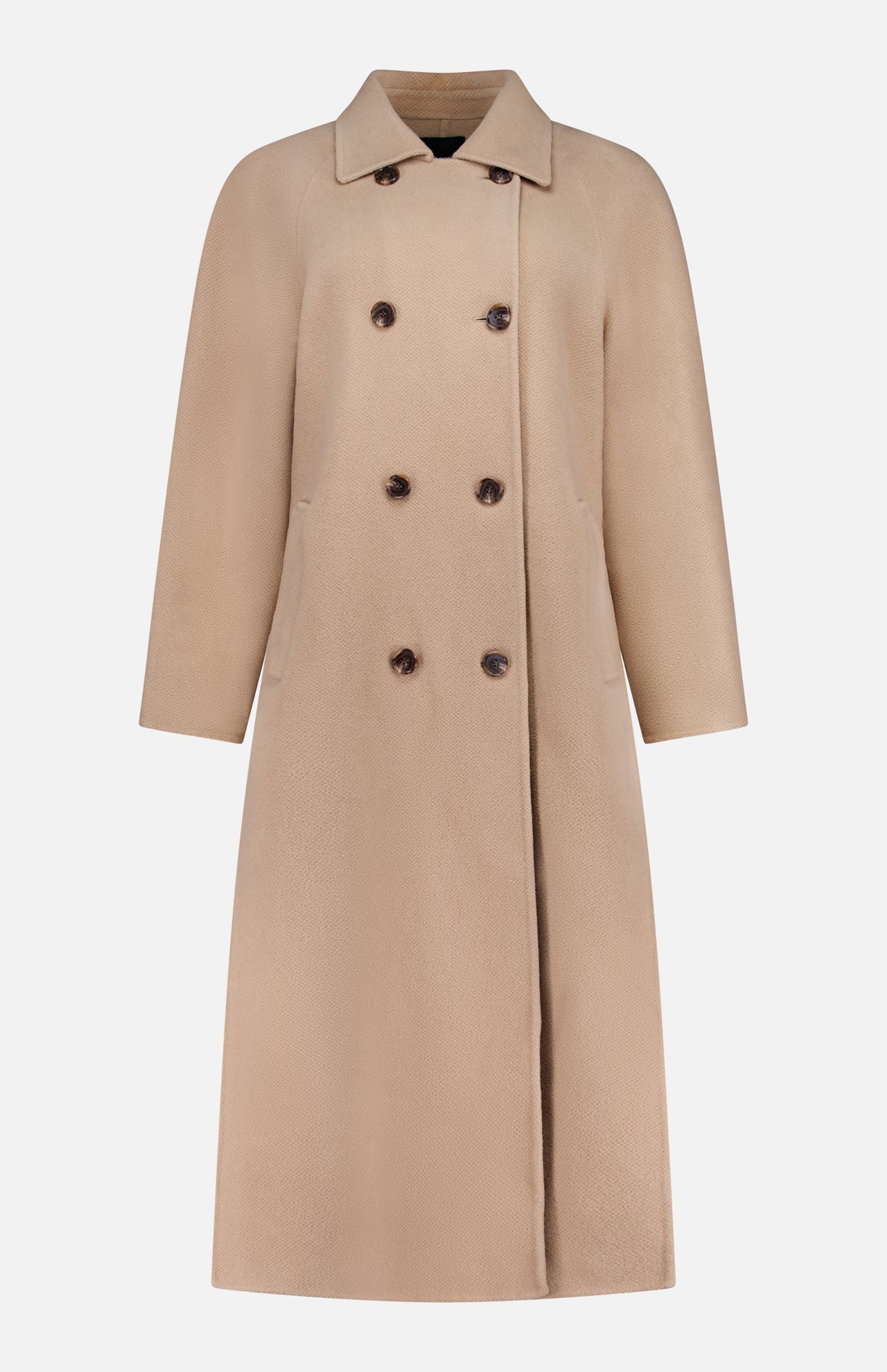 Take a classic and add a little magic to it. It’s a formula we love. This beige jacket has subtle menswear appeal in a double-breasted silhouette. It’s thoughtfully designed from warm wool and recycled cashmere. Special highlights include ultra-high side slits that help to lighten the look of this luxe outerwear piece.