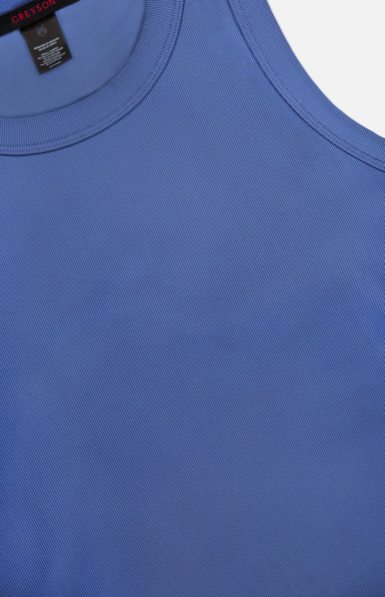 Make moves in this dusty blue sport top constructed with a high neckline, built-in bra and a slim fit. Designed with ribbed fabric that carries an elevated touch, this tank top is made with performance and comfort in mind. There’s a cropped fit that looks great with leggings and hoodies.