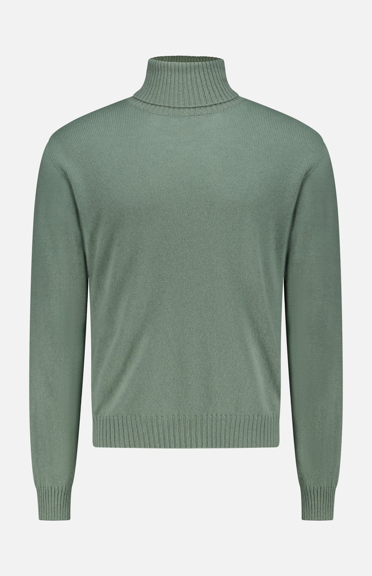 The idea behind this pale green turtleneck sweater is that it can be brought along on your travels without too much thinking (and stressing). A trusted and loyal style companion, this knit top is ready to help you create a number of casual-elegant outfits. Ribbed trims add texture and dimension to this 100% cashmere sweater that always feels right.