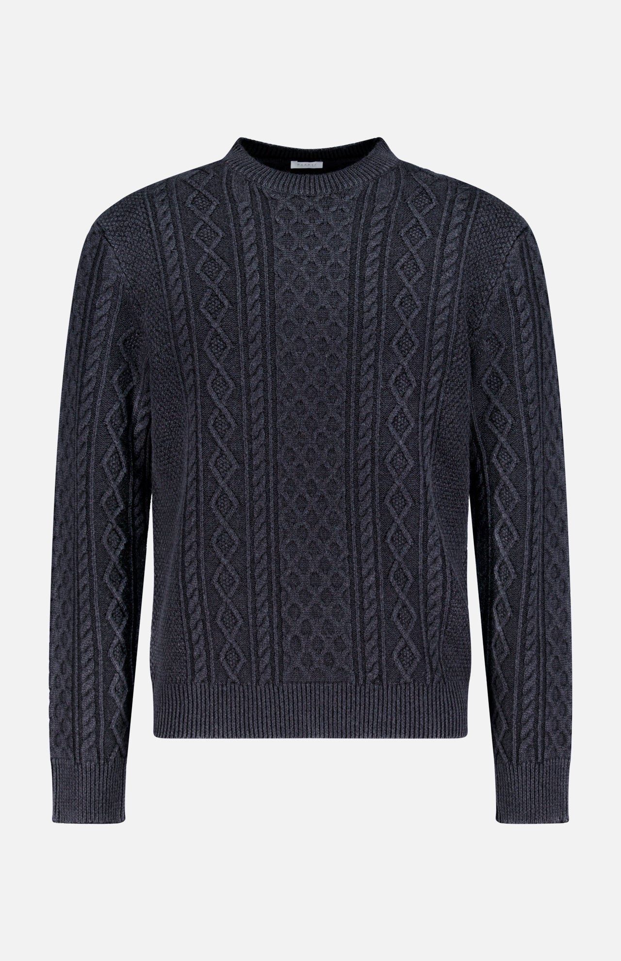 The idea behind this sweater is that it can be brought along on your travels without too much thinking (and stressing). Designed in an easy to style shade of black, this long-sleeve knit garment is crafted of pure wool for warmth and durability. The craftsmanship and cableknit construction are truly a piece of art.