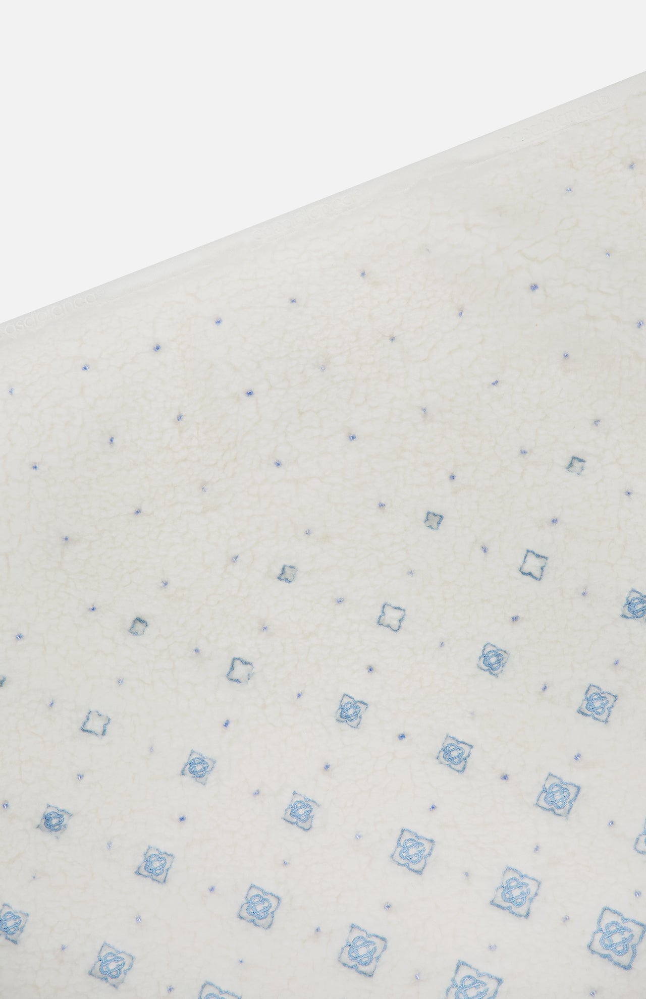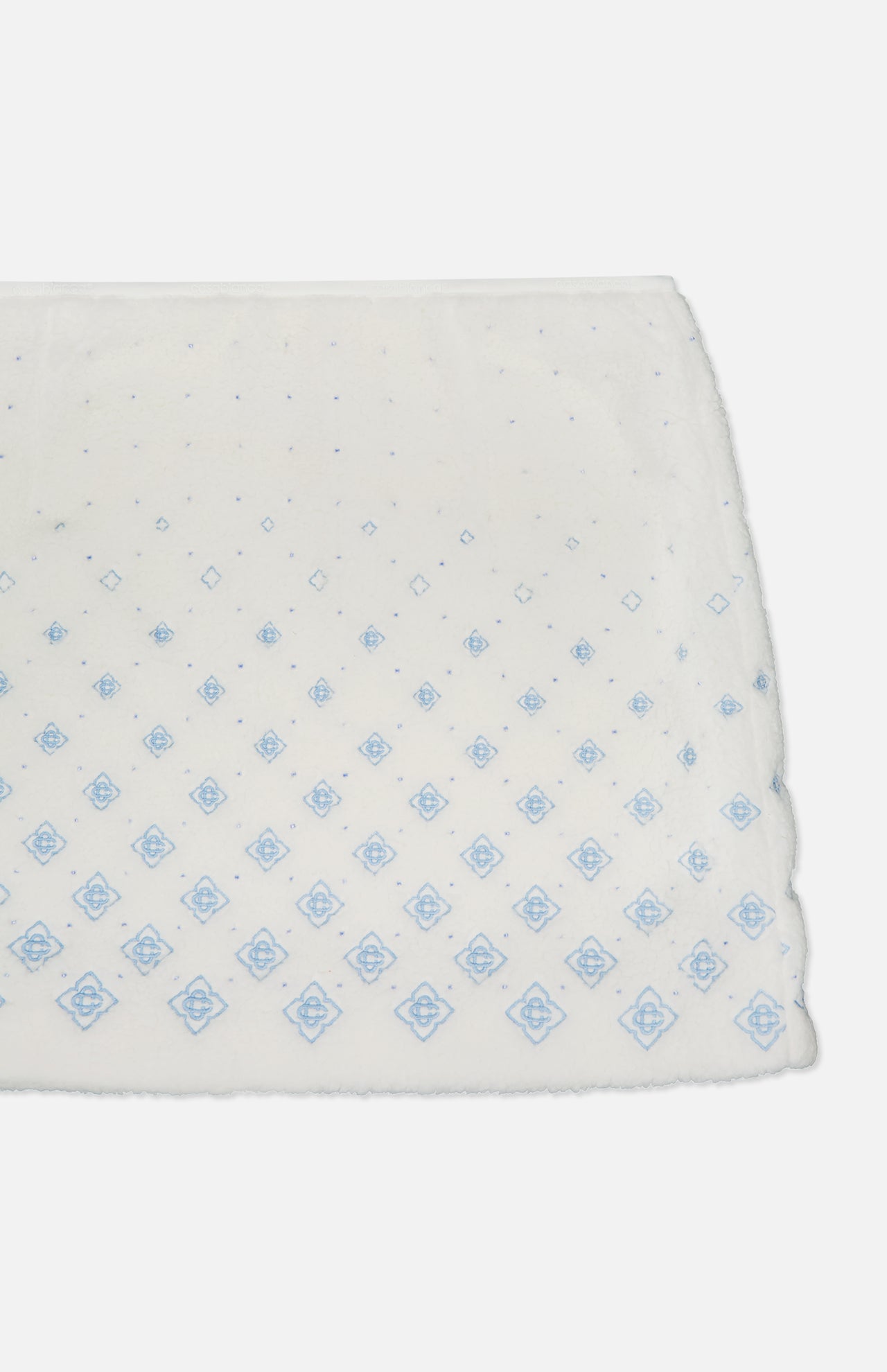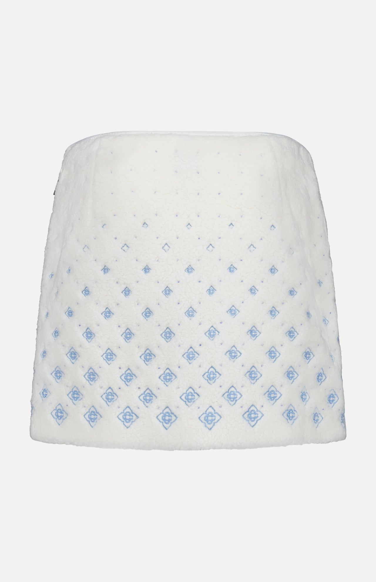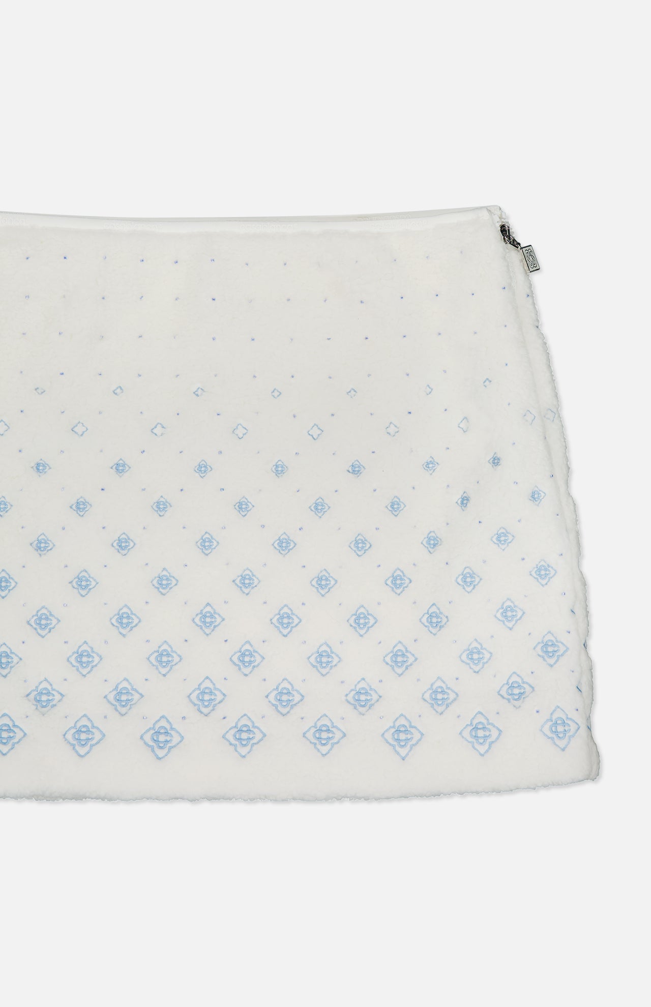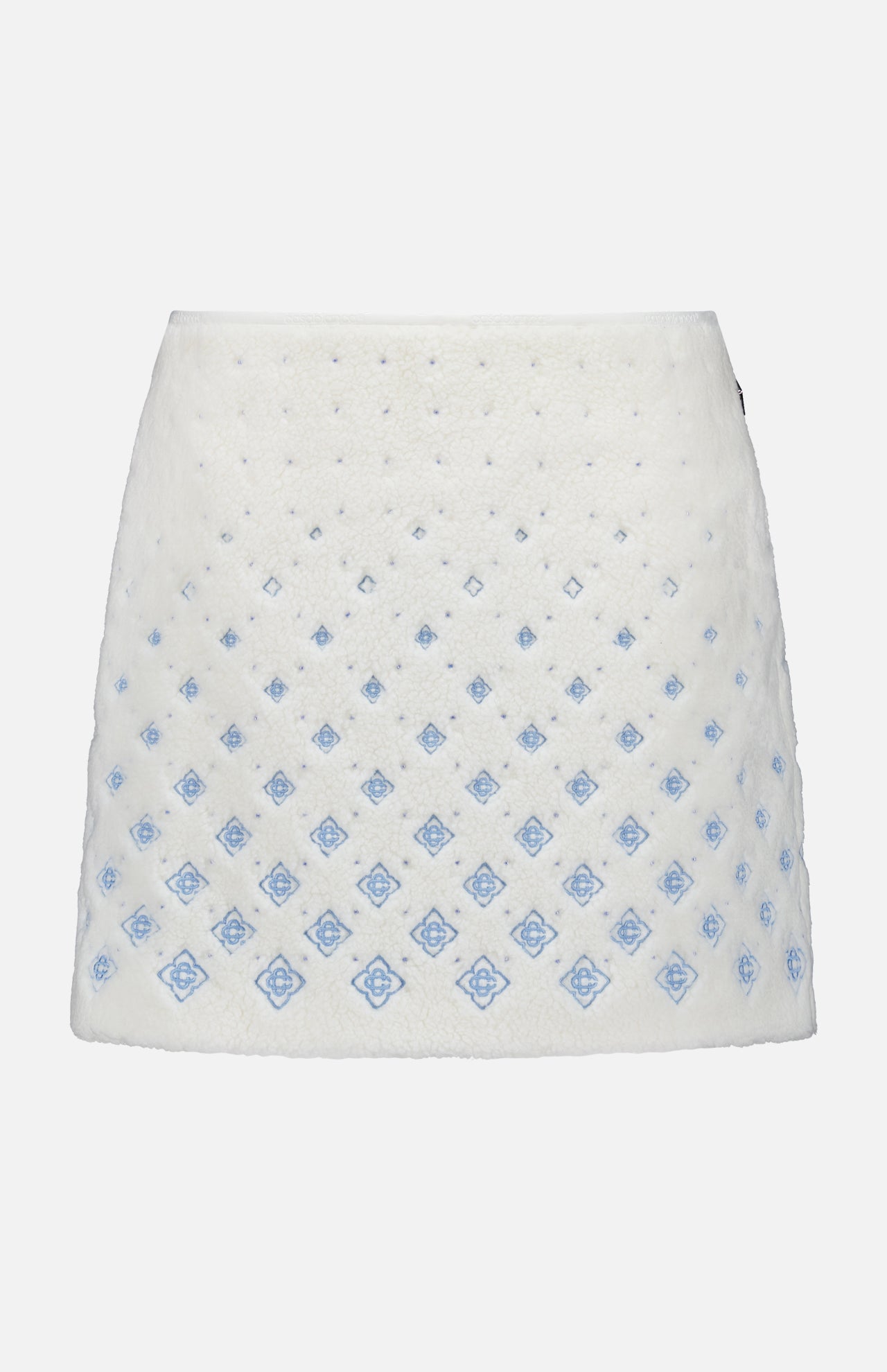 An exotic and cosmopolitan charm is built into the Casablanca brand. The founder’s French and Moroccan roots weave a worldly wonder throughout every piece including this fleece mini skirt. Made special with a blue embroidered gradient monogram, this style has a refined après-sport design in white. It’s inspired by graceful silhouettes of Japan's winter countryside and snow-covered landscapes for minimalist beauty.