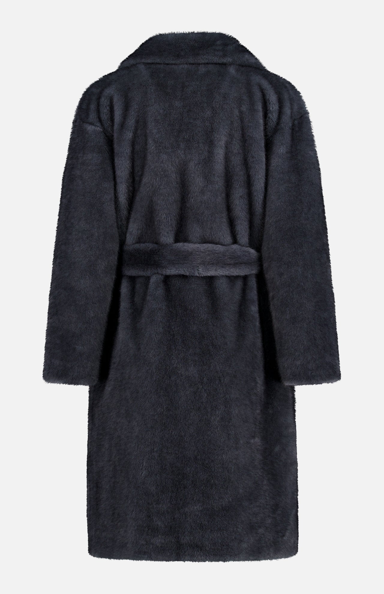 Embrace a new season with a statement coat that has everyone applauding your good taste. Complete cold weather looks with this dark grey coat with a clean silhouette and a concealed snap-front closure. A faux fur design, this garment delivers a ladylike glamour that everyone can appreciate. The final flourish comes in the lavish chain print at the interior (and we’re a sucker for that sort of detail).