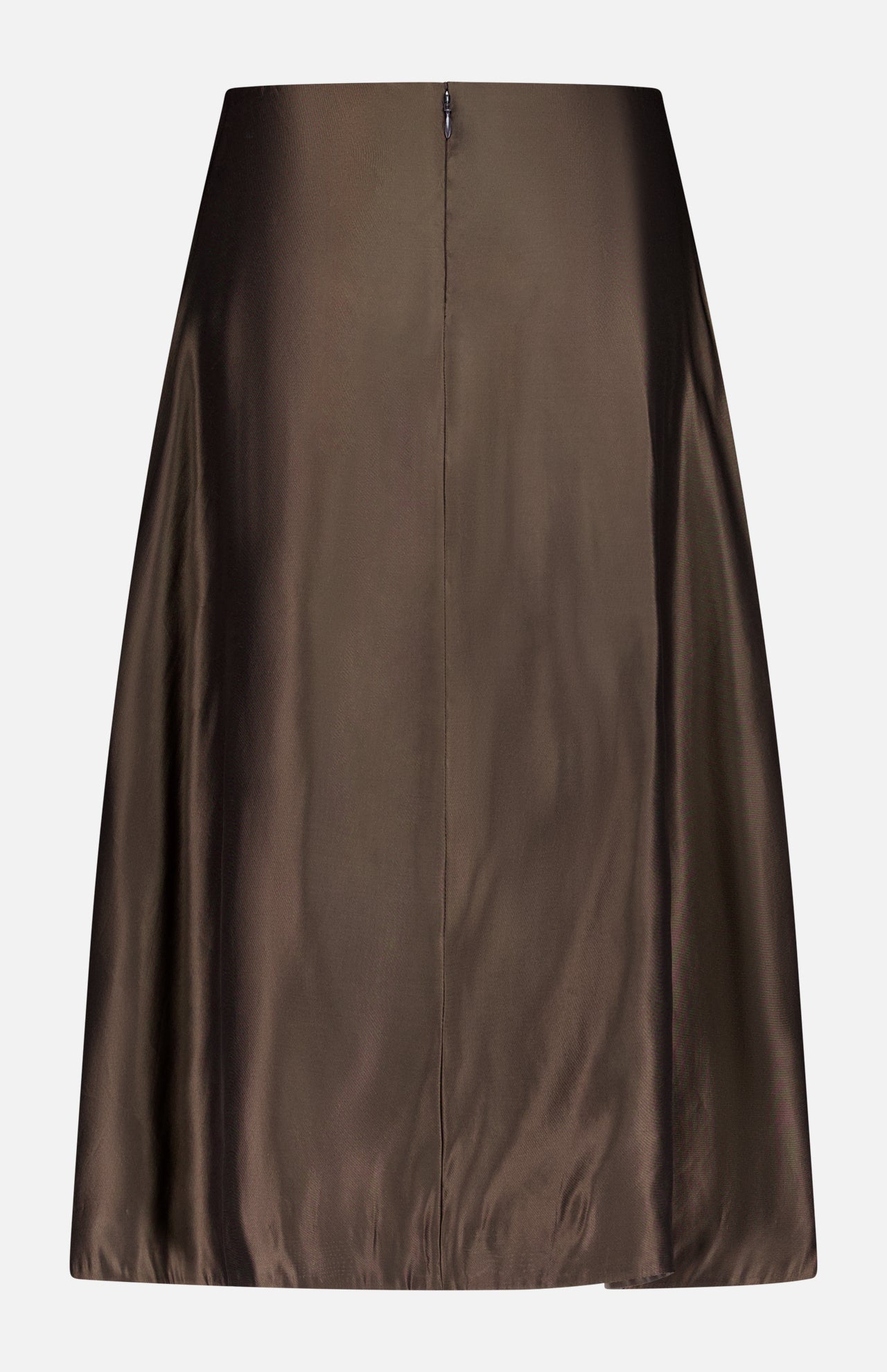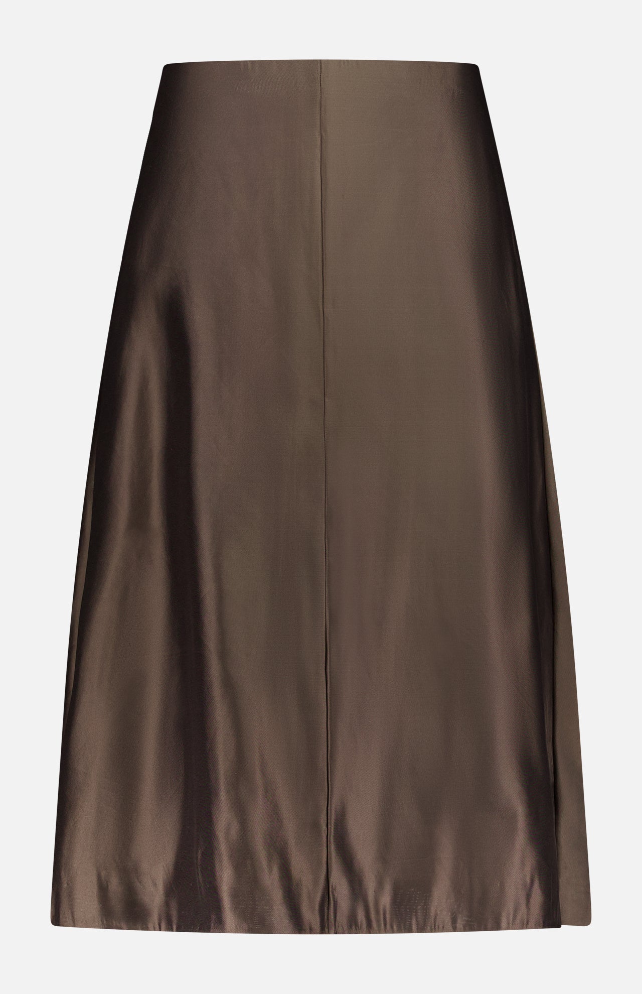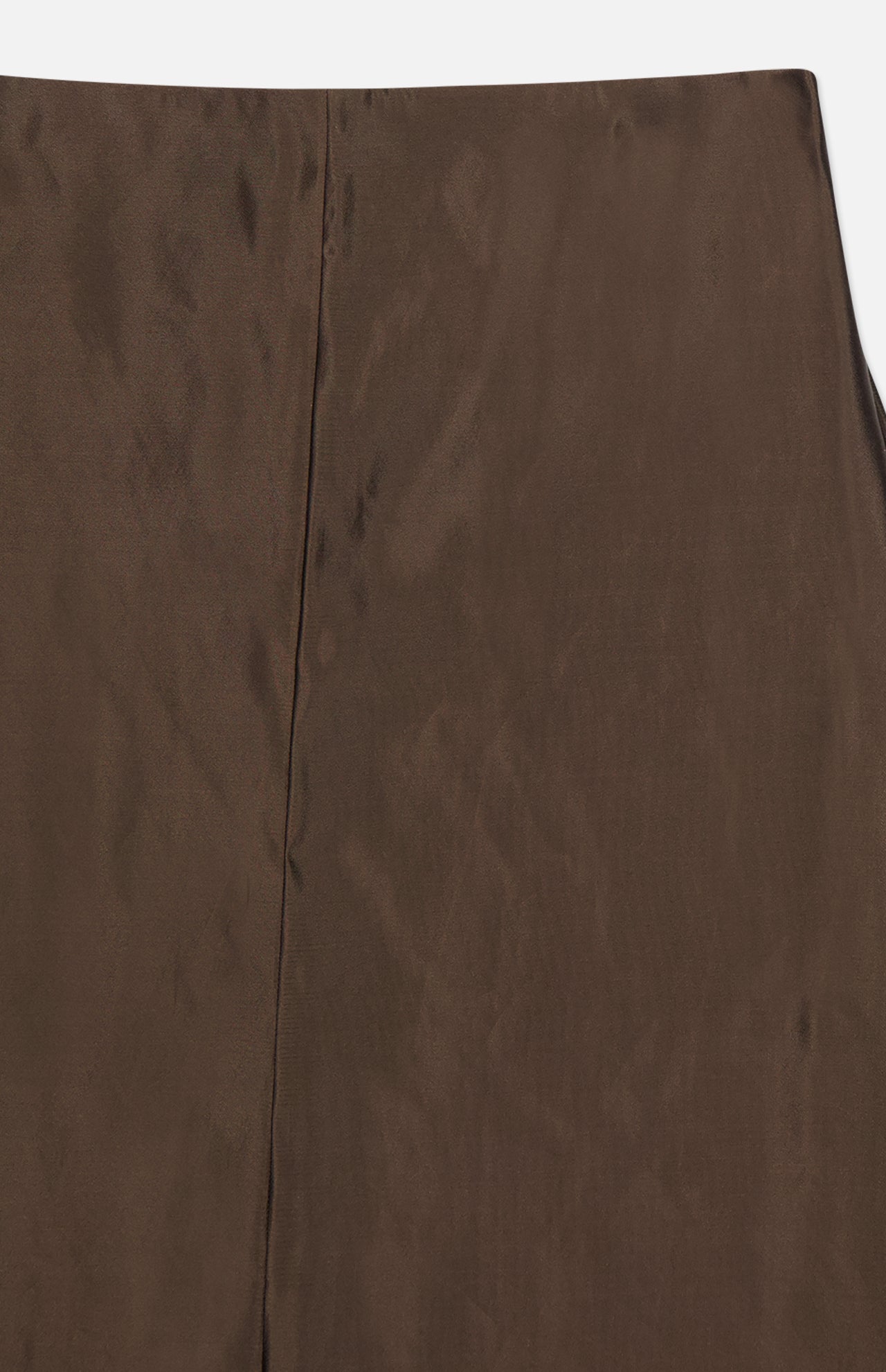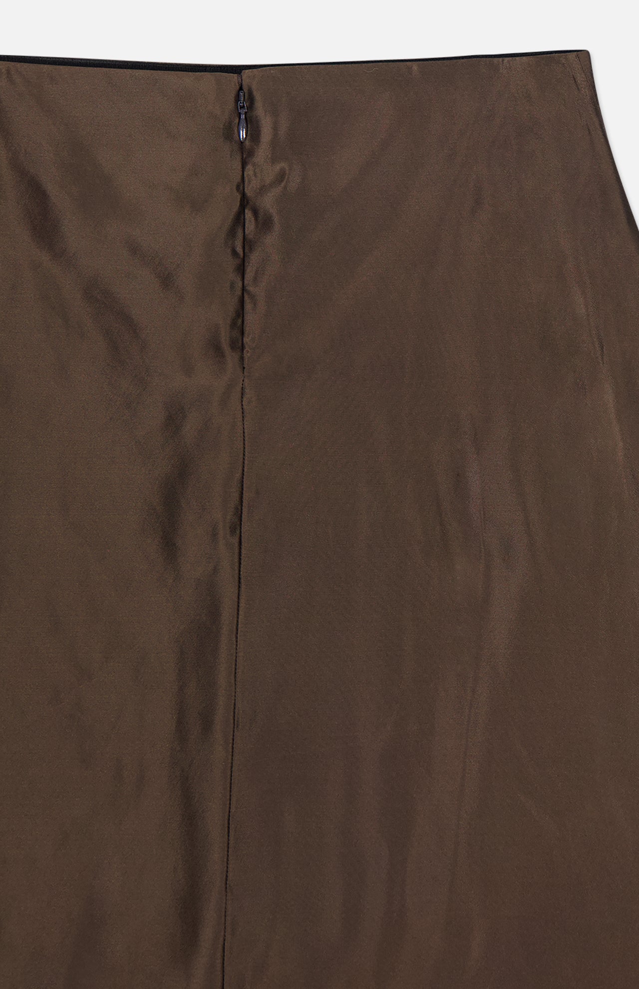 When only a minimalist wardrobe will do, this dark brown skirt is designed with a chic philosophy that’s instantly recognizable. This A-line midi skirt is animated by Italian twill selected for its crisp feel and fluid, silky drape. It’s designed for a low-slung fit with a concealed zipper at the back for a clean finish. Style with an oversized sweater for casual sophistication.