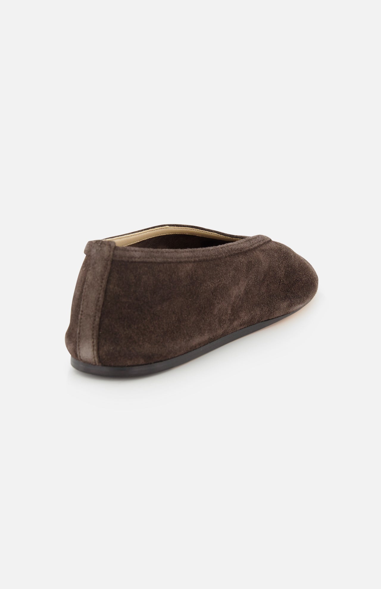 Promising function, movement and beauty, this dark brown suede flat is imbued with a classicism, designed in part to allow its wearer to bring their own creative intent to it. With a slipper silhouette, this minimalist option is handcrafted in supple, deconstructed chocolate suede with a cushioned calf leather insole and suede piping. From dresses to denim, this style adds a ladylike sophistication.