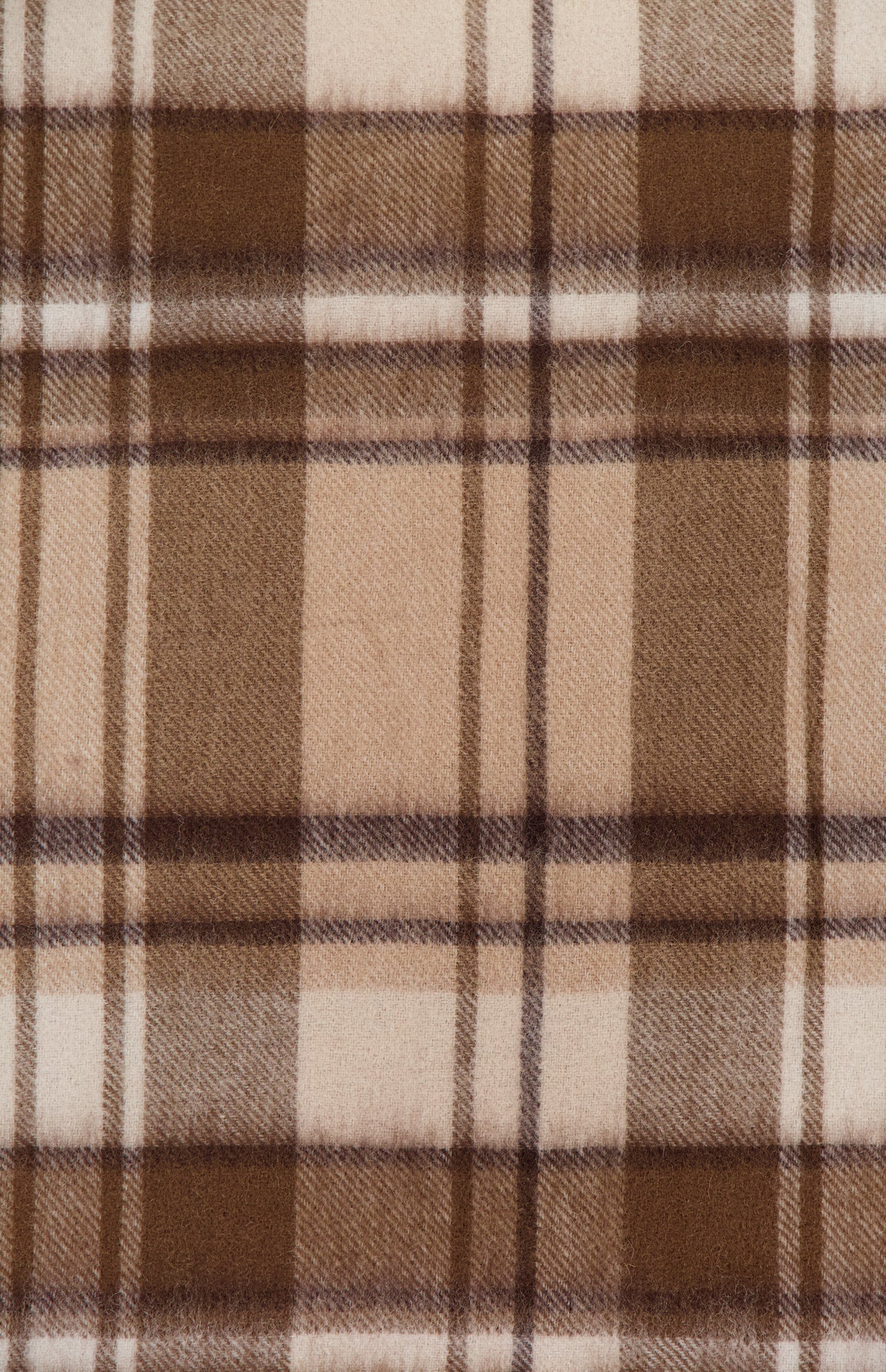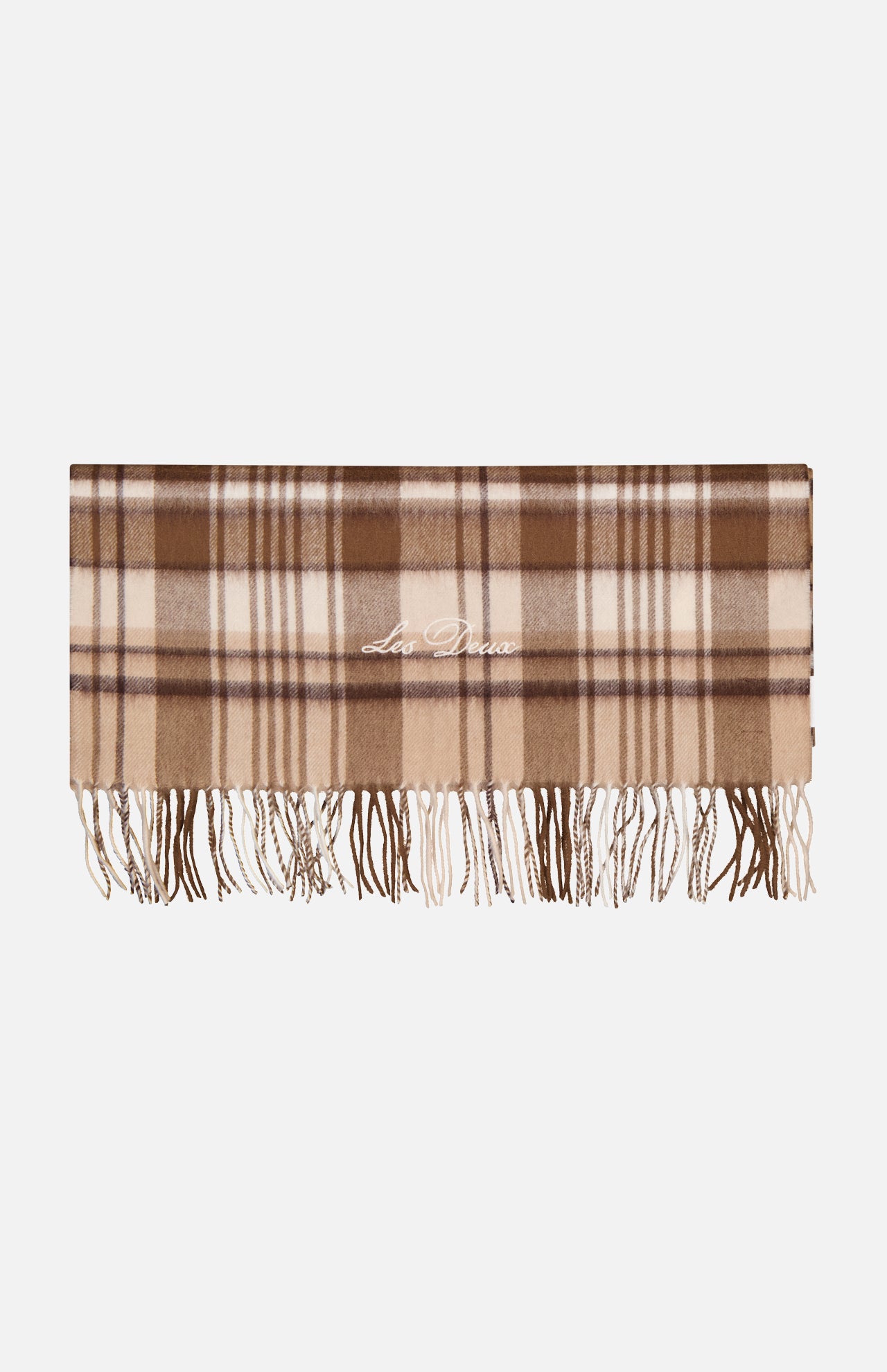 Come on board with clothing that unites preppy and urban aesthetics that change your perspective, change your life and change the world. This brown and cream scarf has a timeless check pattern and is ready to see you through the winter. It's made in brushed wool and finished with cursive brand lettering as well as fringe trim.