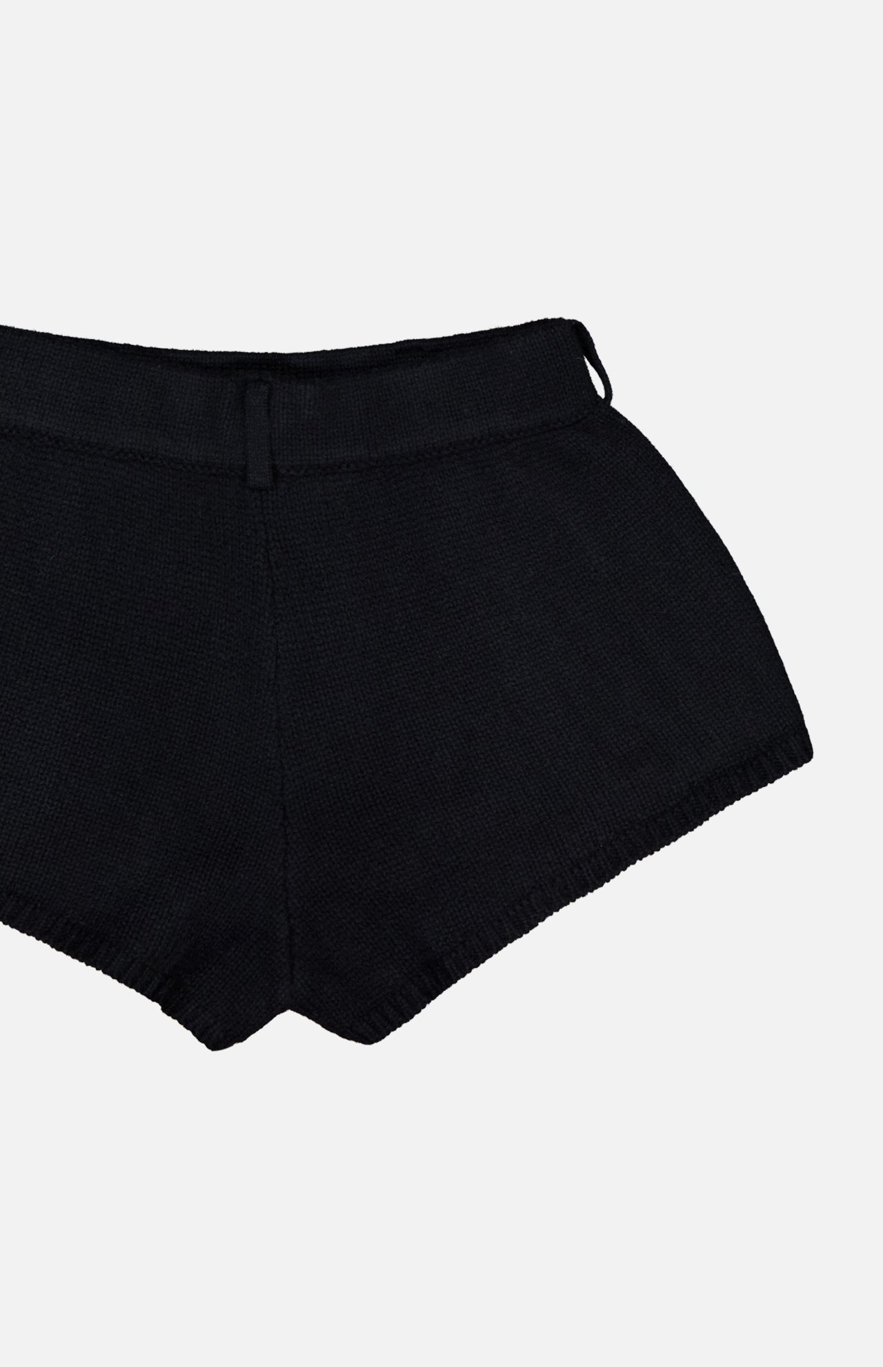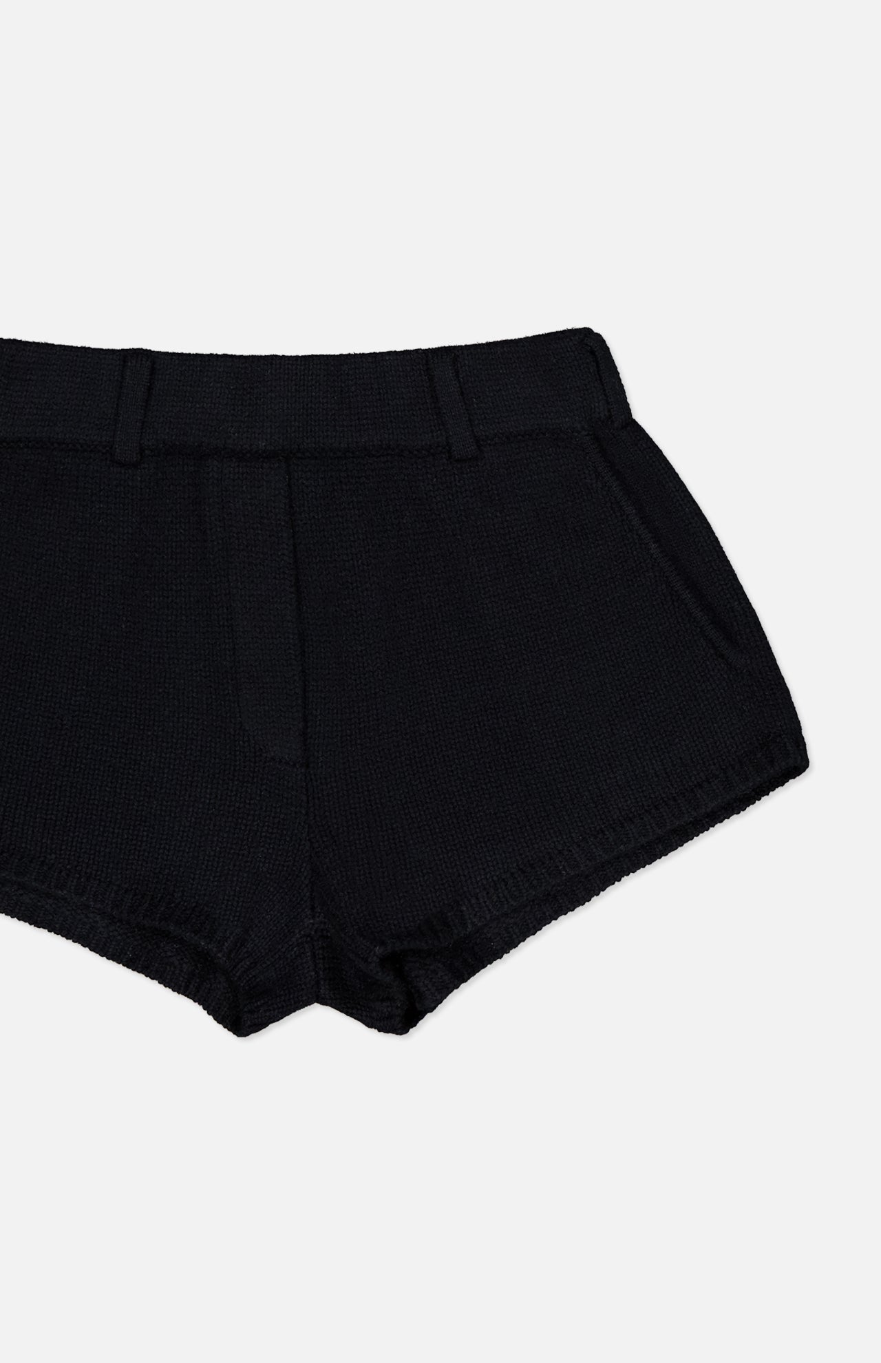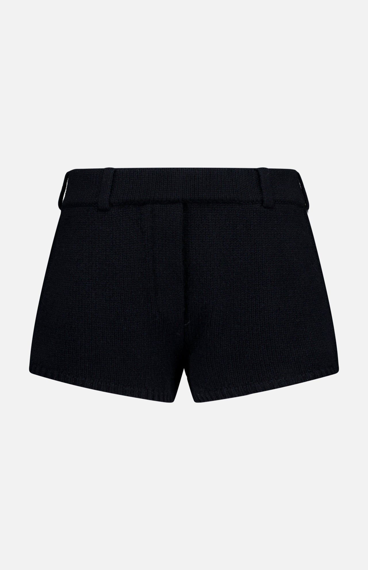 Chinese heritage coupled with a Scandinavian aesthetic define this slow luxury brand’s ethos making them an authority on cashmere. These black shorts are knit for softness and structure in mid-weight, double face cashmere. Expect a relaxed fit and a cropped silhouette with a faux fly and belt loops–elements borrowed from tailoring.