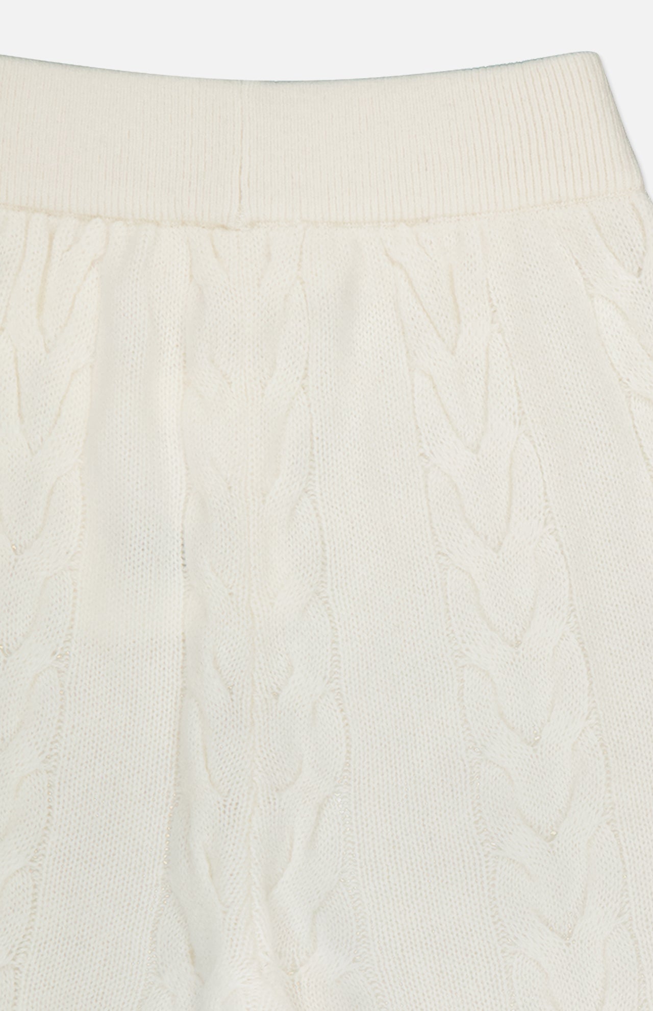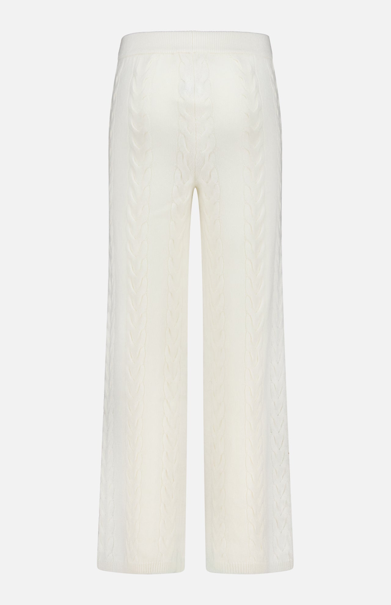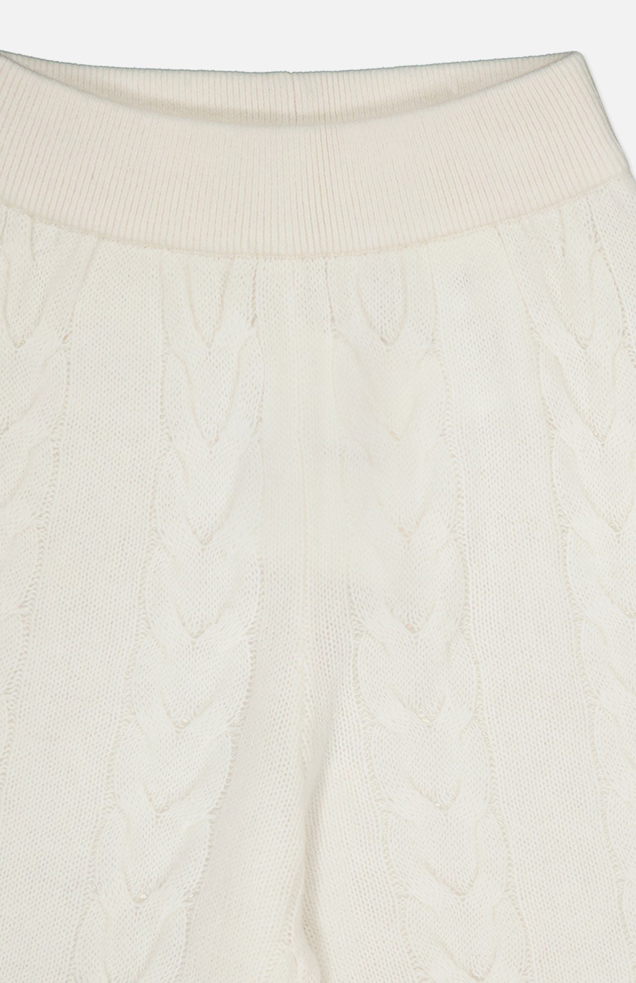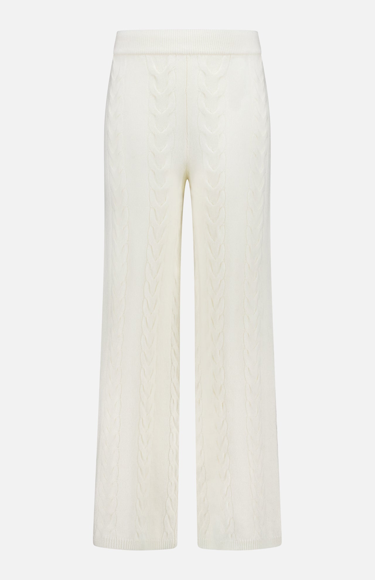 Chinese heritage coupled with a Scandinavian aesthetic define this slow luxury brand’s ethos making them an authority on cashmere. This is a relaxed, everyday trouser crafted in dense, heavy knit cashmere adorned with cableknit panels in an off-white tone. The straight, full-length silhouette sits comfortably at the waist and features an elasticized waistband. Wear them at home lounging or for a casual Friday ensemble.