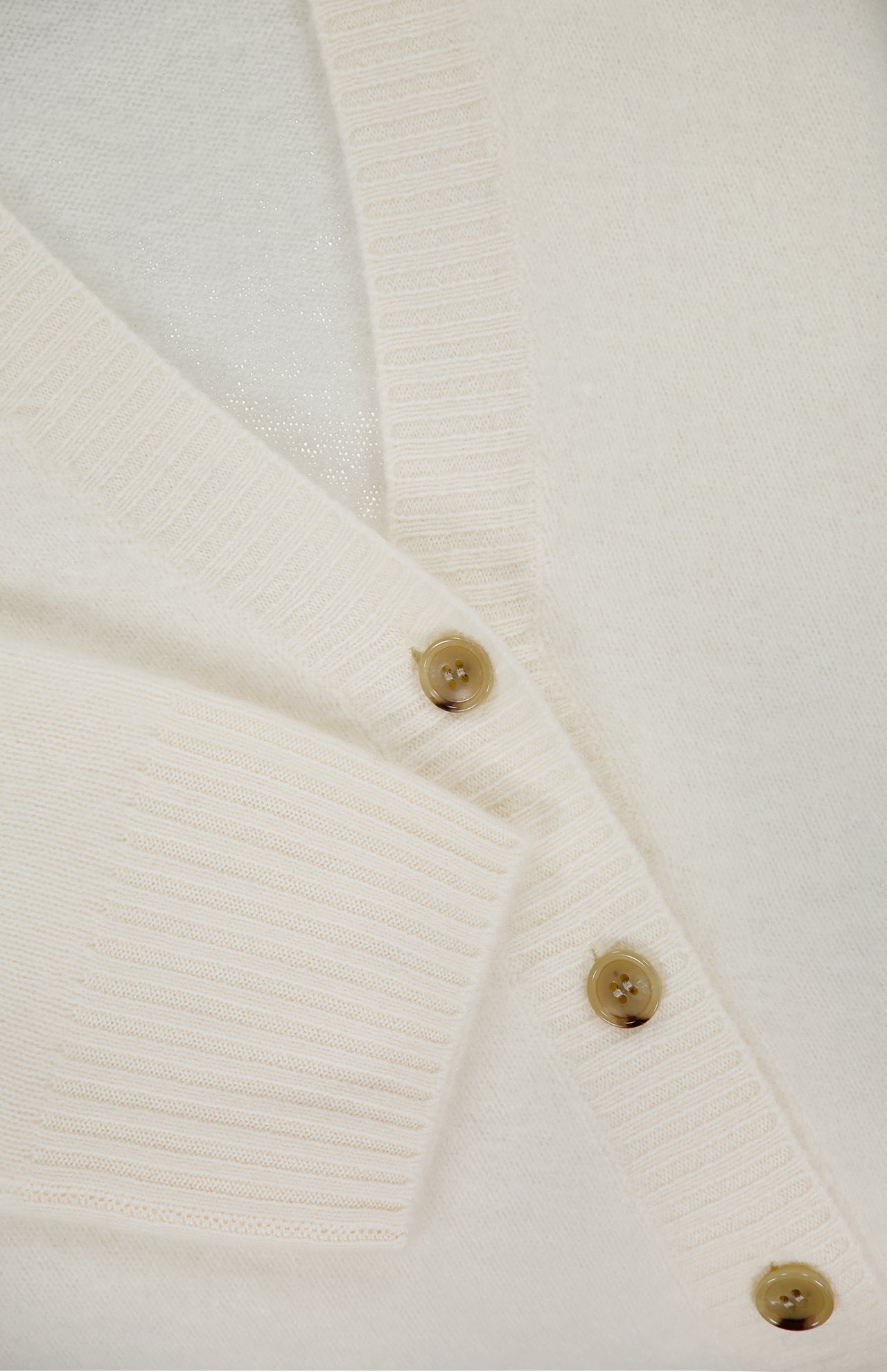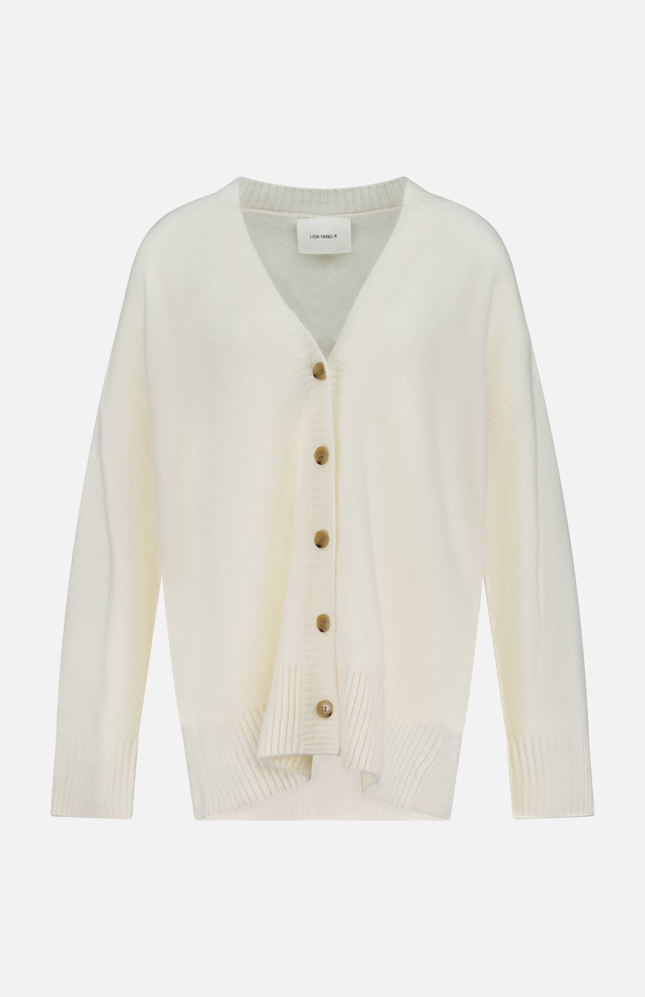 Chinese heritage coupled with a Scandinavian aesthetic define this slow luxury brand’s ethos making them an authority on cashmere. This cream cardigan is crafted in signature brushed cashmere for refined softness. There’s a relaxed fit and a deep v-neck as well as front button fastening and full-length sleeves. It's an instant classic.