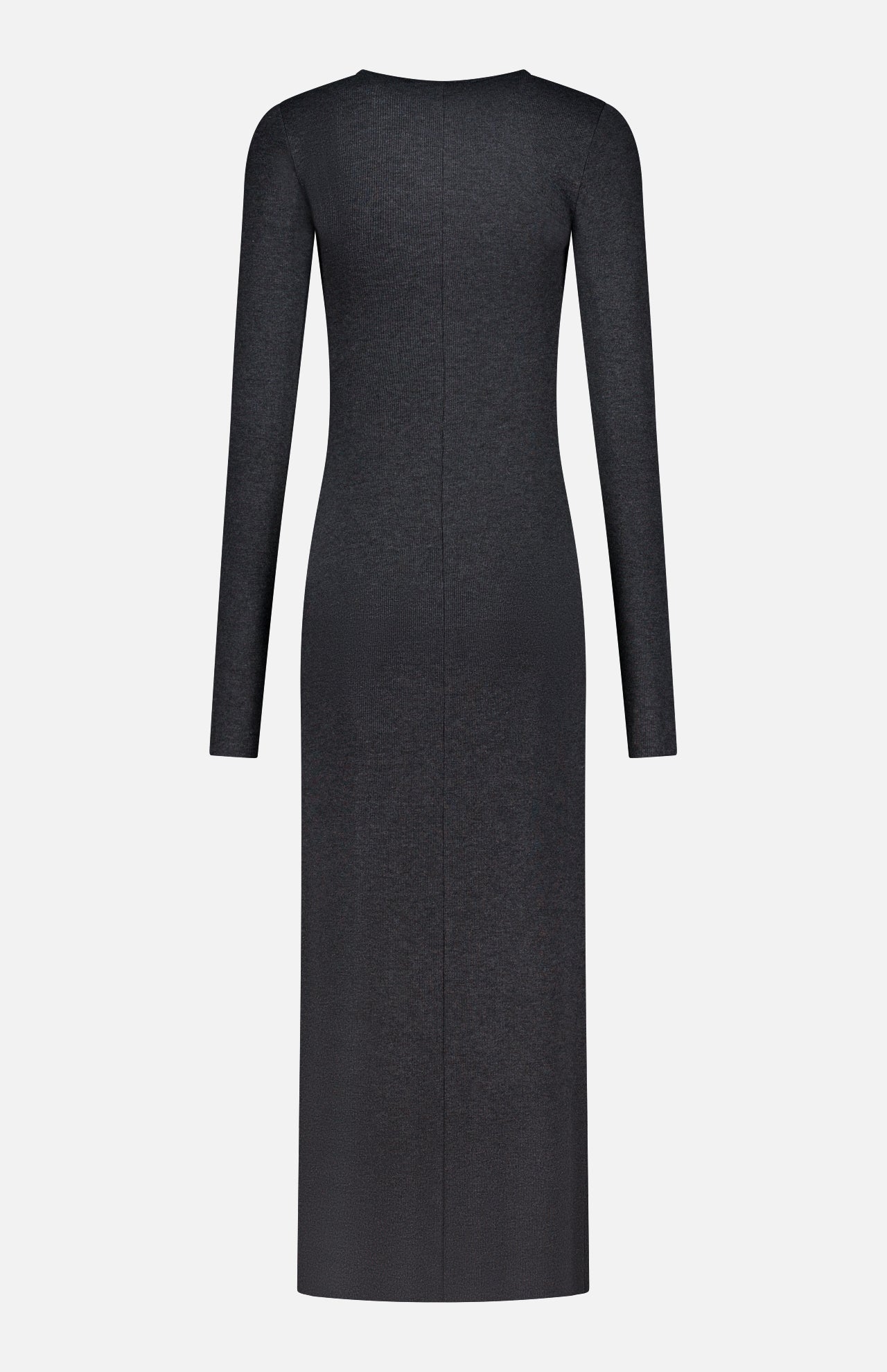 Foundational pieces that culminate in a perfect wardrobe. This charcoal maxi dress is designed with long sleeves and a simple crew neckline. It’s crafted from butter-soft ribbed fabric, offering a form-fitting silhouette. This versatile essential serves as the perfect base layer for a number of jackets (think denim, leather and bombers).
