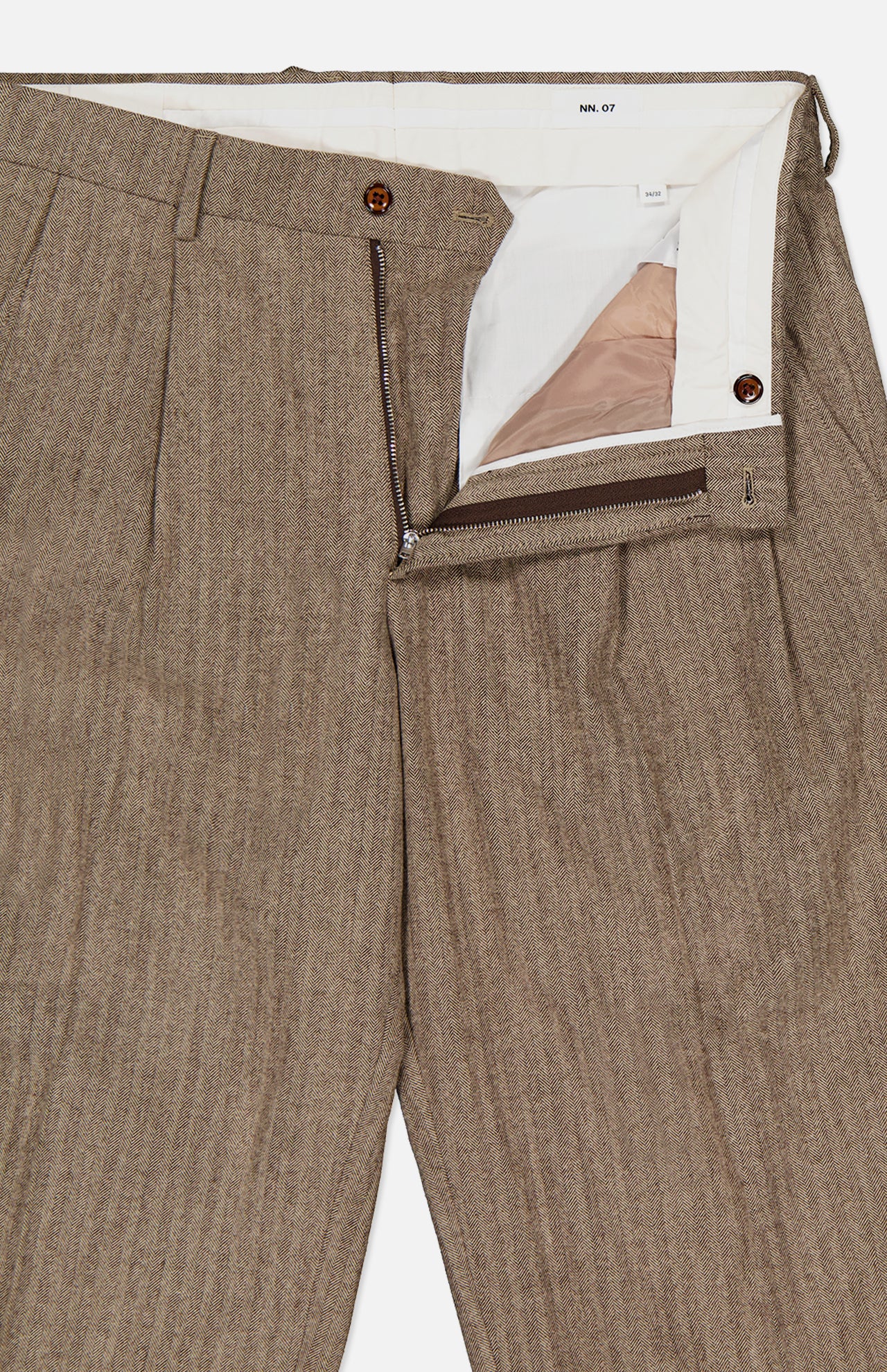Redefining the modern-casual wardrobe, this brand believes in personalities, not nationalities and creates clothing that celebrates diversity, dedication and community. These light brown trouser pants are designed with a relaxed fit and a wide leg. You’ll love the warm and comfortable material in a stylish and timeless herringbone weave with a brushed finish.
