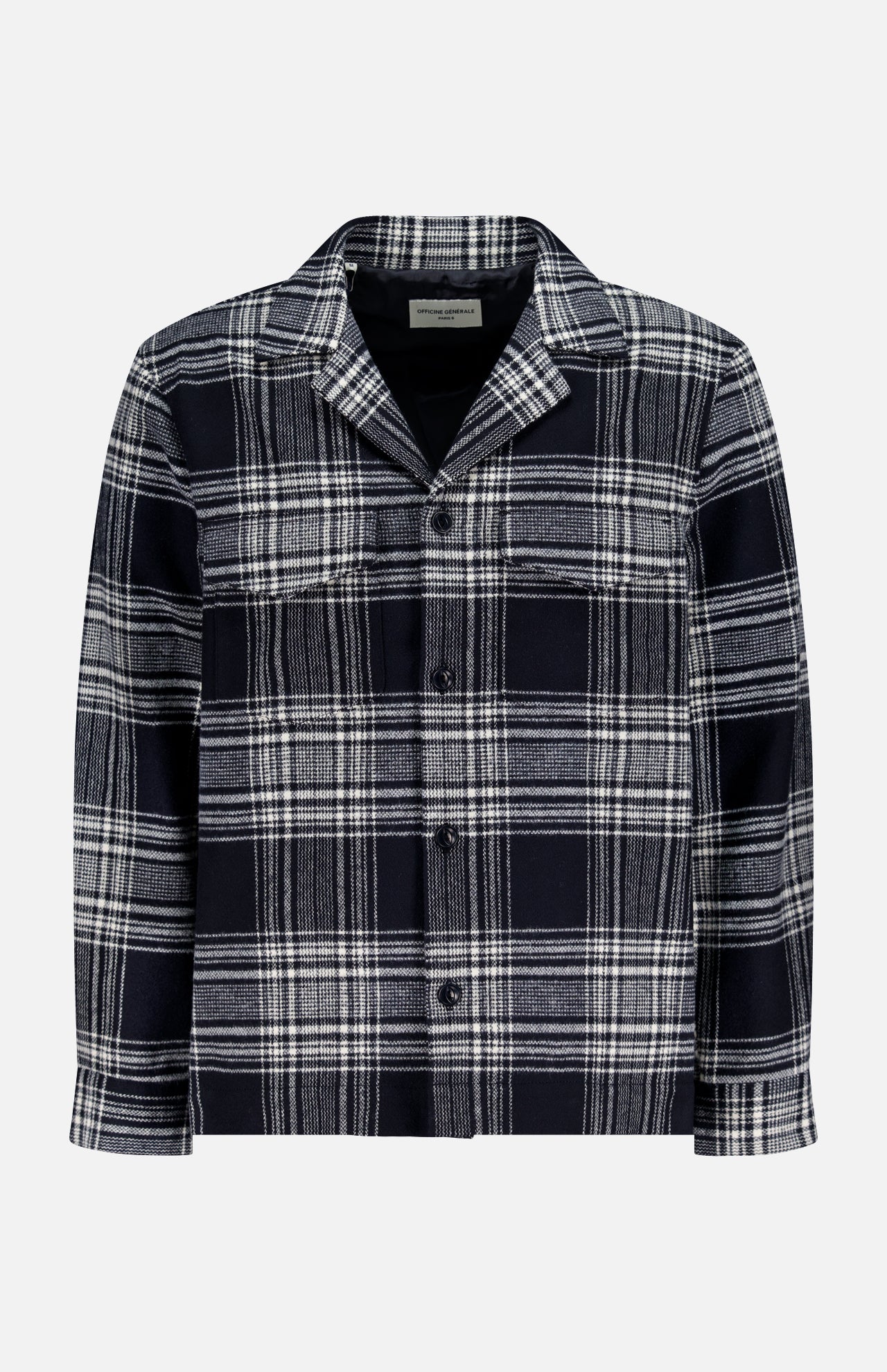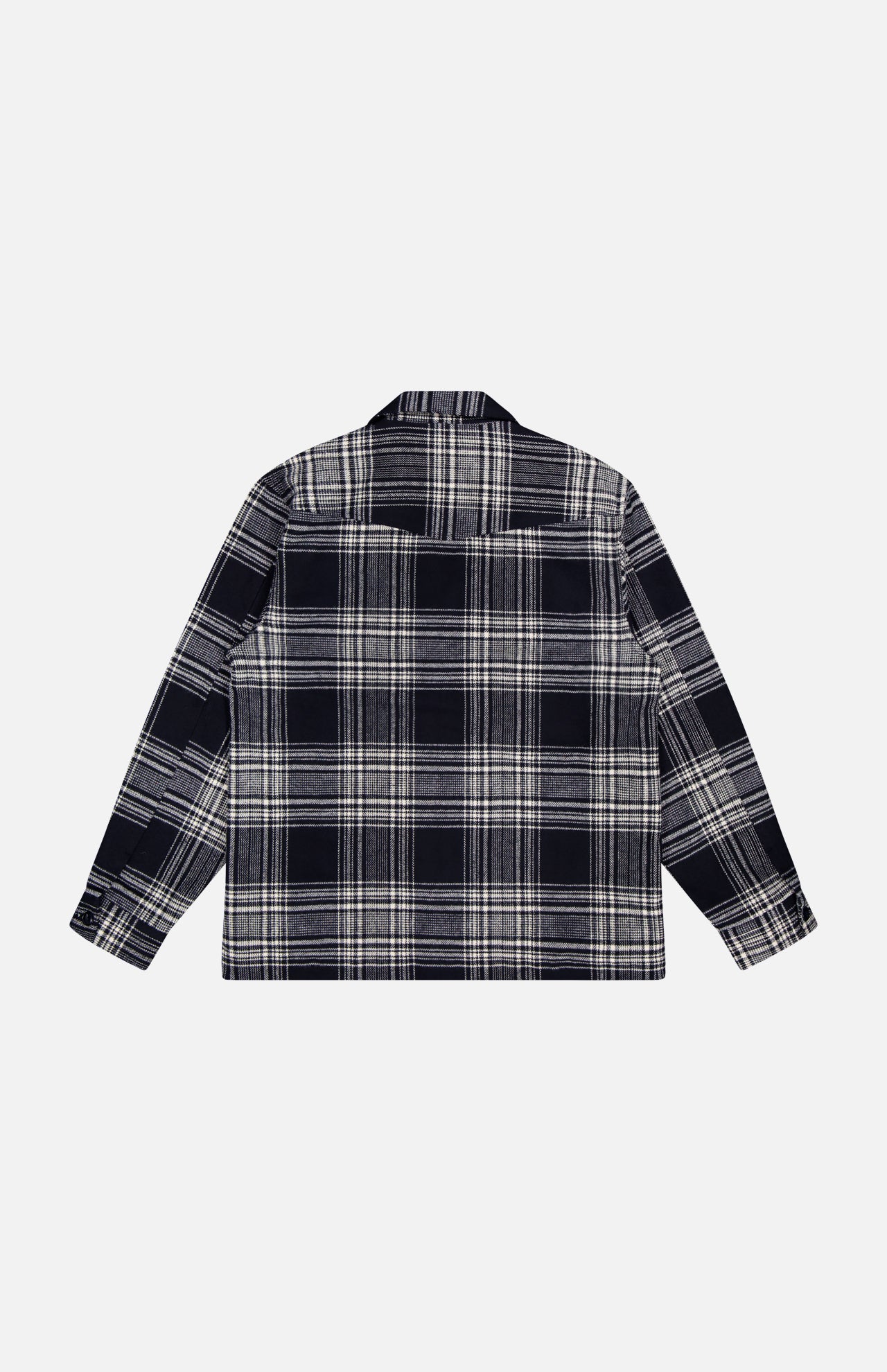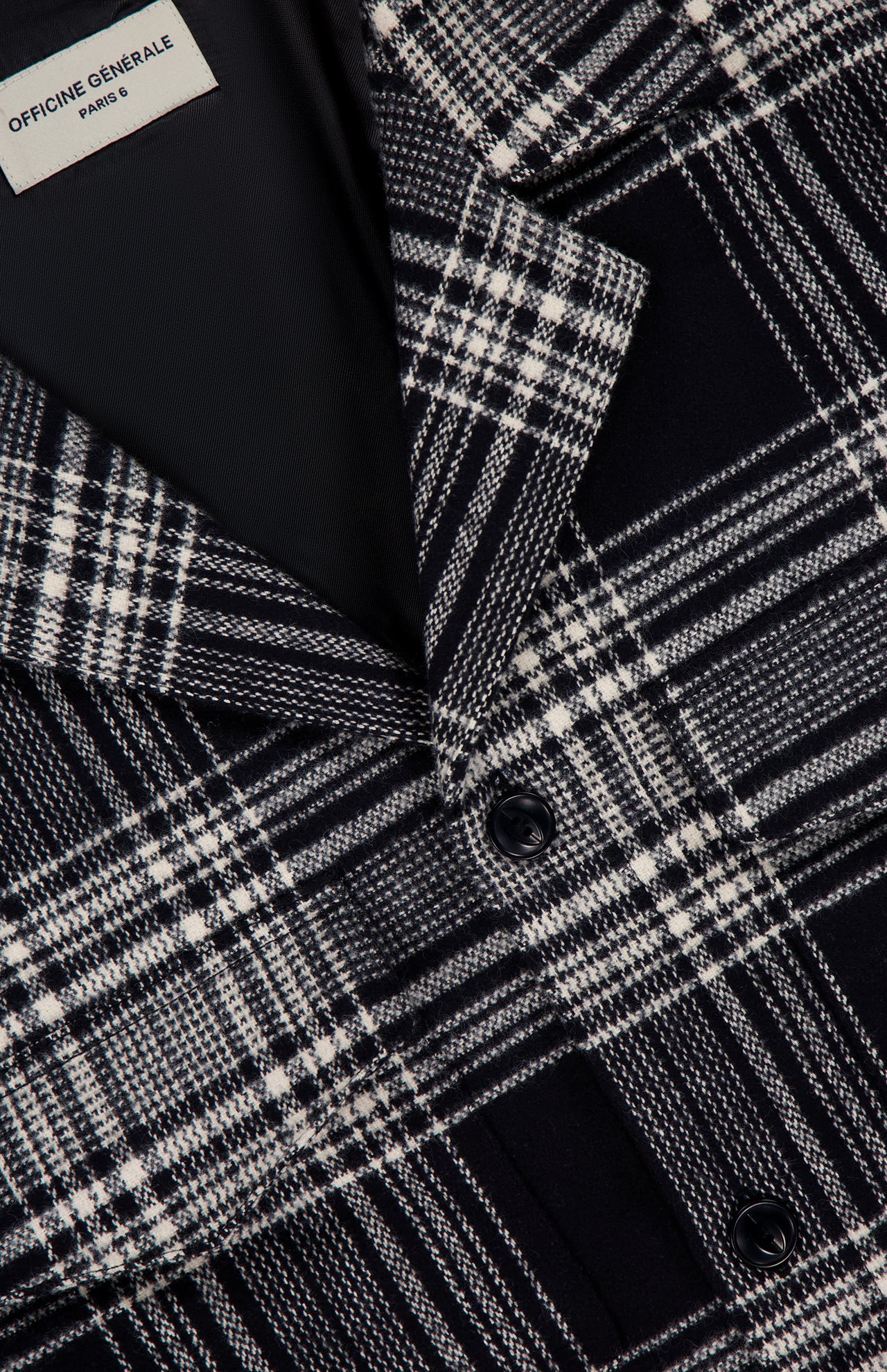 Part of a capsule wardrobe to make dressing seamless, this black and cream overshirt is comfortable, handsome and easy to style. Slightly loose-fitting, this plaid shirt jacket has button fastenings as well as flap chest pockets with concealed buttons. This one will be a joy to layer so blend in thin black cashmere turtlenecks or throw a large black puffer over the piece. It can go in so many ways.