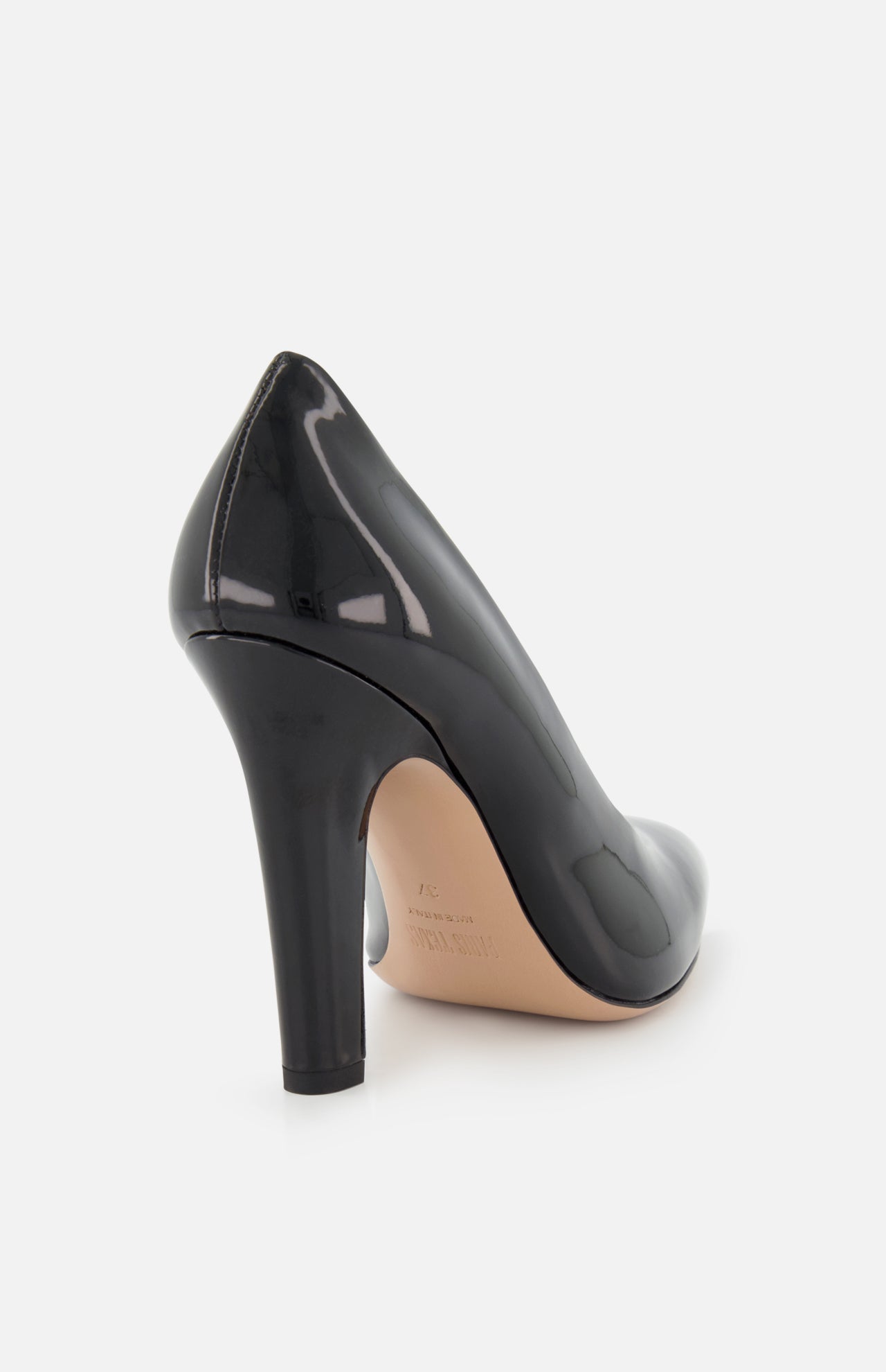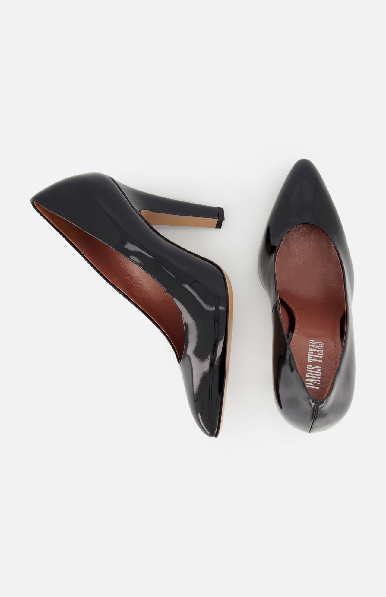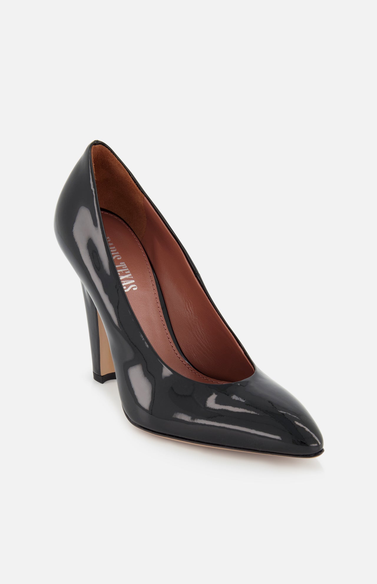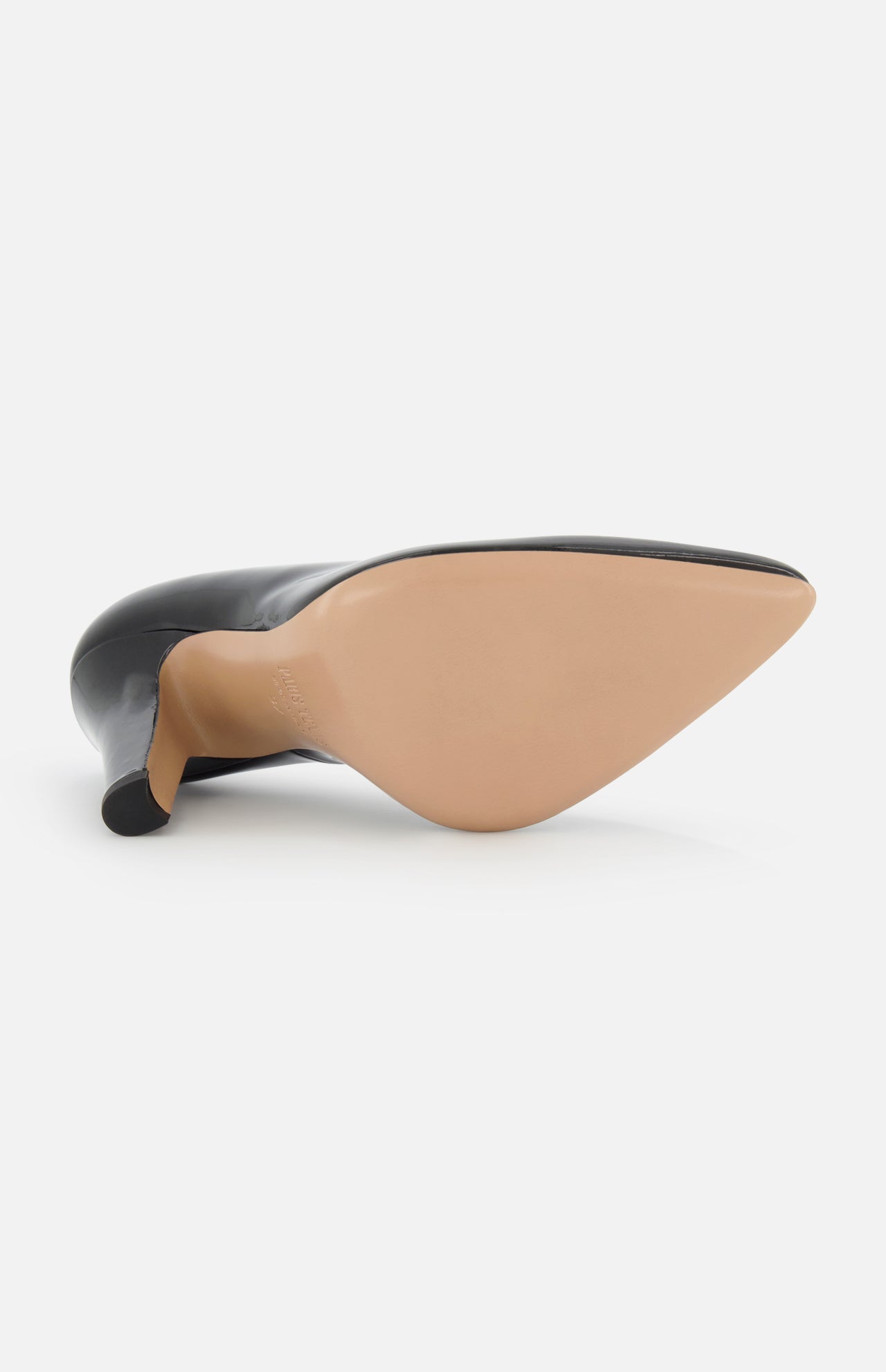 A shoe line that deals in contrasts, this pump is where Parisian elegance meets the wild, Western spirit. This black heel is made from shiny patent leather for a refined take on a closet staple. It’s a classic silhouette with an elegant pointed toe and sturdy heel.