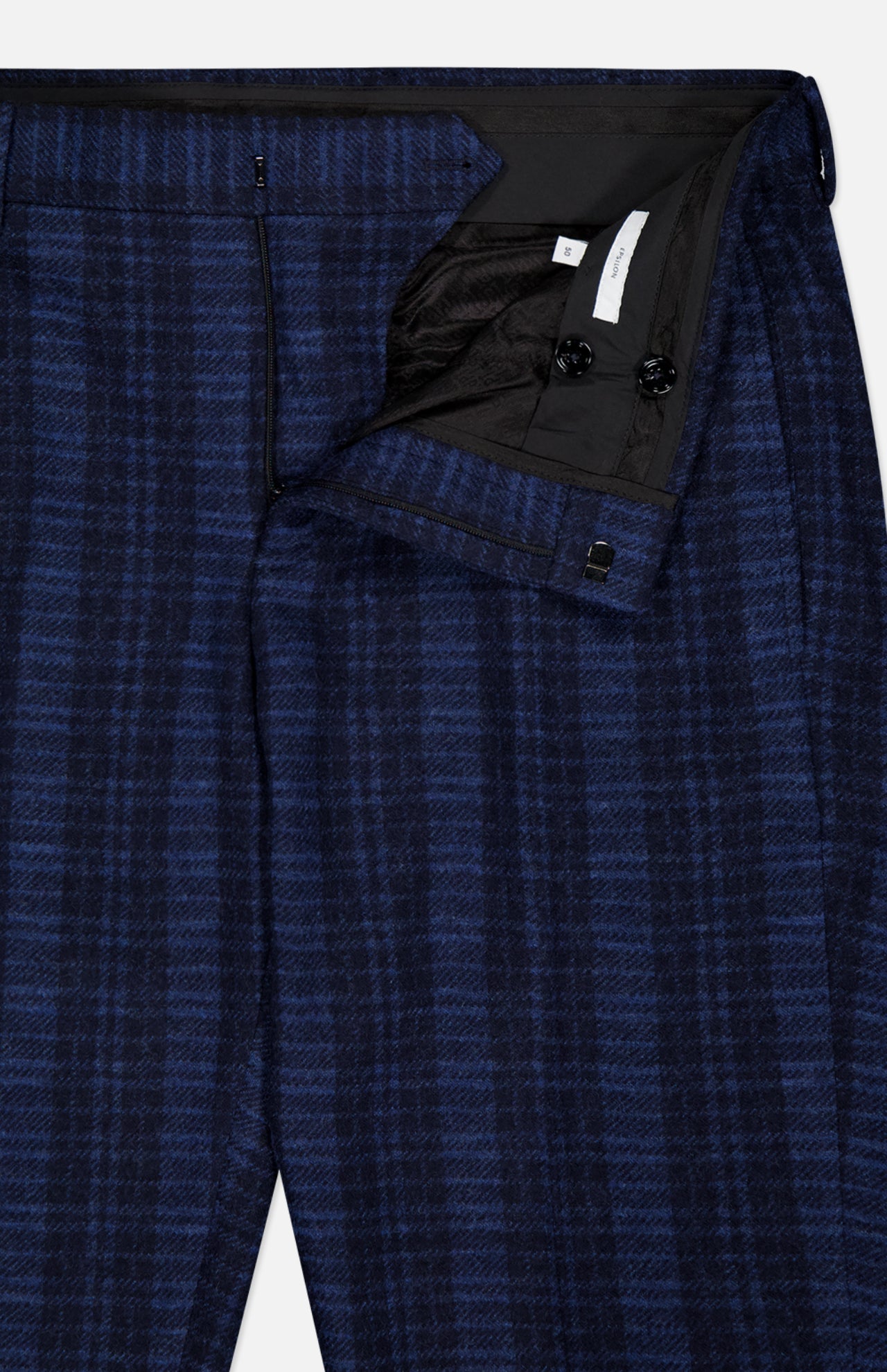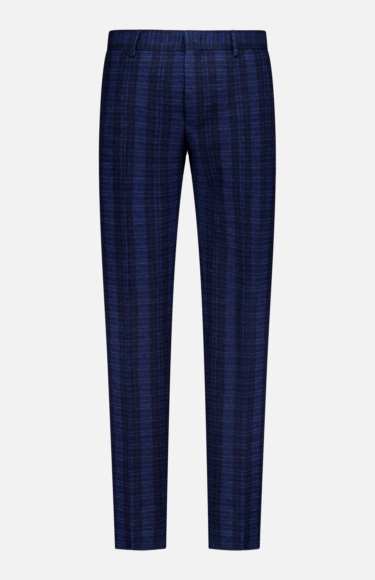 These dark blue trouser pants feature a plaid print that elevates the look, delivering pure sophistication. A polished and handsome option, these pants offer elegance and functionality in a warm and comfortable fleece wool. Wear them to office parties, weddings and occasions where you need to make a good impression.