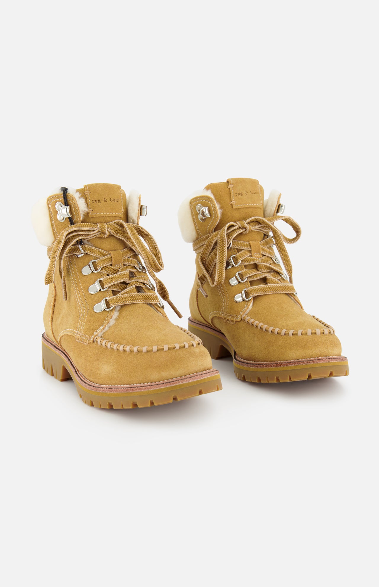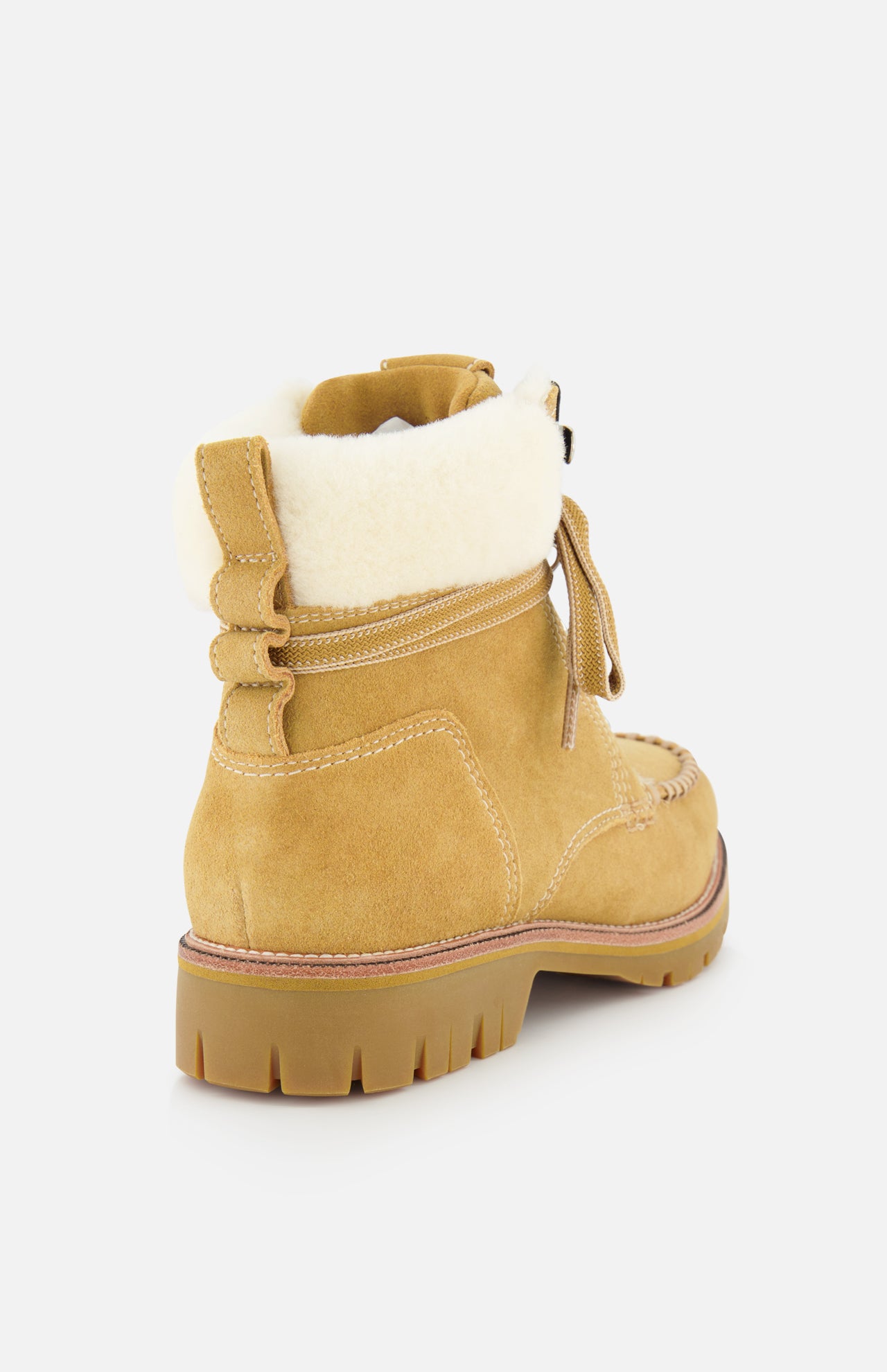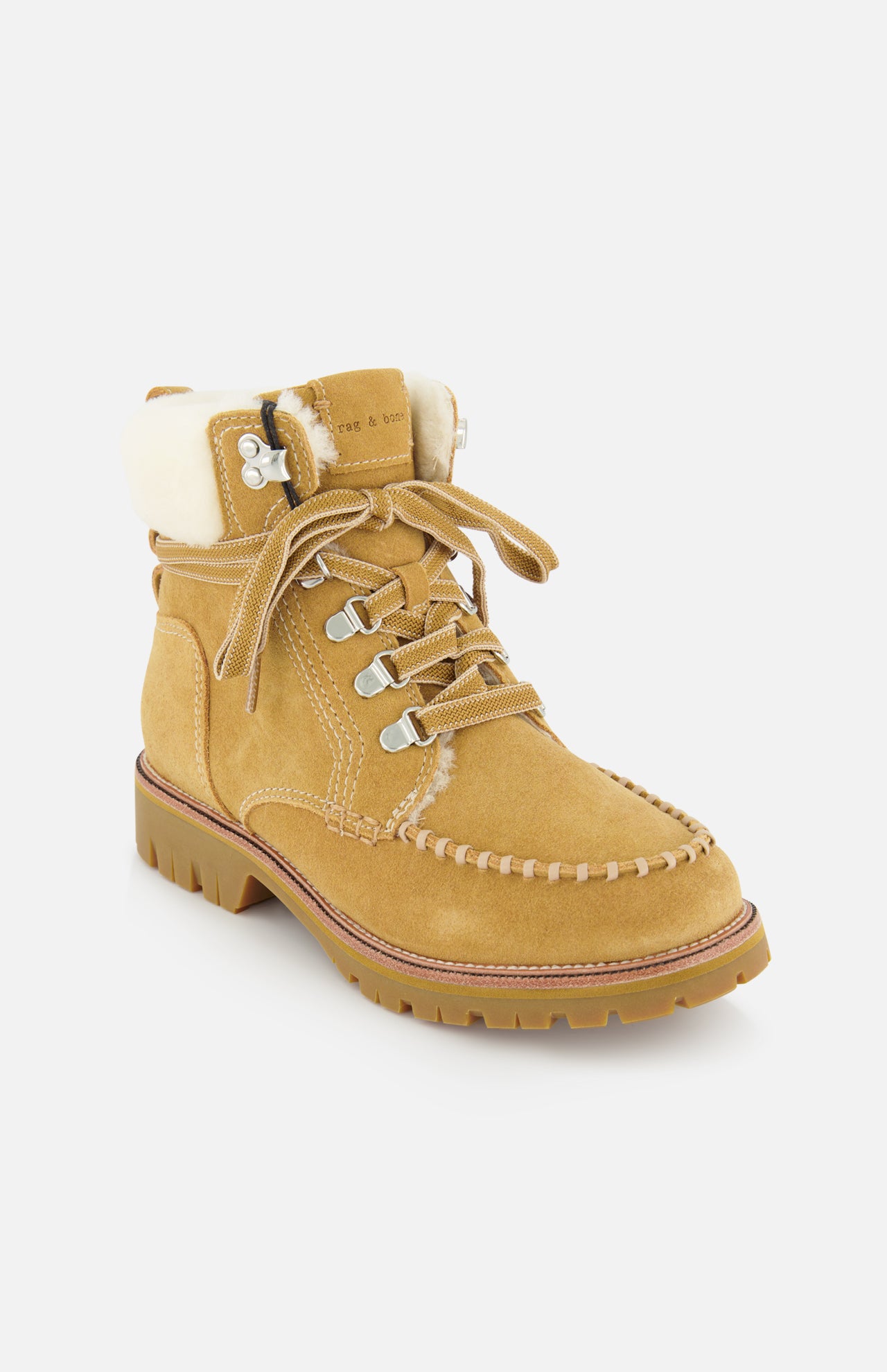 Protect your feet. Perfect your outfit. These tan boots combine soft suede and a plush shearling lining with rubber lug soles to create a hiking style that’s outdoorsy and chic. From country trails to city adventures, this option can do it all with dual-layer foam insoles engineered for optimal stability, support and comfort. You’ll feel great no matter where or how long you wear them.
