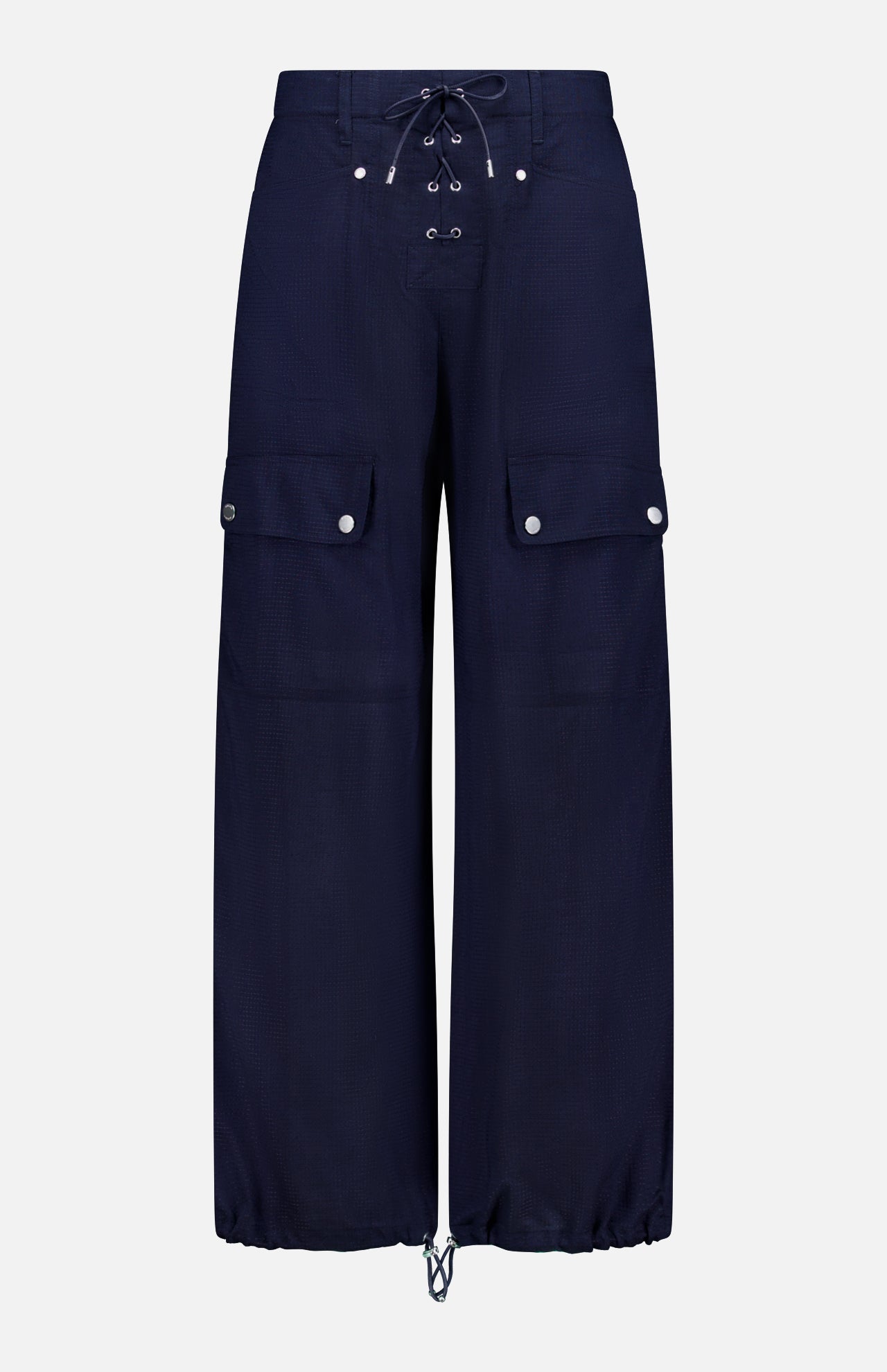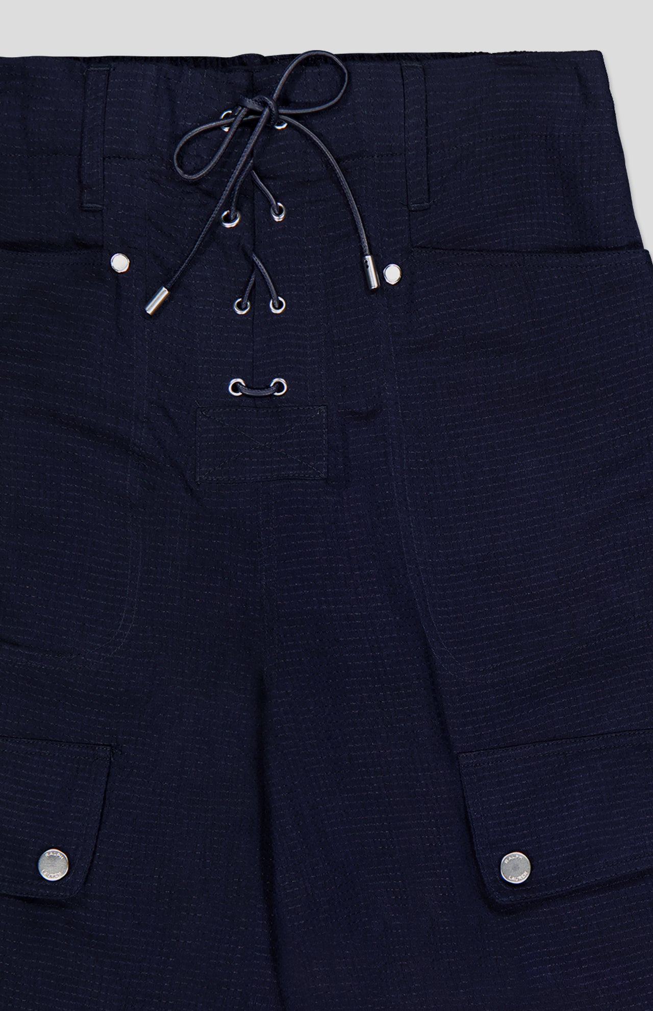 Mr. Lauren continues to blur the lines between timeless luxury and a modern, sporty sensibility, which is brought to life here in this navy pant. Featuring an array of considered elements, including various pocket styles and a lambskin drawcord at the hems for a customizable fit, these cargo pants are made with a breathable, lightweight ripstop construction that balances the durability of sportswear with the high-quality feel of luxury fabrics. A lace-up fly adds a tactile twist, while bold double-needle topstitching completes the look.