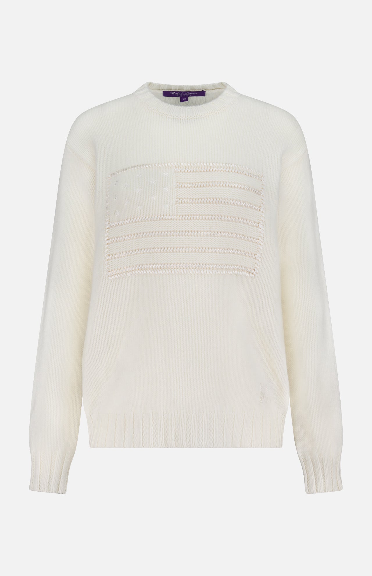 Beautifully knit in Italy with creamy and lofty cashmere, Ralph Lauren’s iconic flag sweater is reimagined this season as a tonal style that spotlights the brand’s signature historical American flag. A combination of textural stitches and luxurious materials, including silk stripes and embroidered stars, is used to create the flag. This relaxed-fit option offers a fresh feel to this Ralph Lauren mainstay.