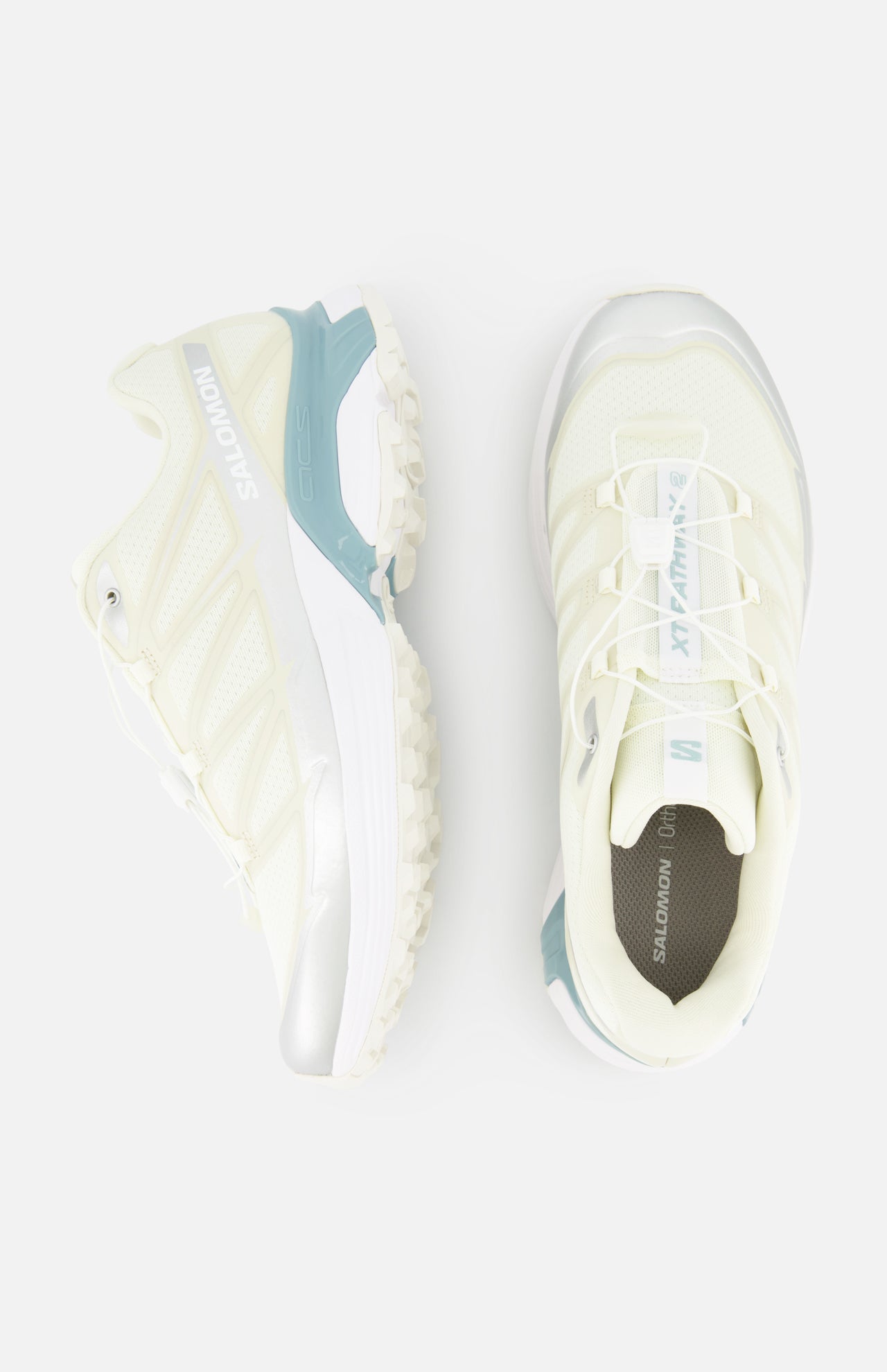 This is the preferred footwear of world-class athletes for ultra-distance races under harsh conditions. Expect a high-quality level of cushioning, durability and descent-control. The quick lace system is also ideal for easy on and off. The vanilla and silver colorway is a neutral and clean look for when you want something more minimalist with a small, subtle color pop.