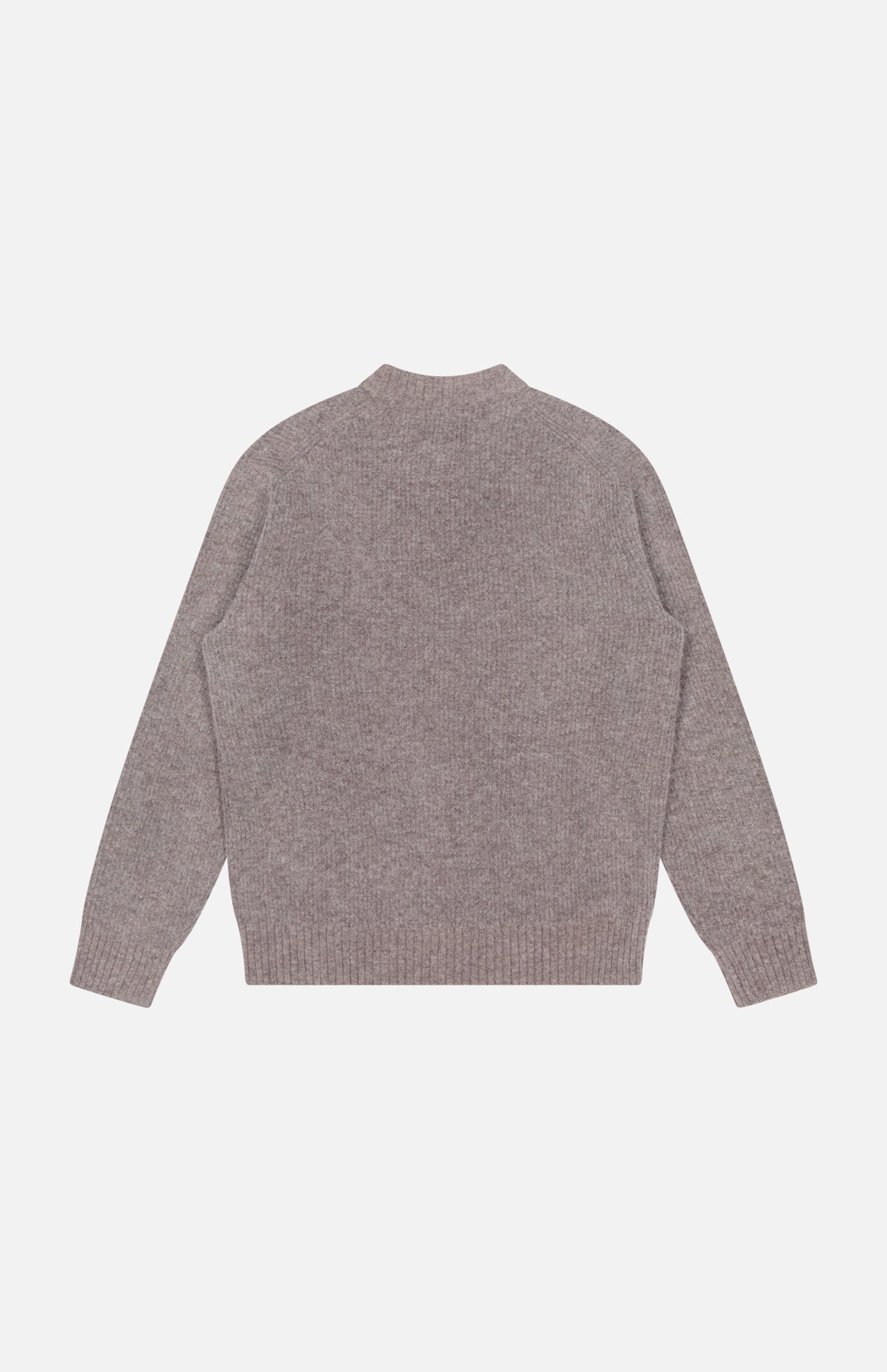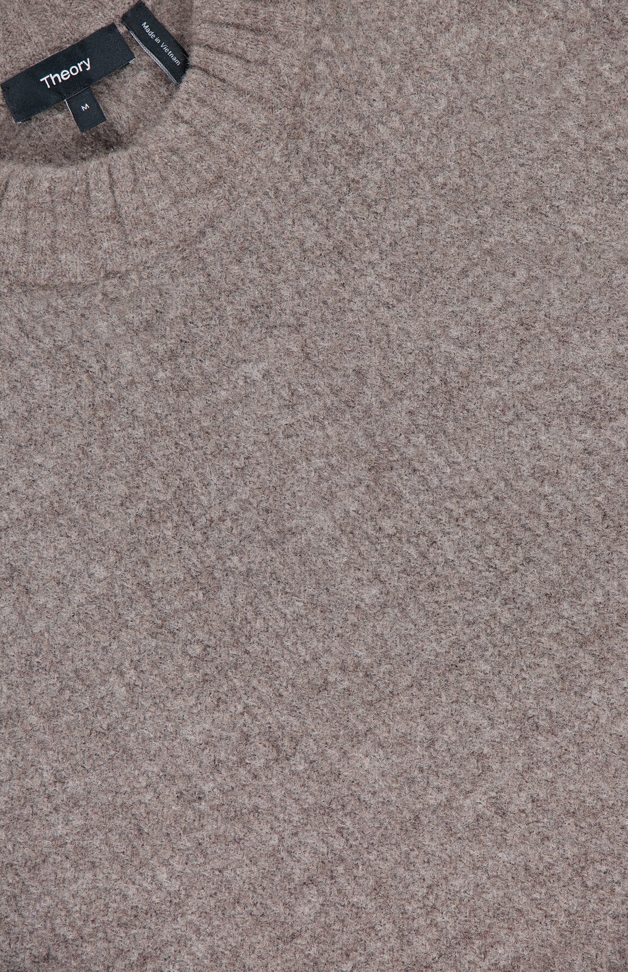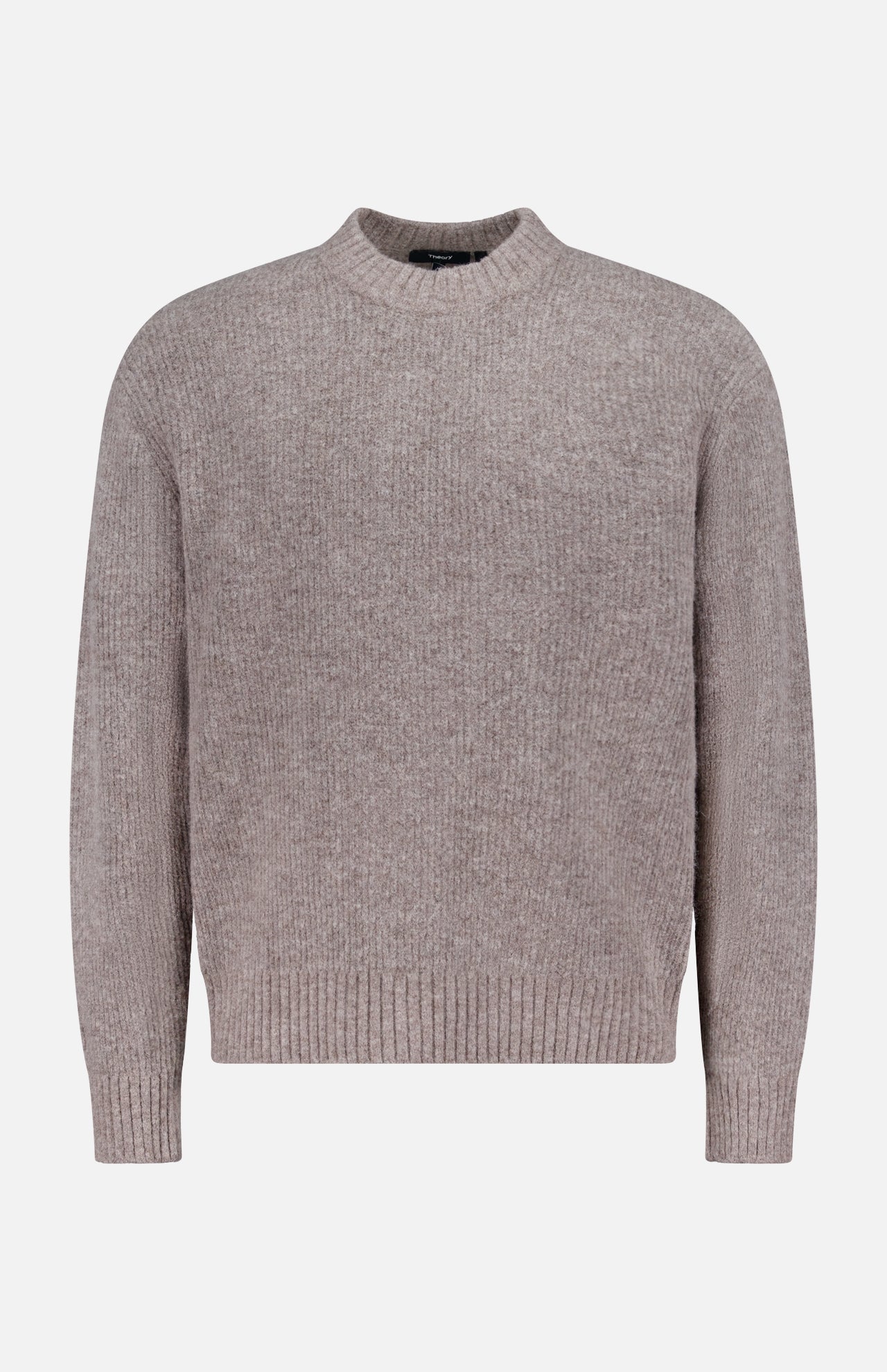 Easy essentials for the win. This light brown crew neck sweater offers a relaxed fit with dropped shoulders and ribbed detailing. It’s crafted of Astor wool, a plush knit made with a blend of wool sourced from a certified responsibly managed Woodside Farm in Benangaru, Australia.