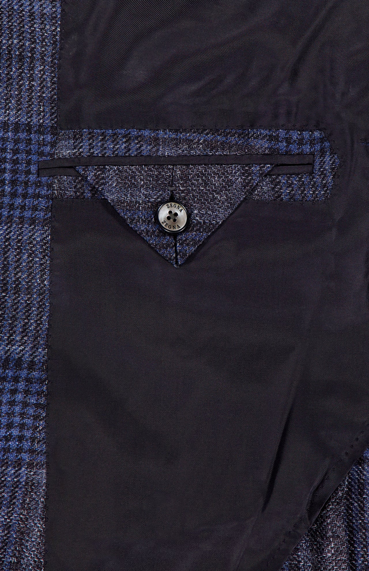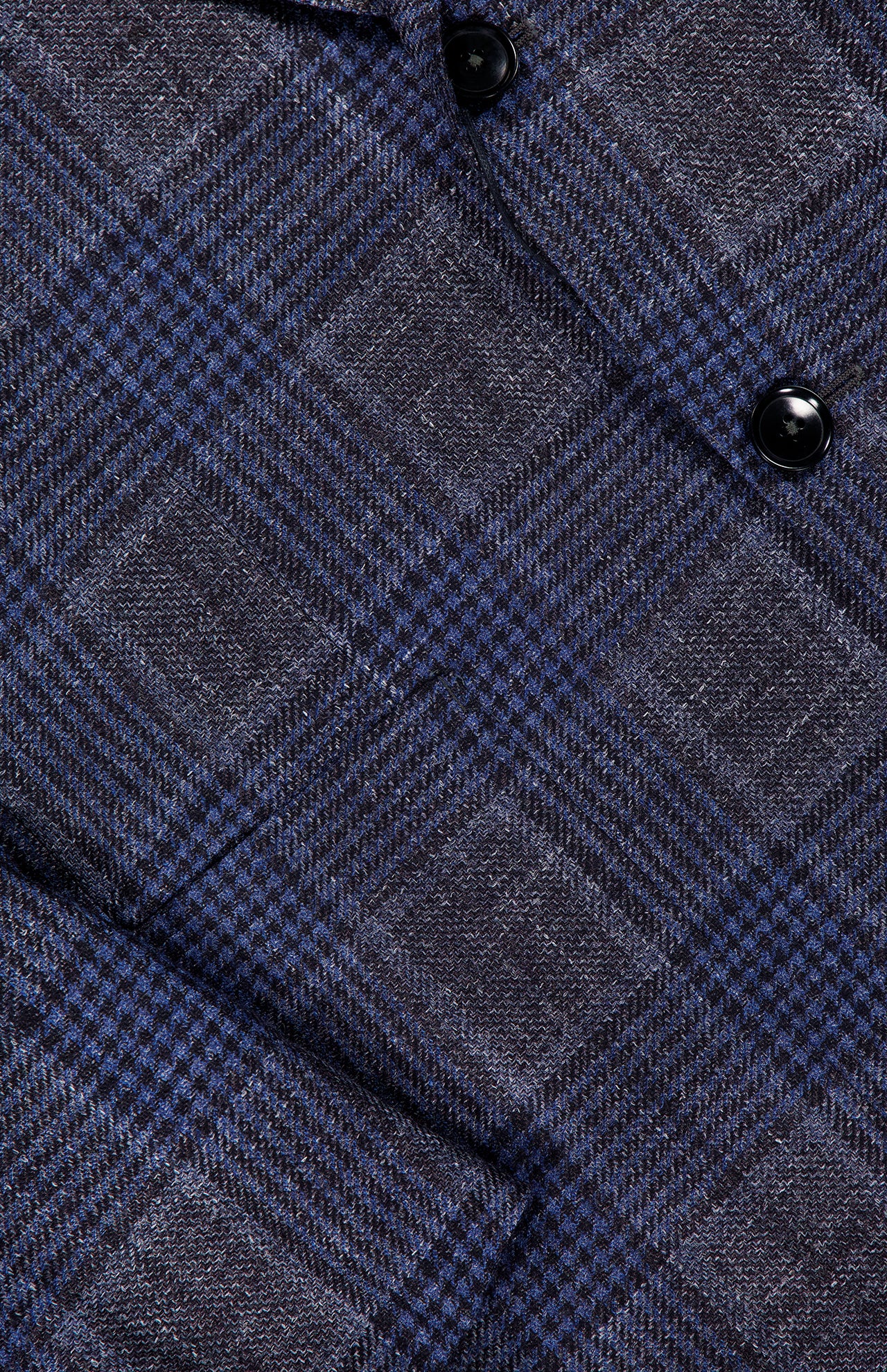 Choose pieces that best suit your life and your discerning taste for the finer things. A perfect example is this dark blue and grey sportcoat that’s expertly crafted in an exquisite mix of wool, silk and linen for easy sophistication. Made in Italy, this handsome essential is designed to elevate the everyday in a versatile colorway and large-scale plaid pattern.